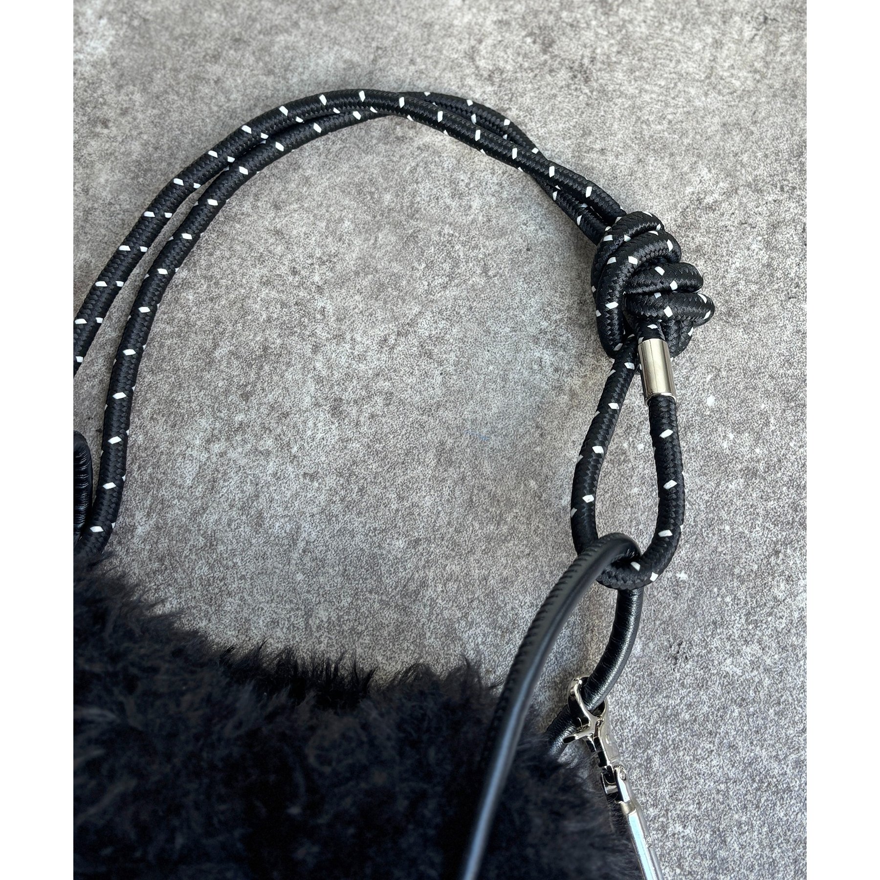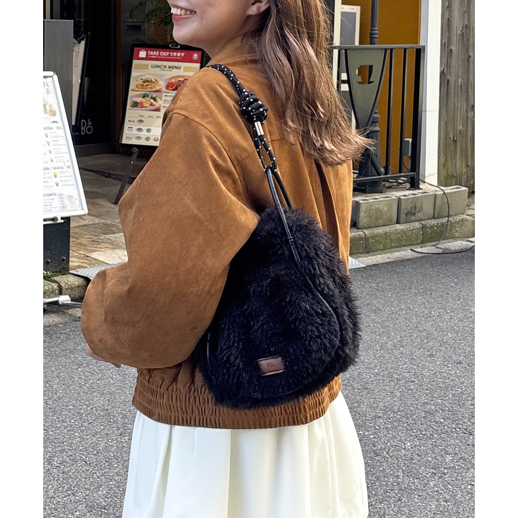 ・甘くなりがちなボアも、パラコードの持ち手でほどよくカジュアルに