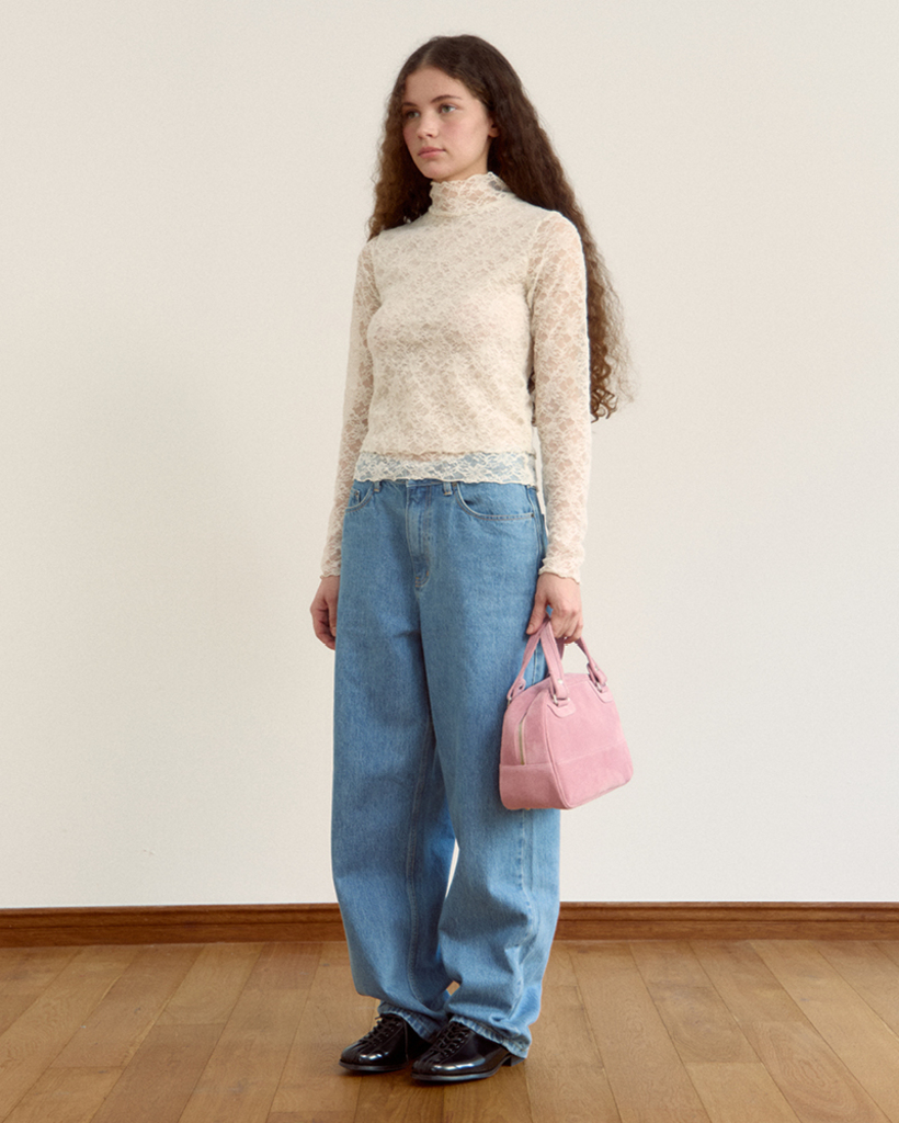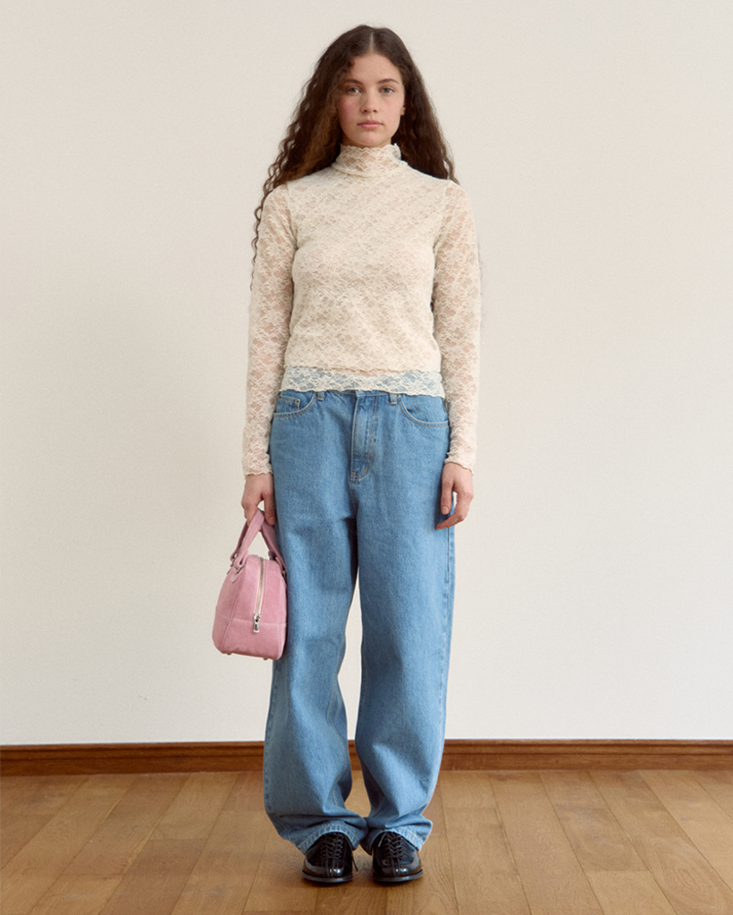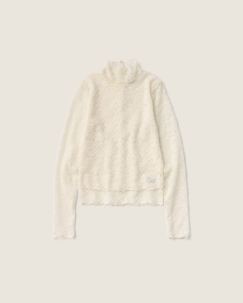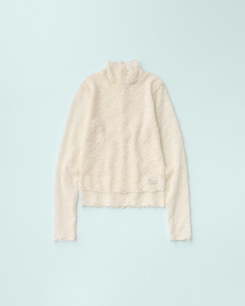 ナチュラルなレギュラーフィットに、ハイネックデザイン、そして波型のメロウエッジ仕上げが施されており、