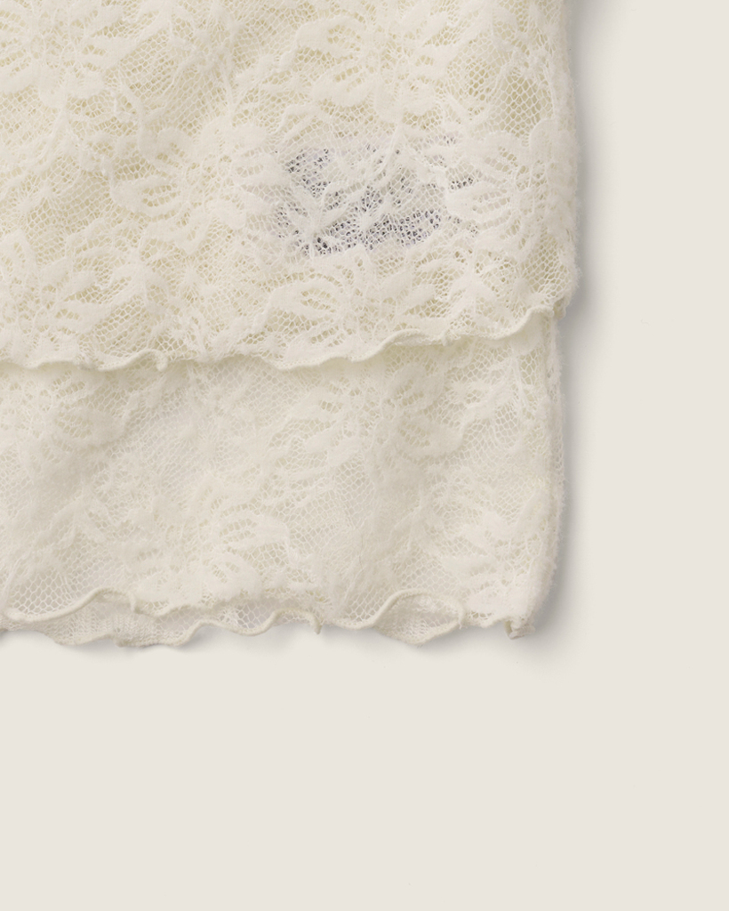 ふんわりと起毛感のあるローズパターンのレース素材は、柔らかくあたたかなタッチ感で、チクチクしにくく心地よい着用感を実現しました。