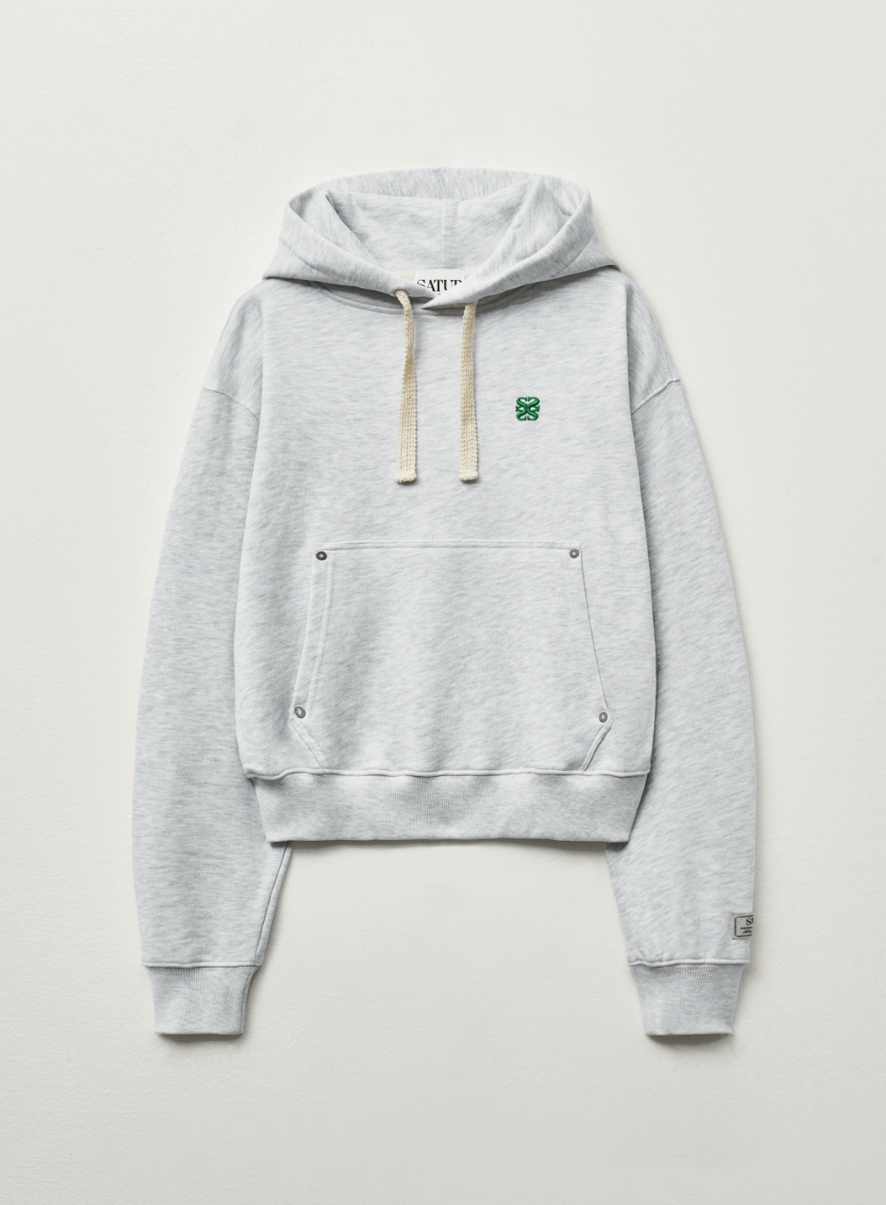 (W) Classic Small Logo Rivet Hoodie - Melange White