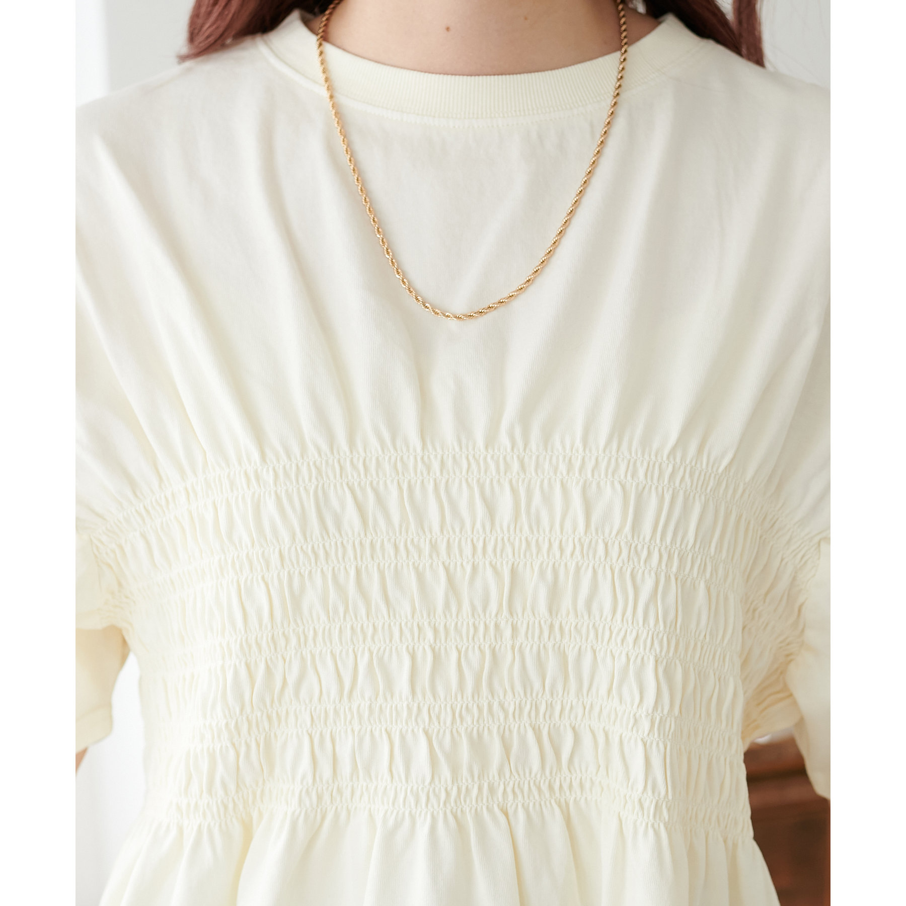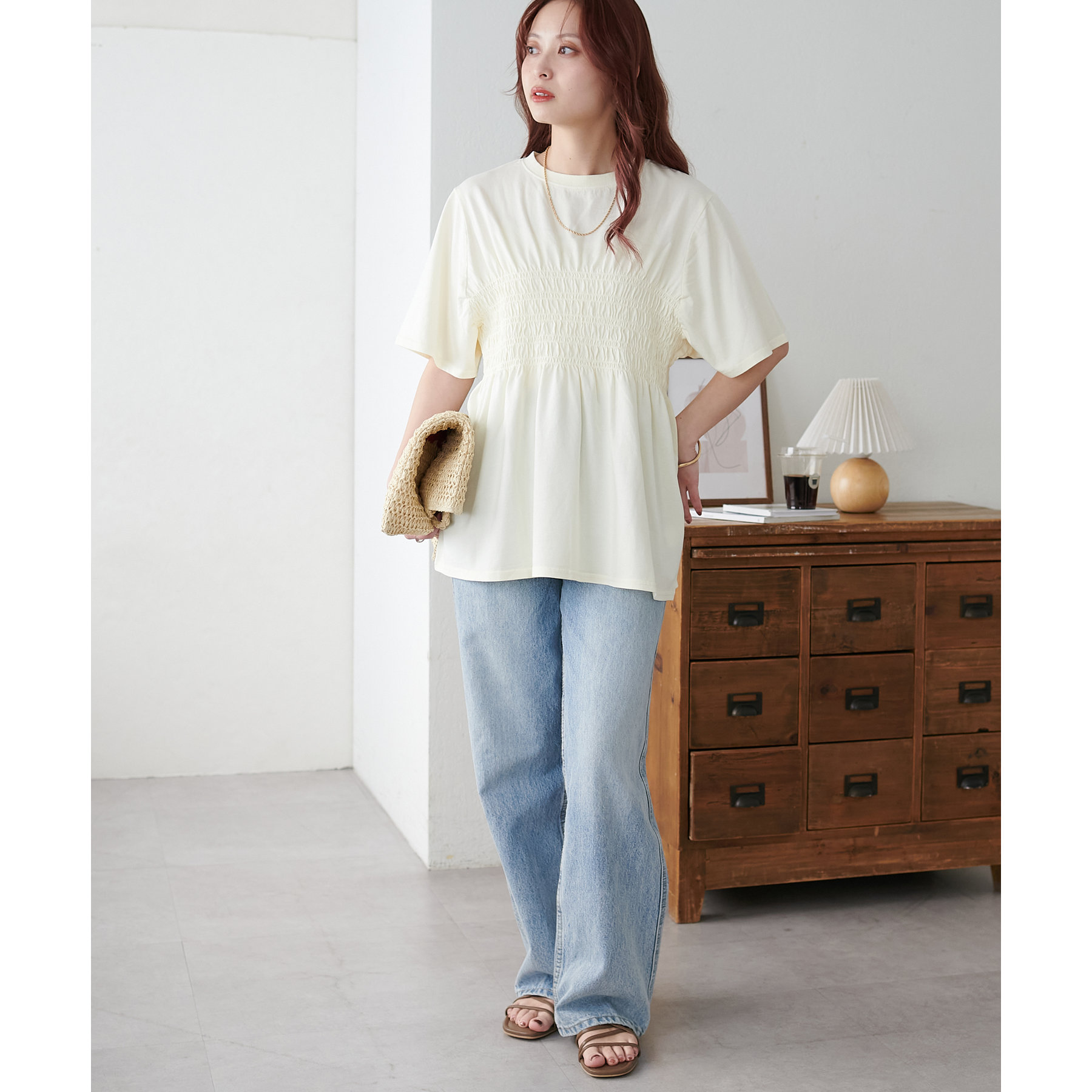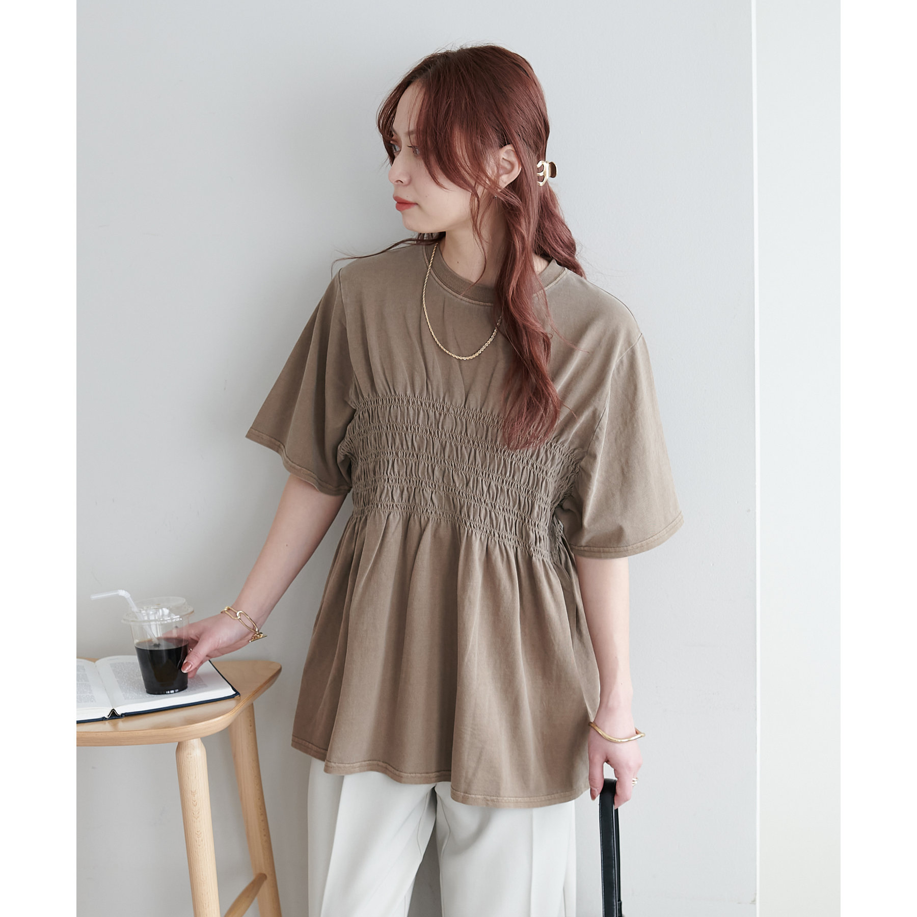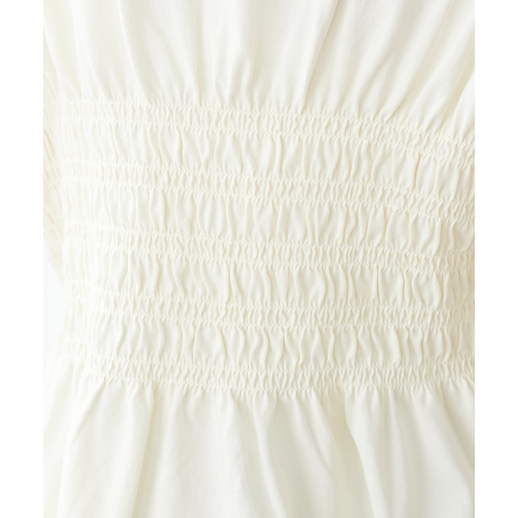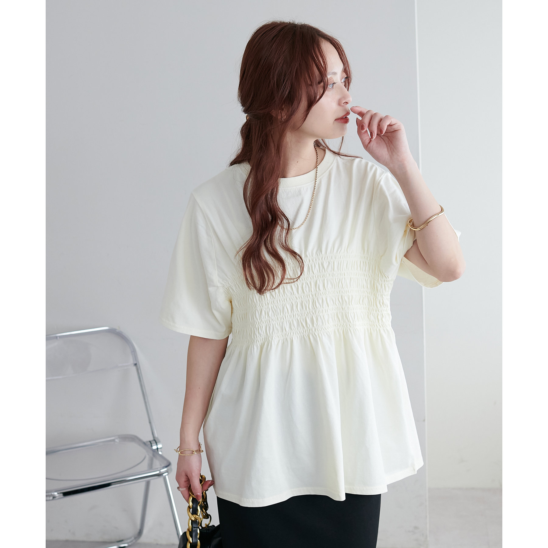 シャーリングデザインでウエストマークされ、細見えが叶います。