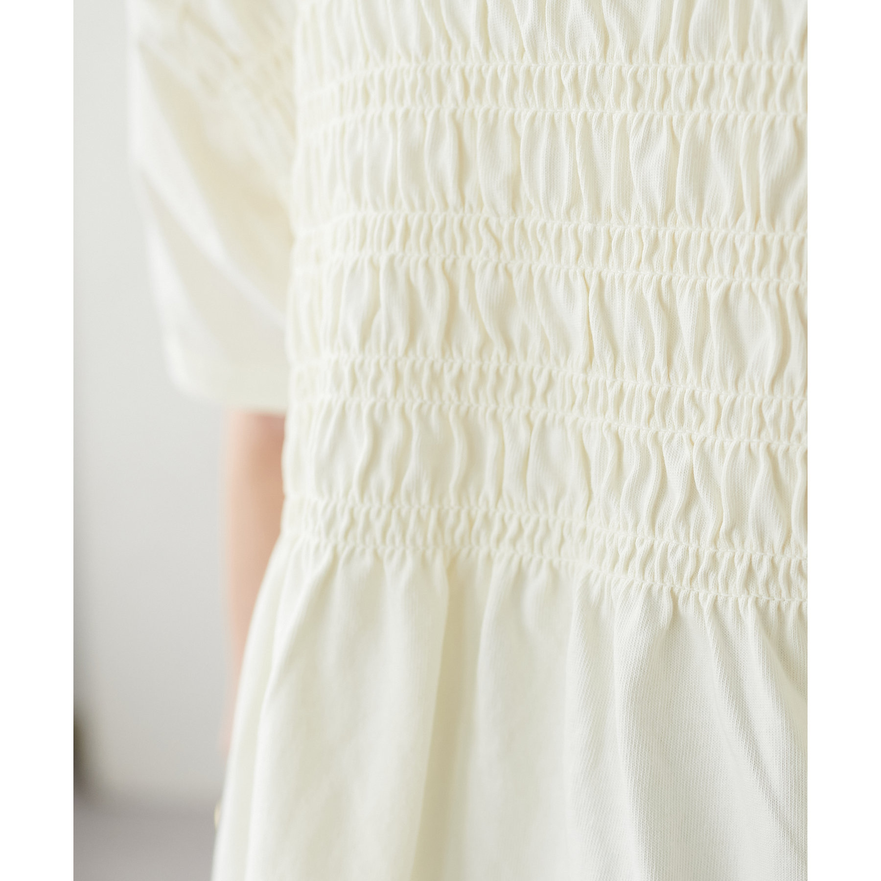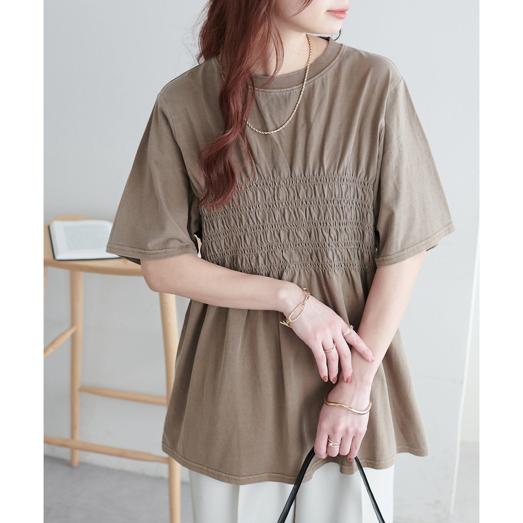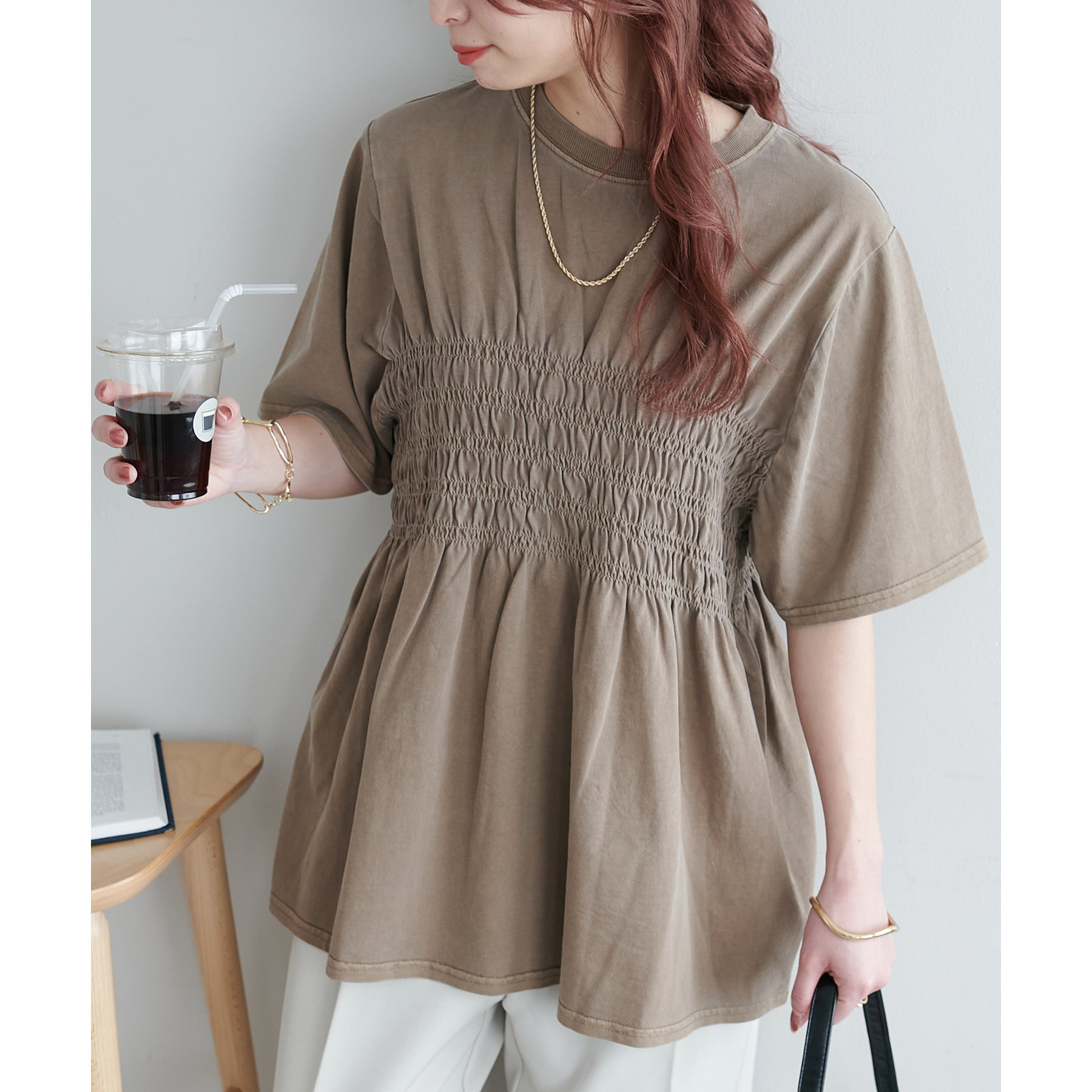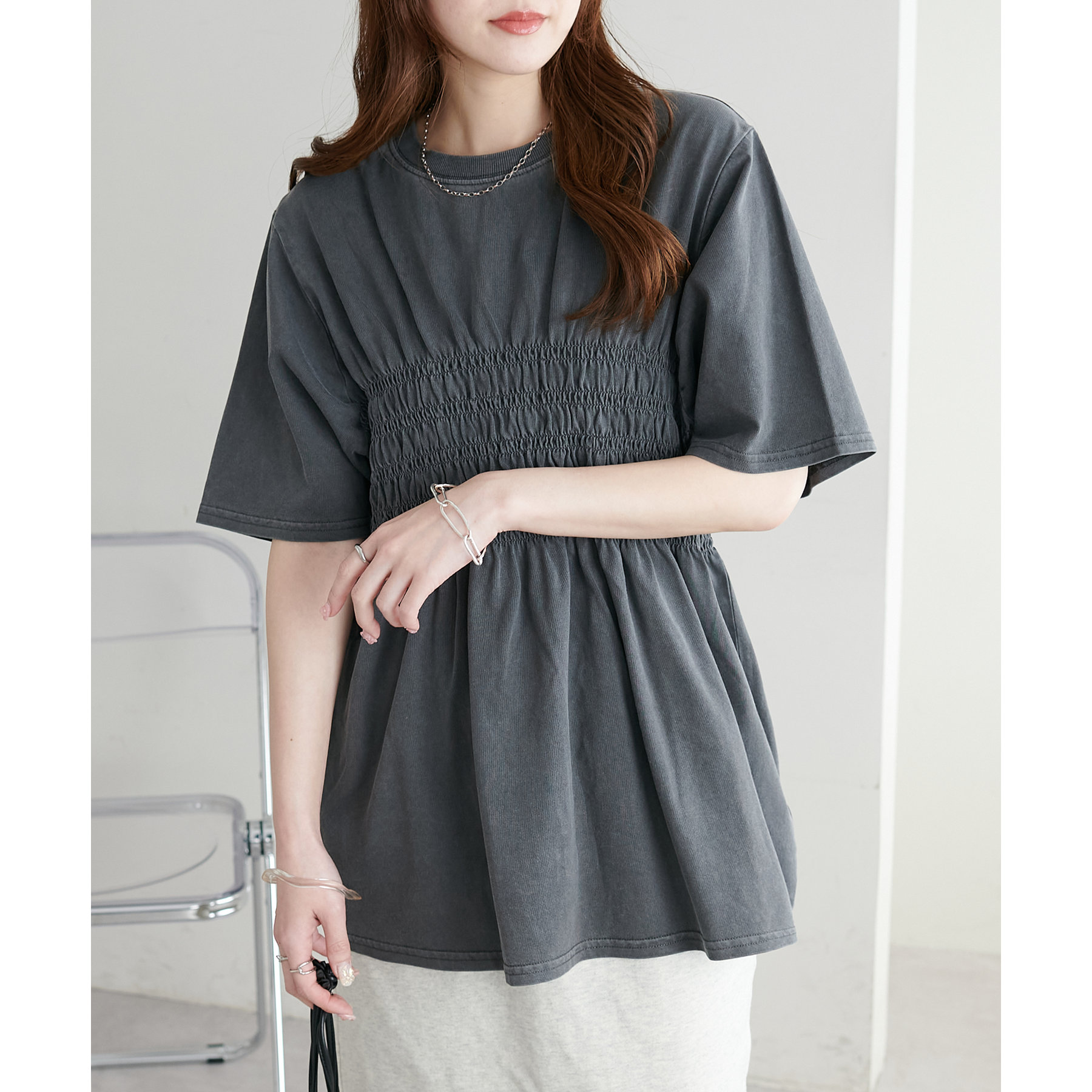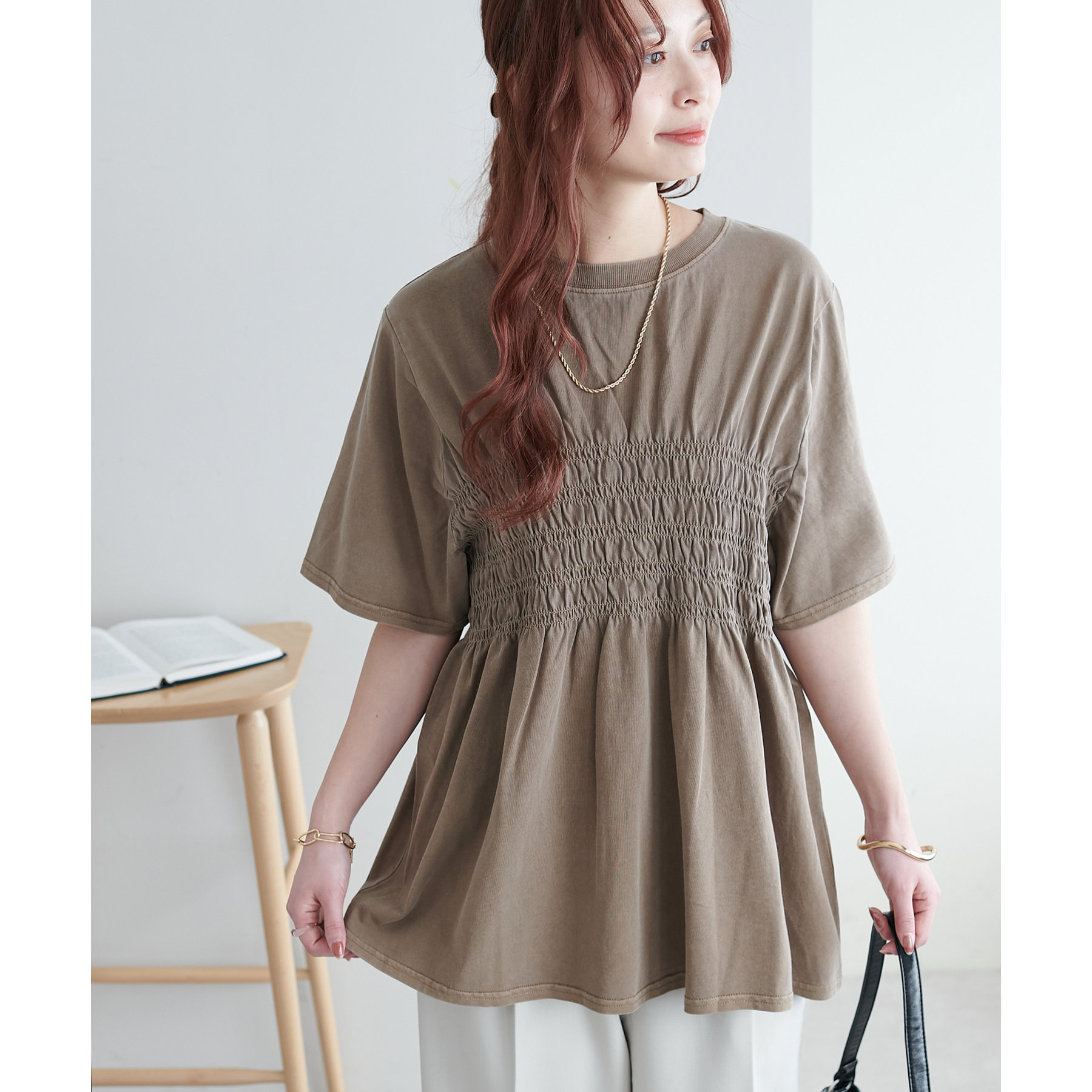 シャーリングデザインでウエストマークされ、細見えが叶います。
