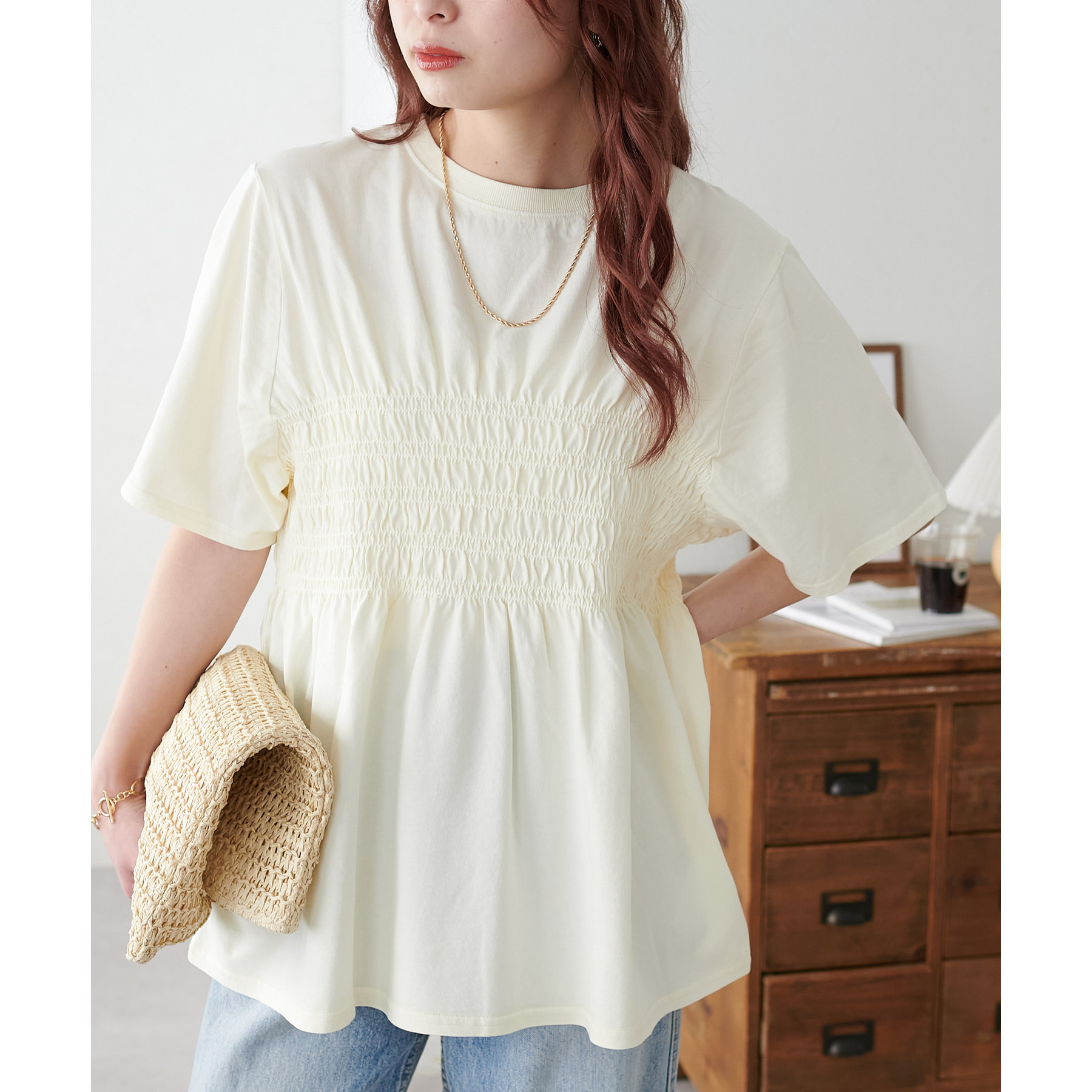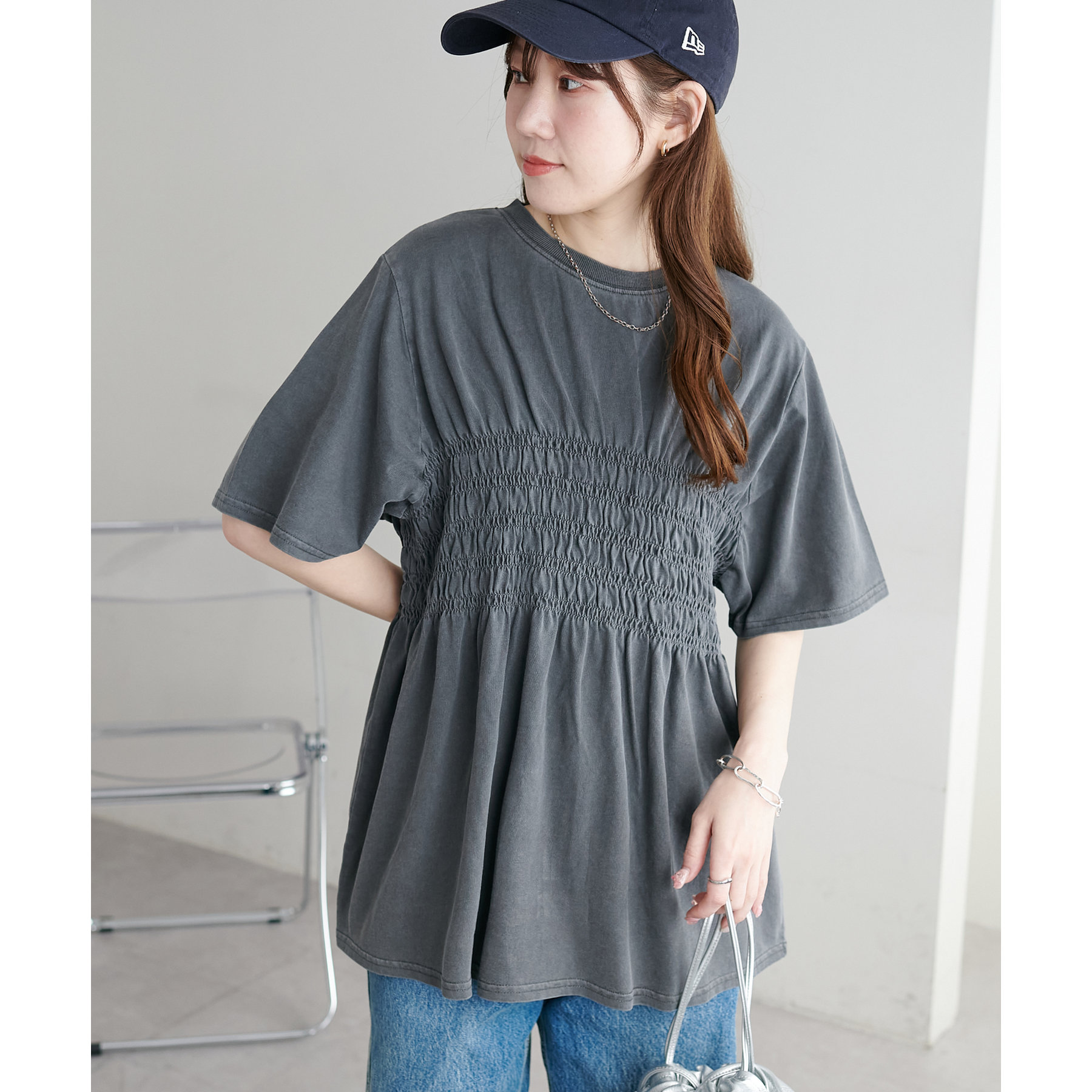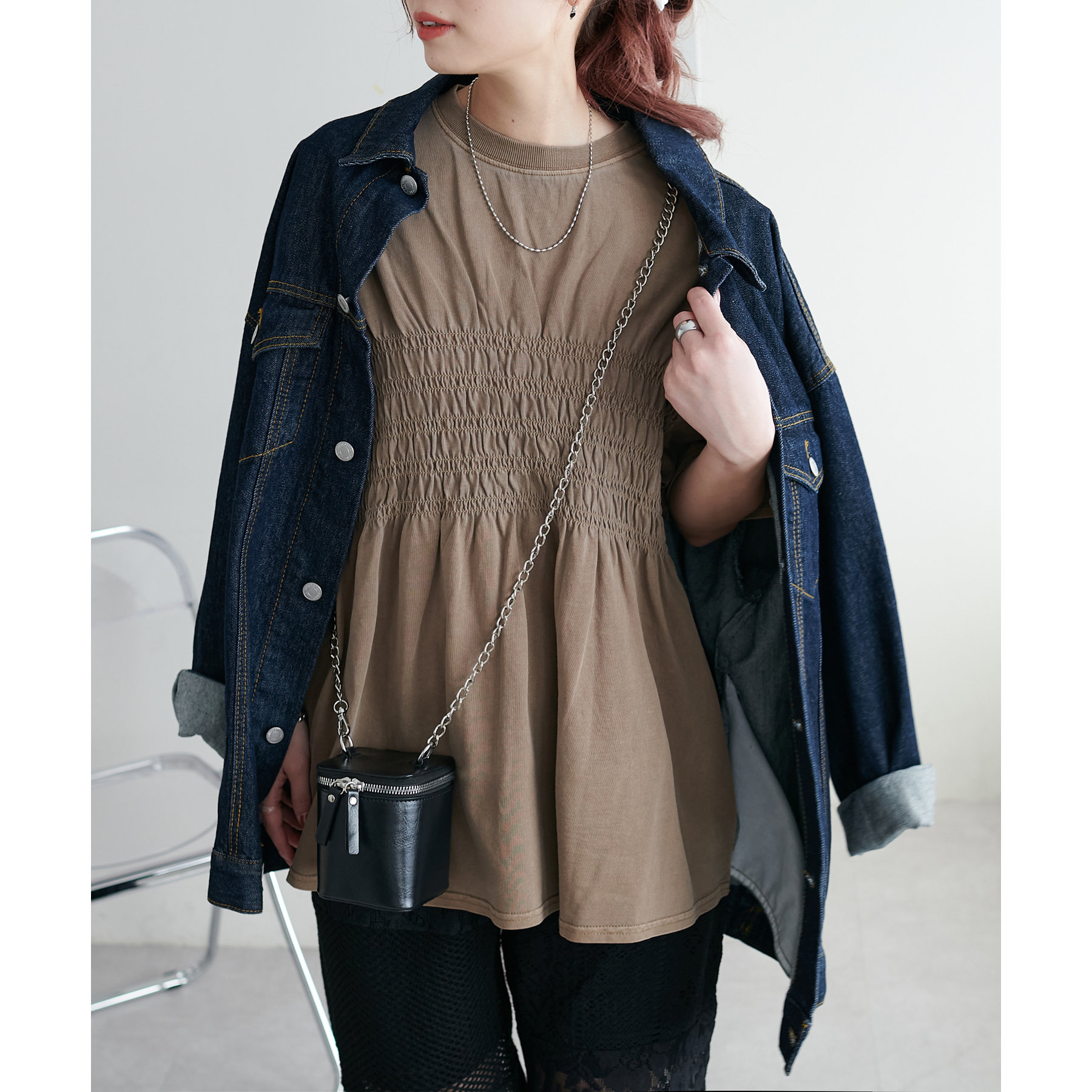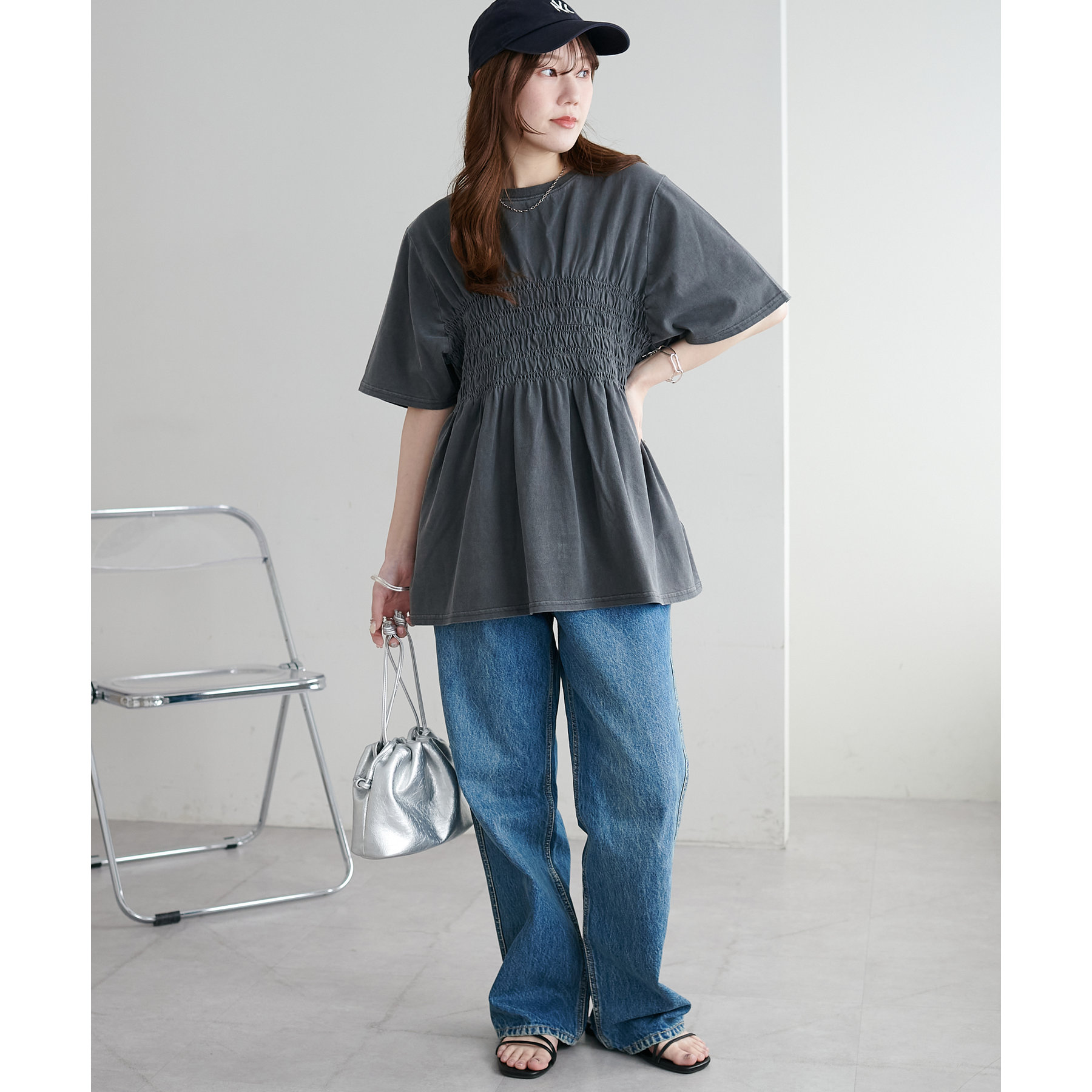 シャーリング部分は伸縮性があるので窮屈感なく着用できます!
