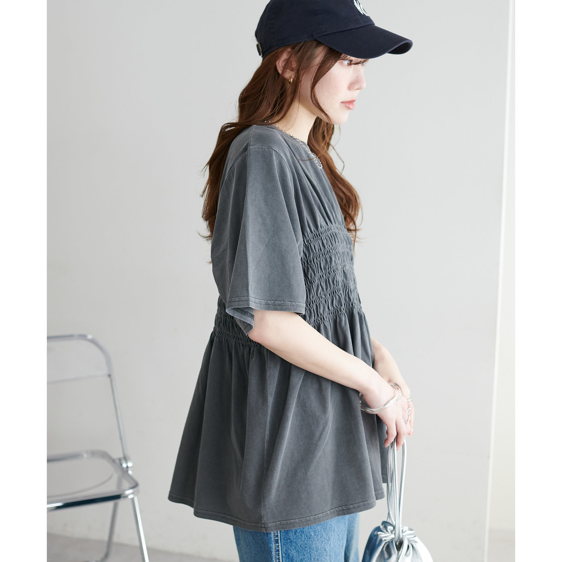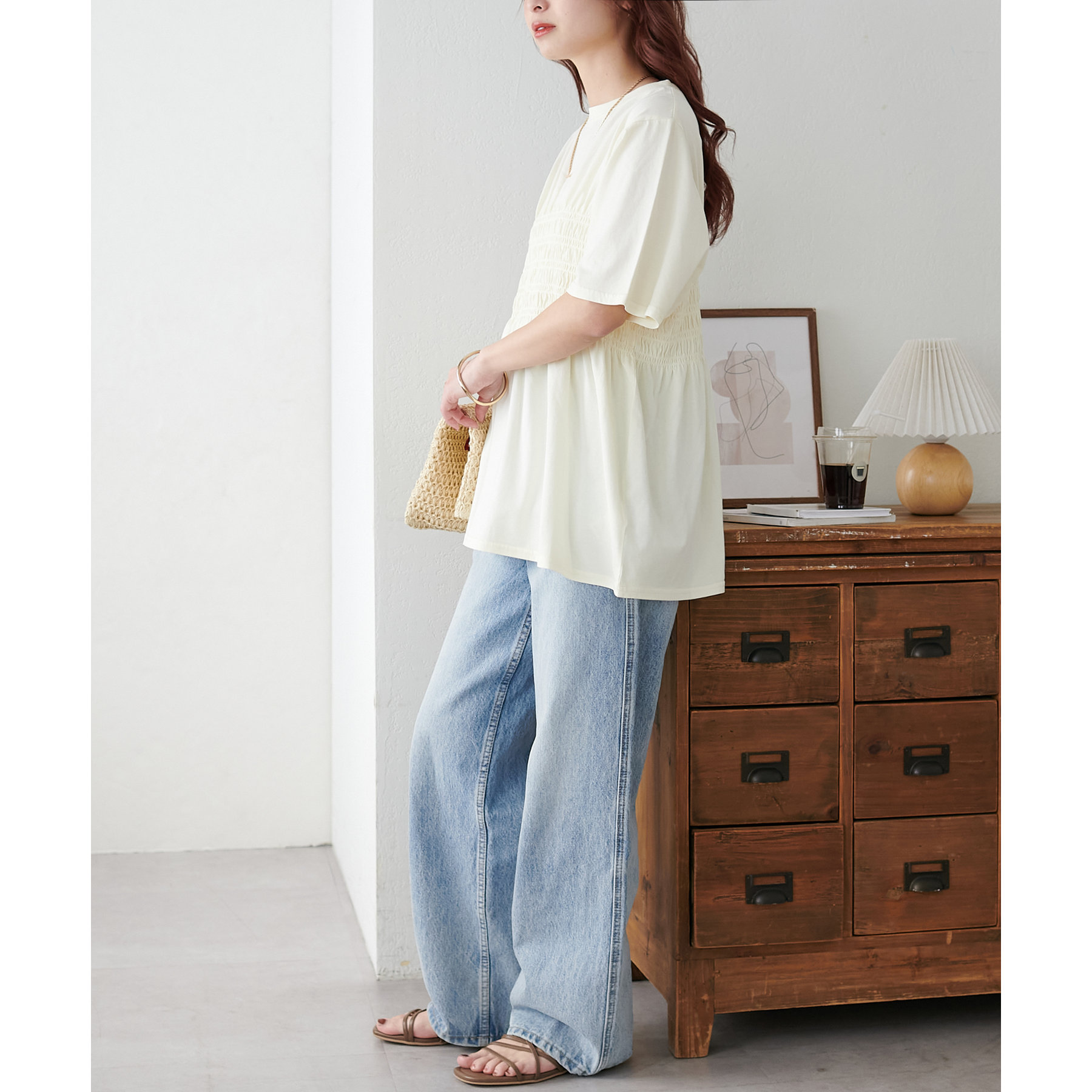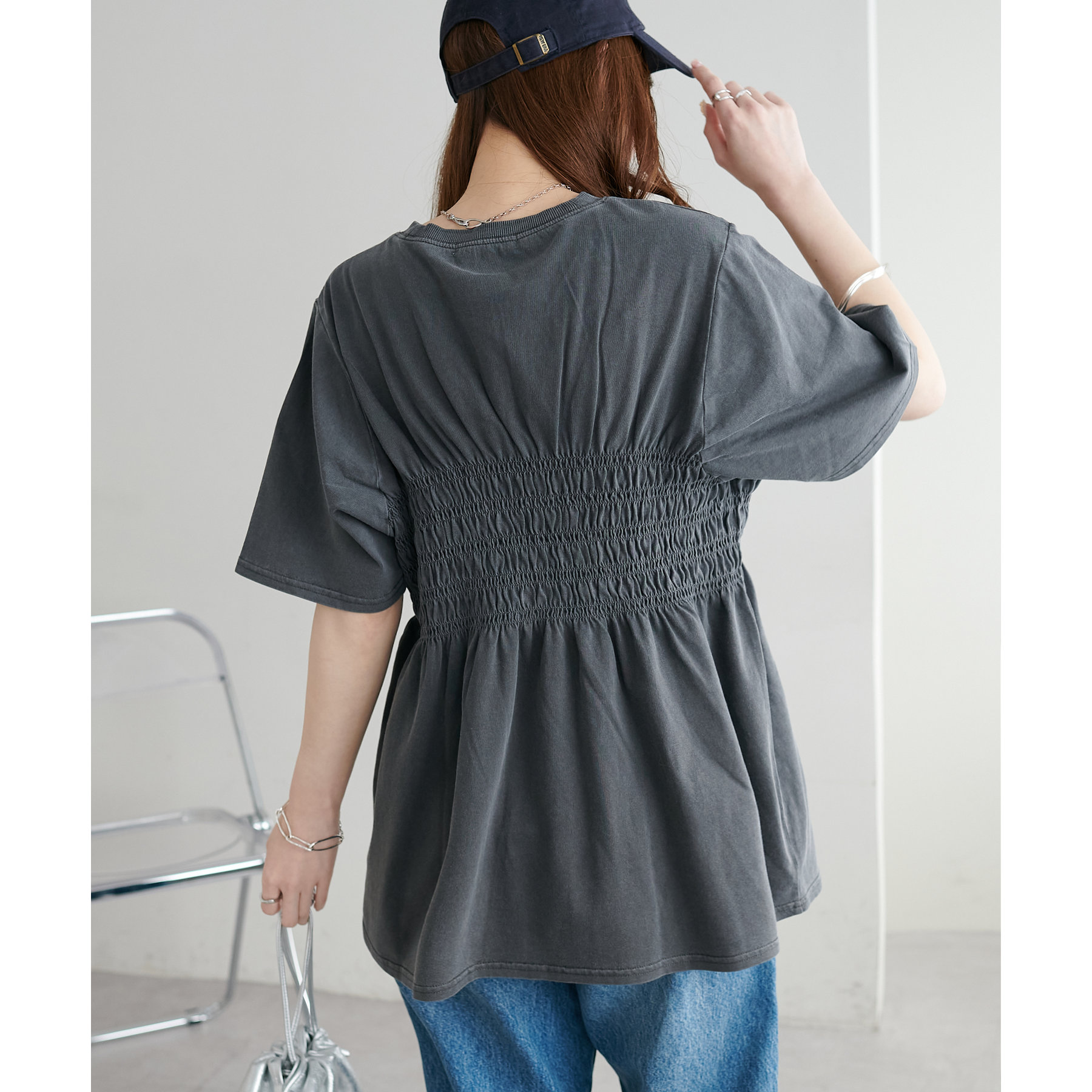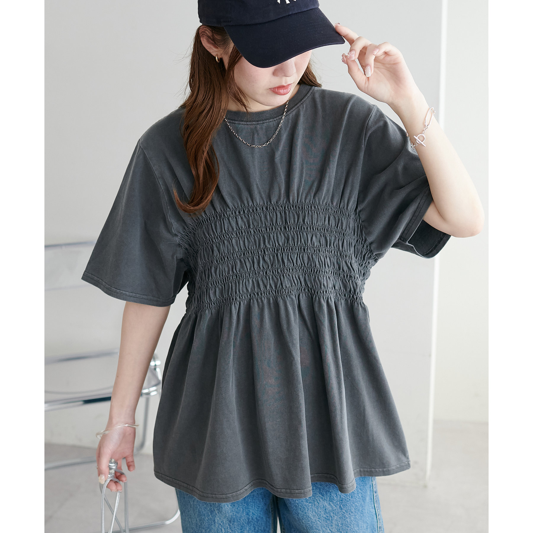 シャーリング部分は伸縮性があるので窮屈感なく着用できます!