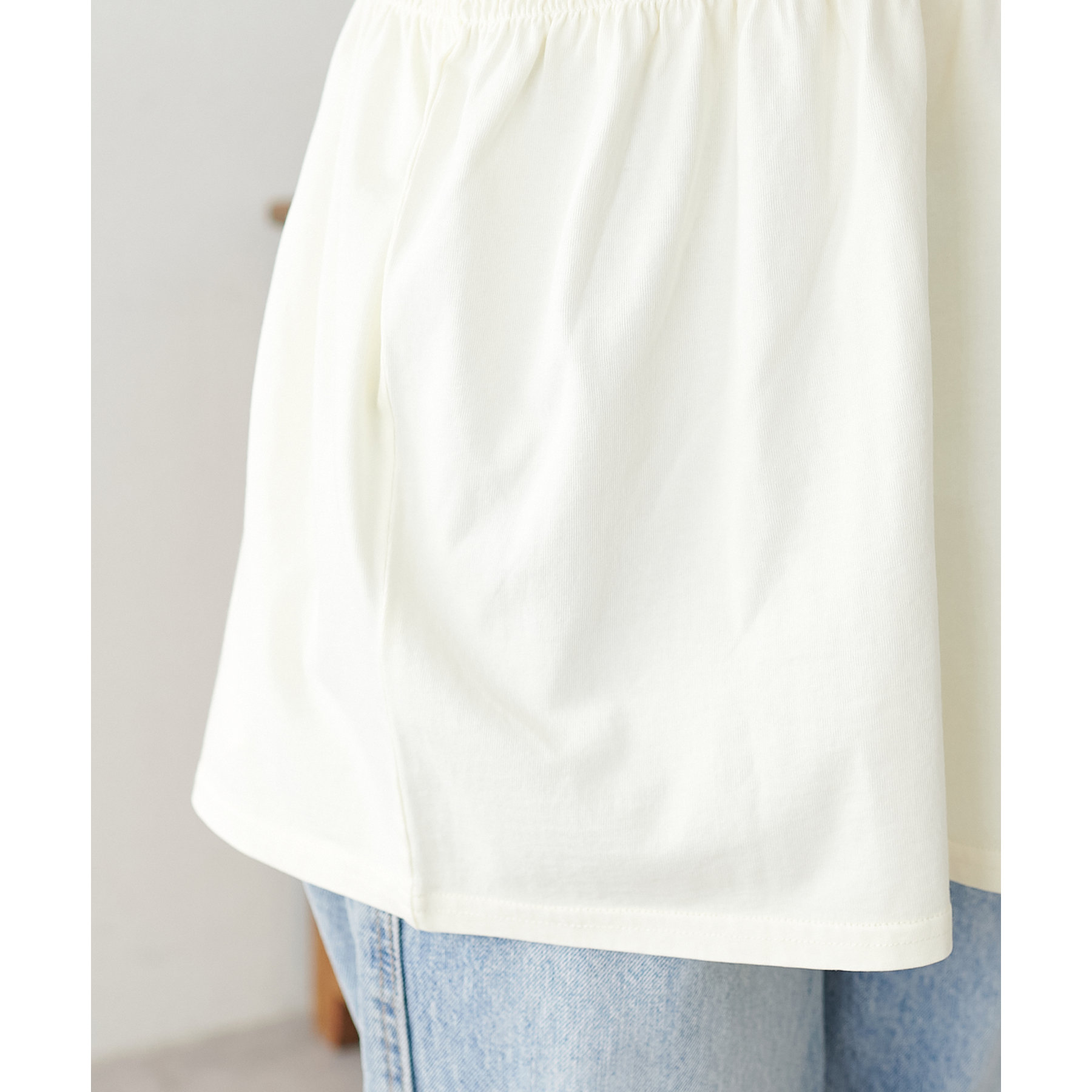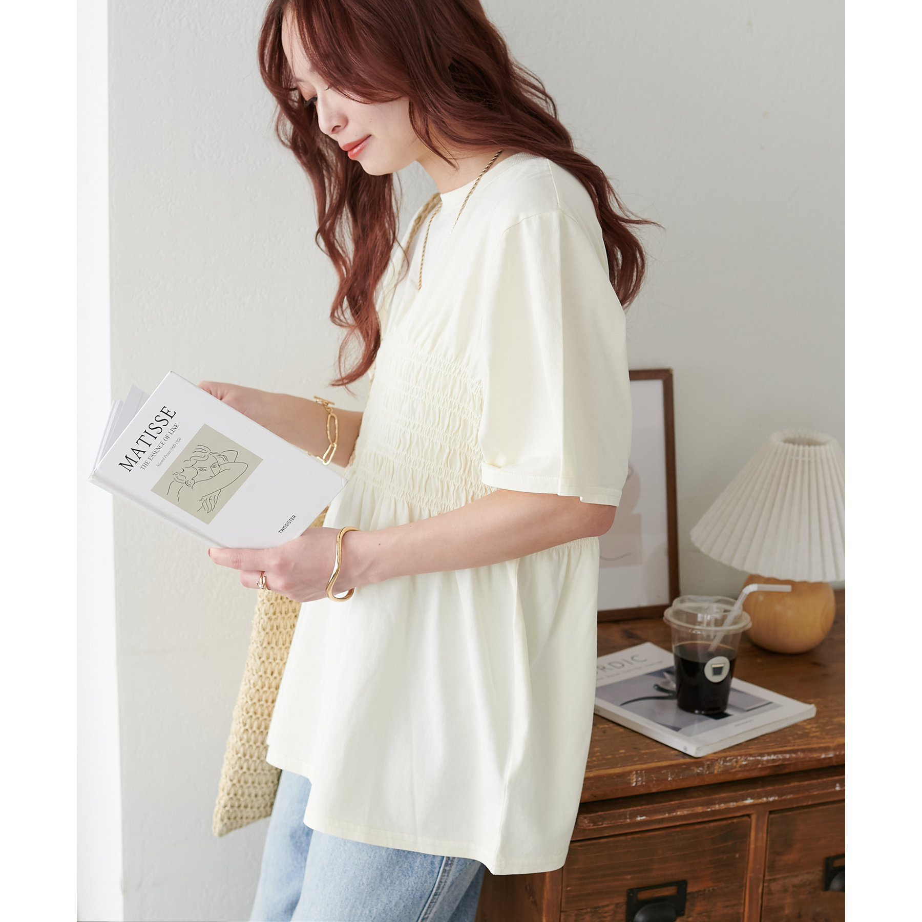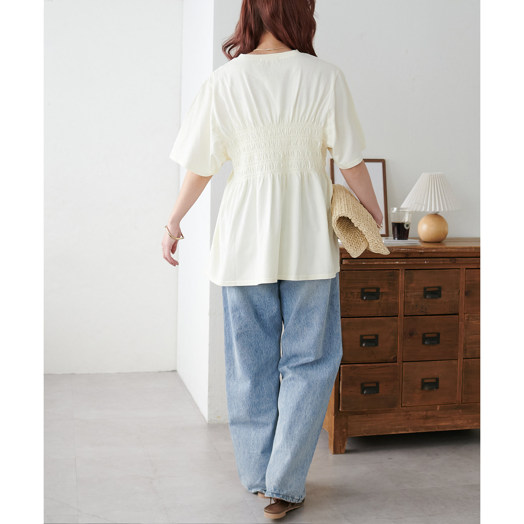 カジュアルなTシャツでありながらも、女性らしいシルエットで上品さも兼ね備えたアイテムです。