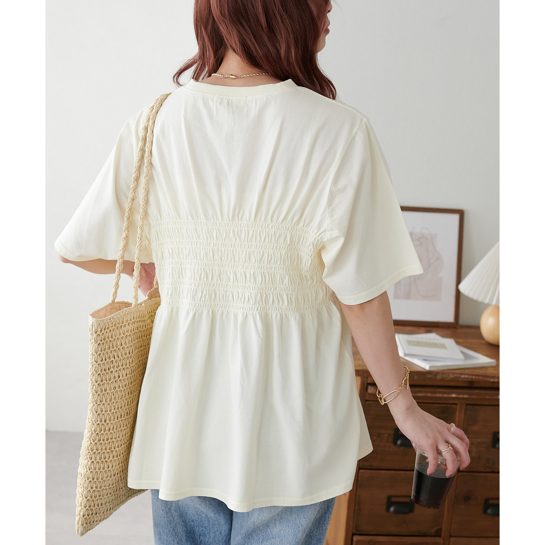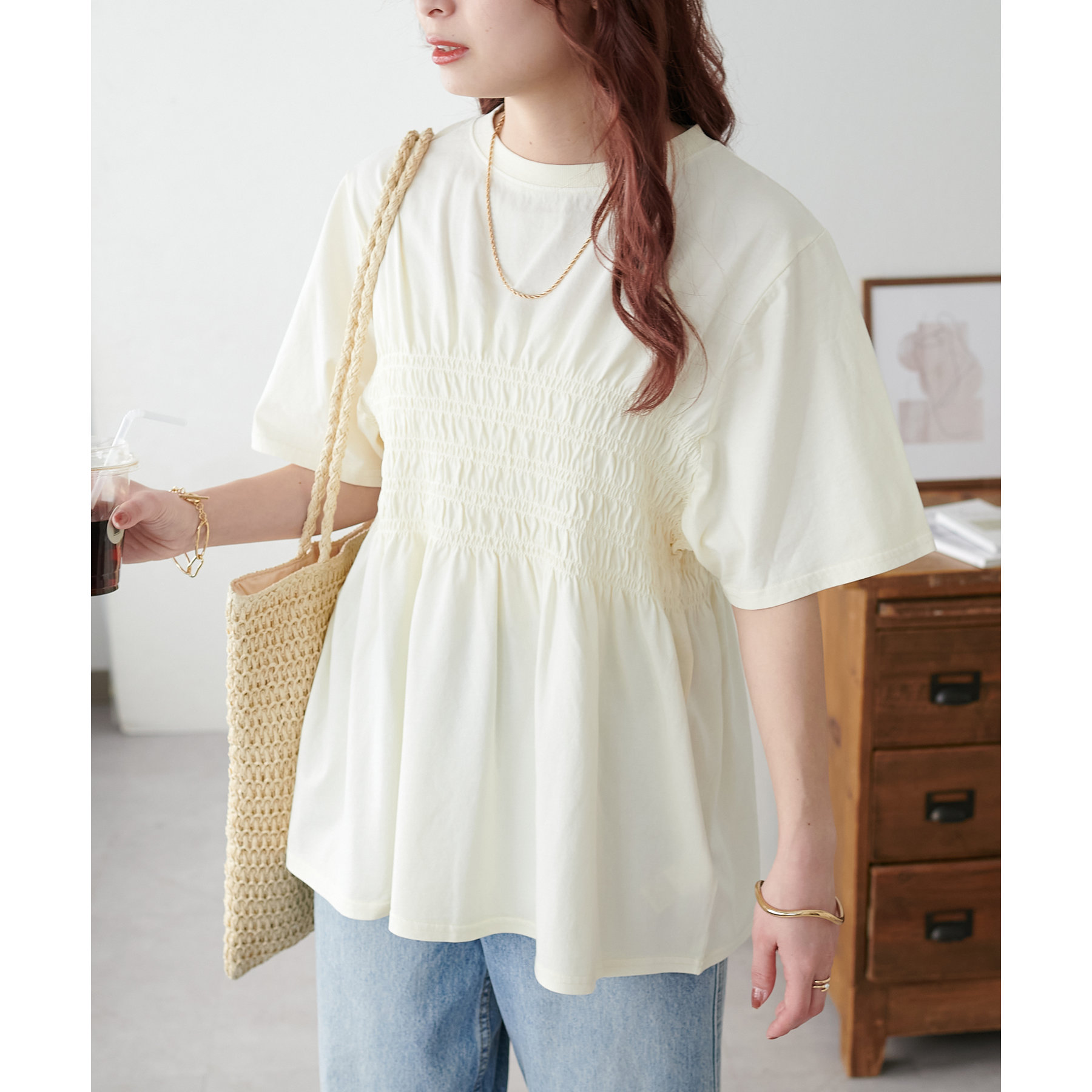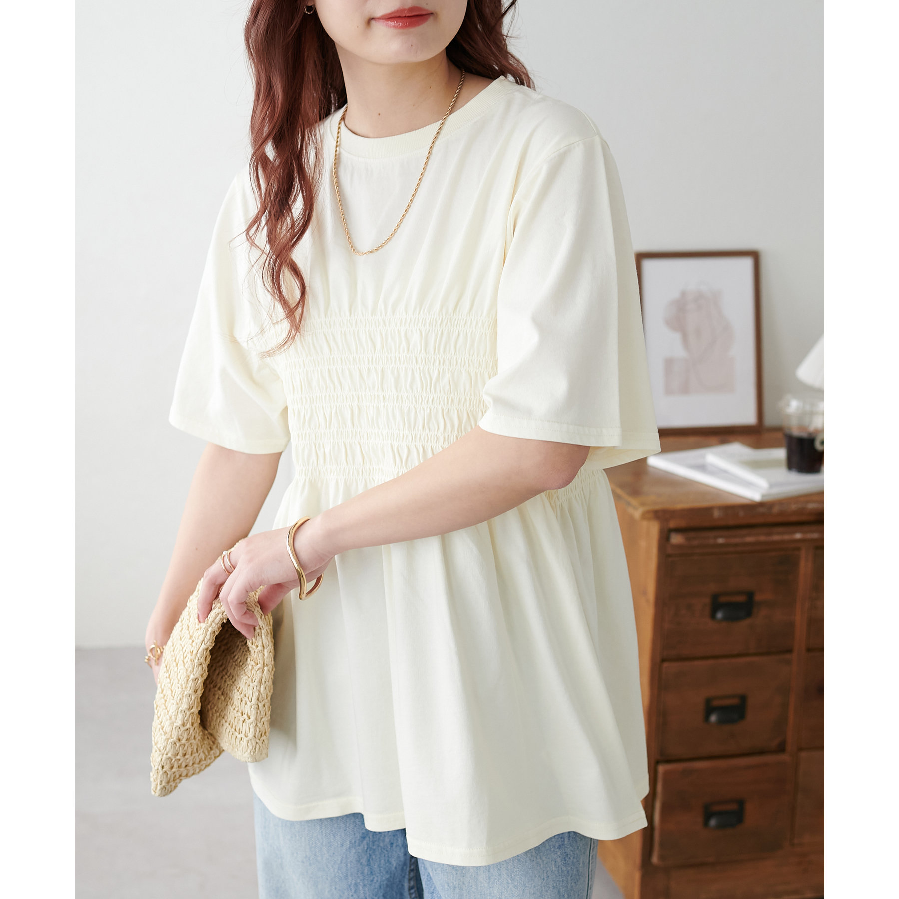 カジュアルなTシャツでありながらも、女性らしいシルエットで上品さも兼ね備えたアイテムです。