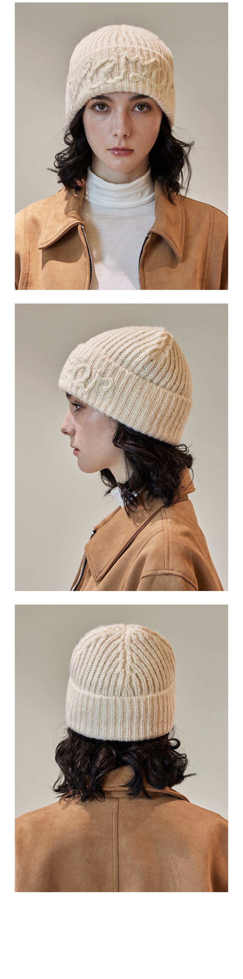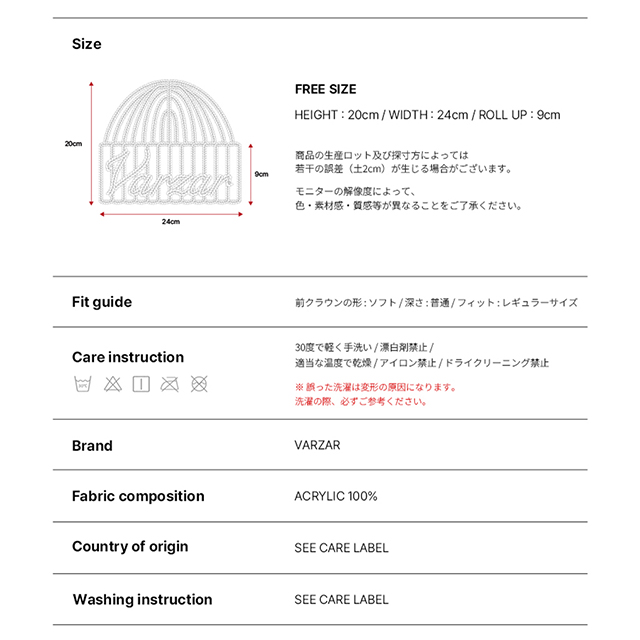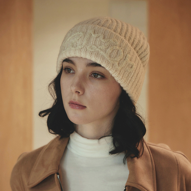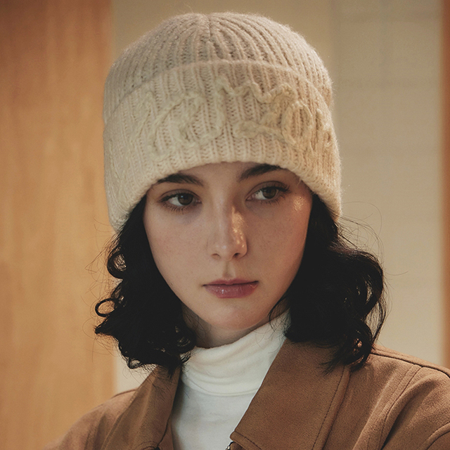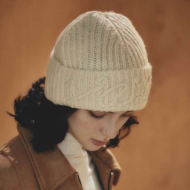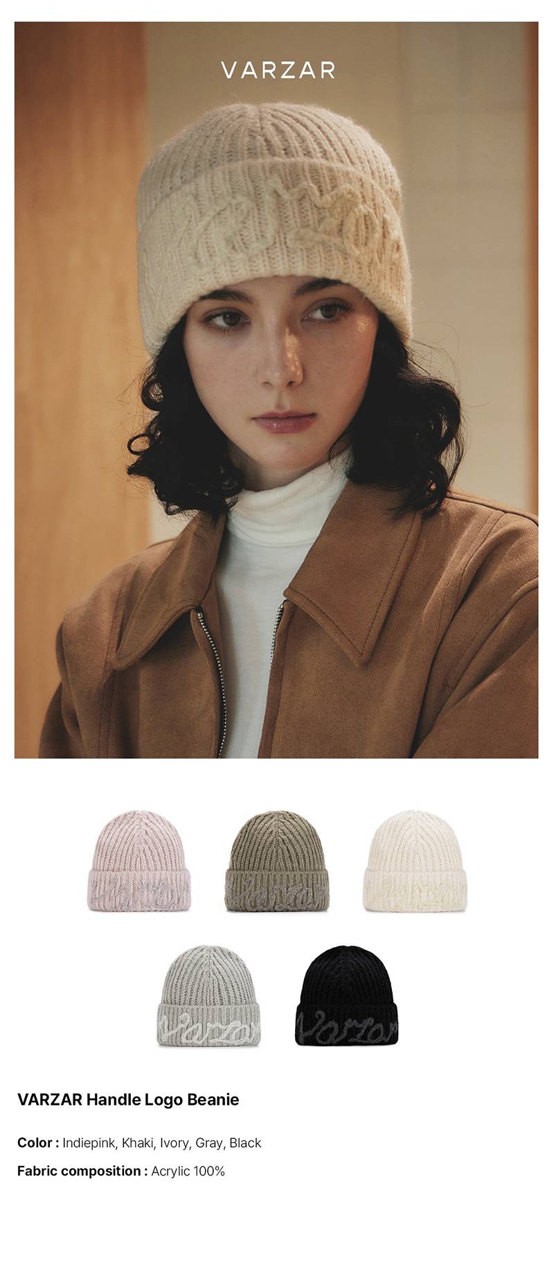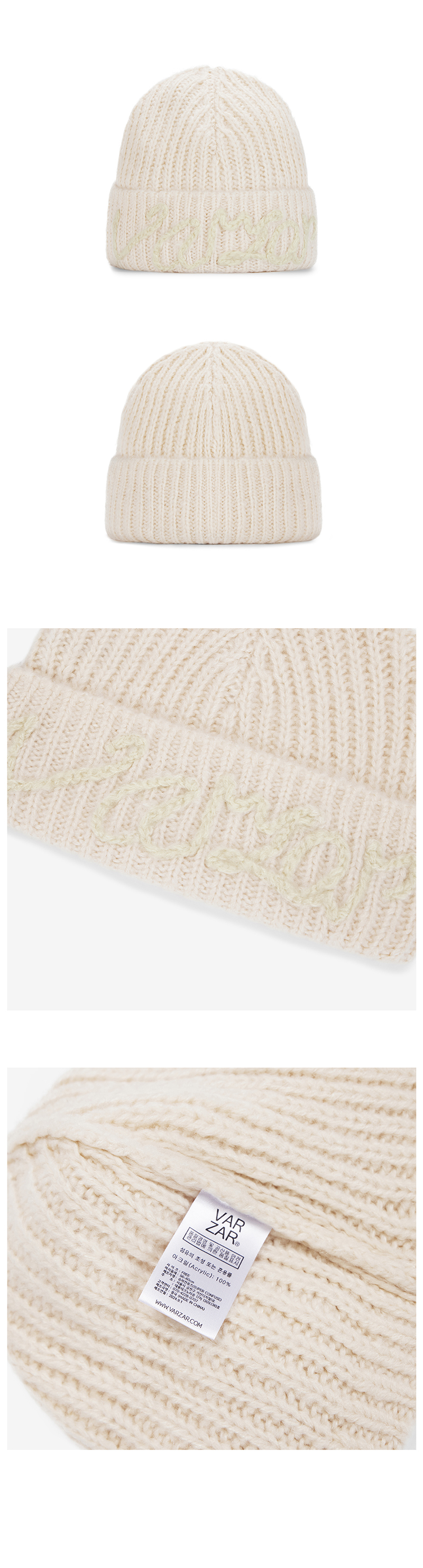 VARZAR Handle Logo Beanie Ivory