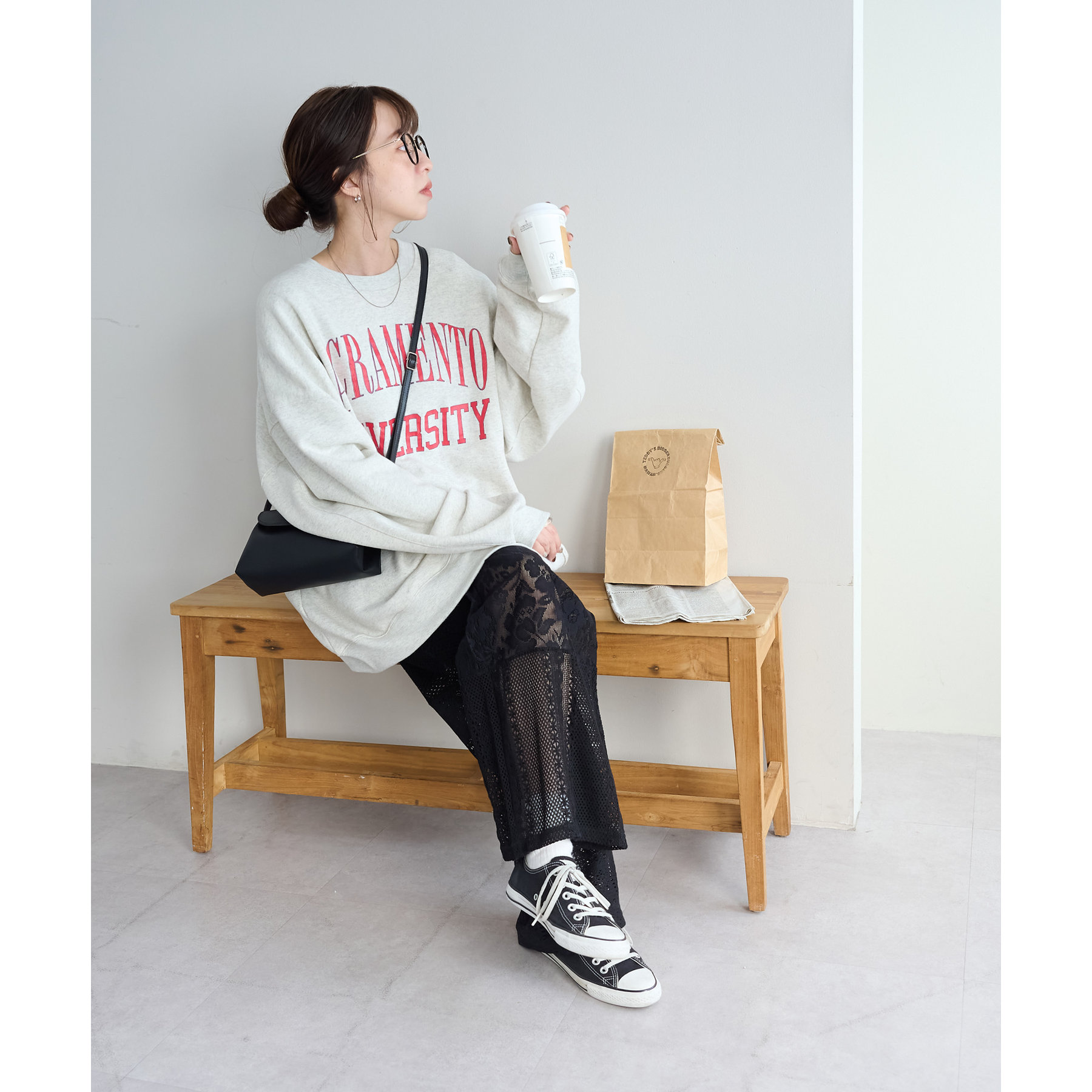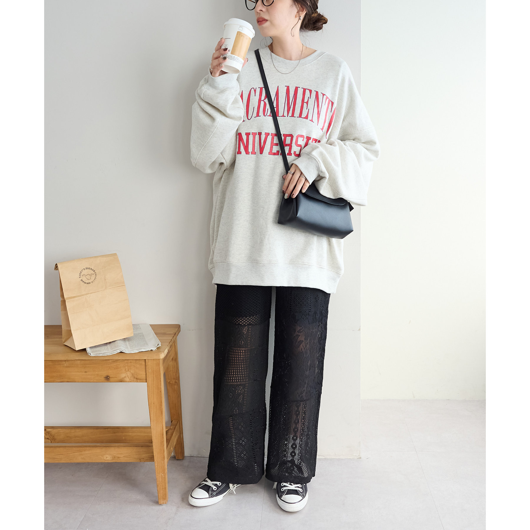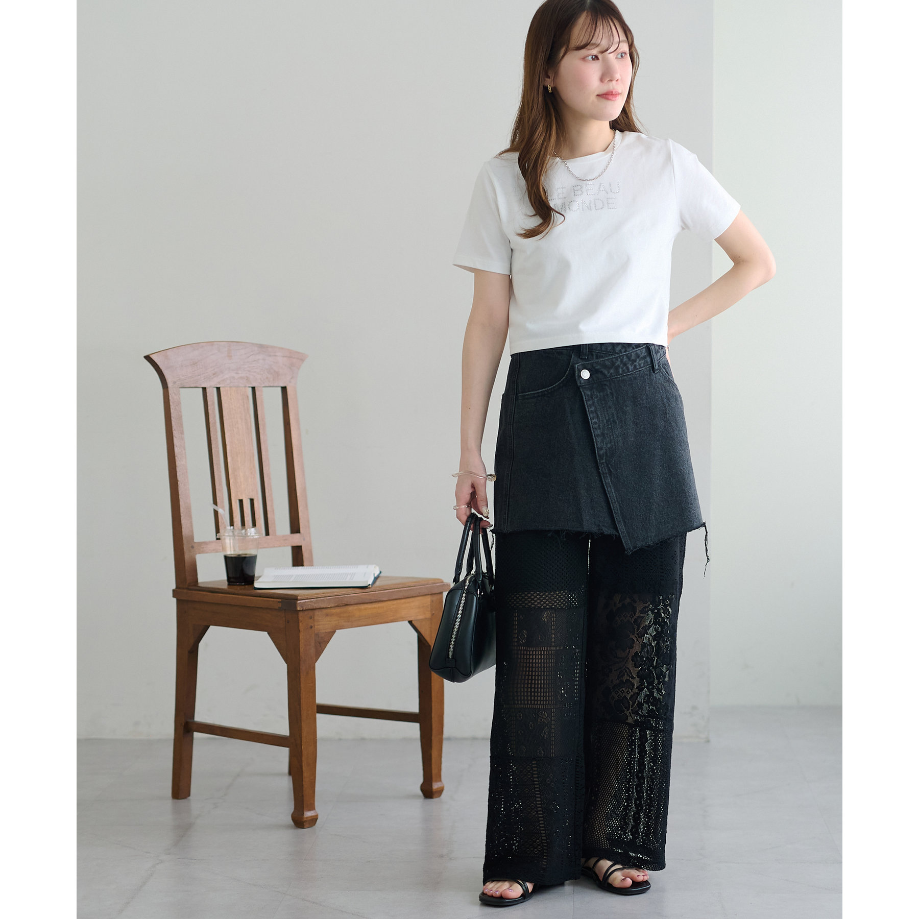 デザイン性のあるボトムスなので、シンプルなトップスを合わせても決まります!