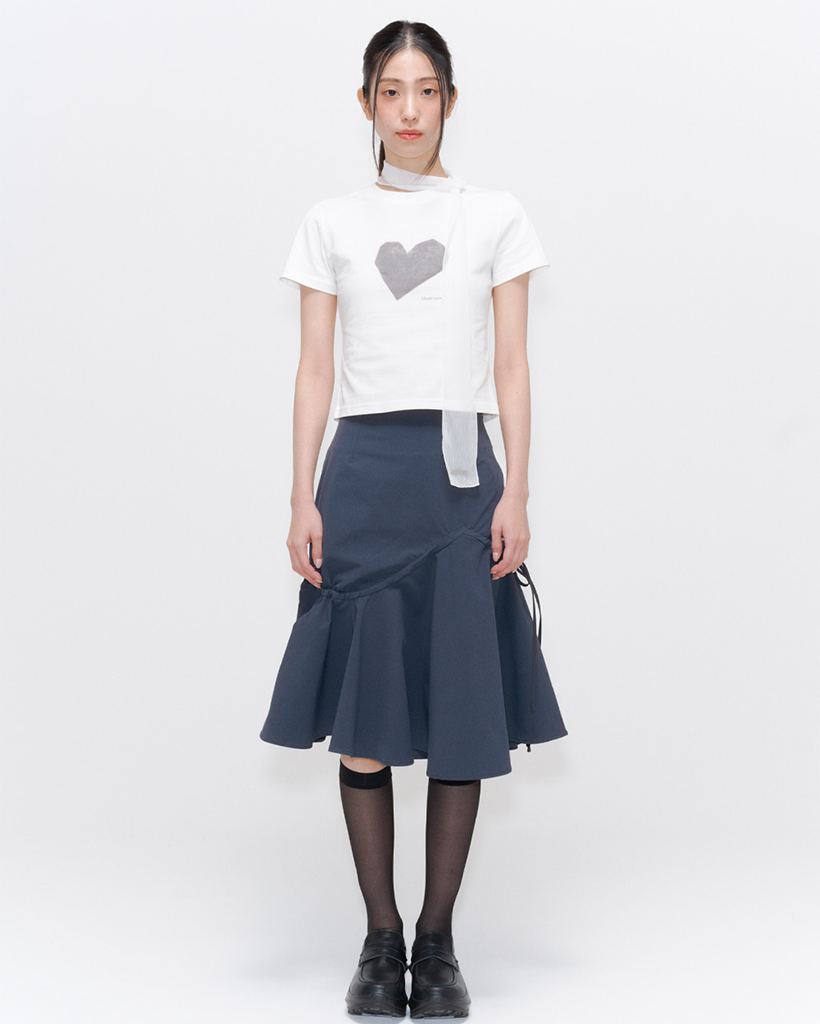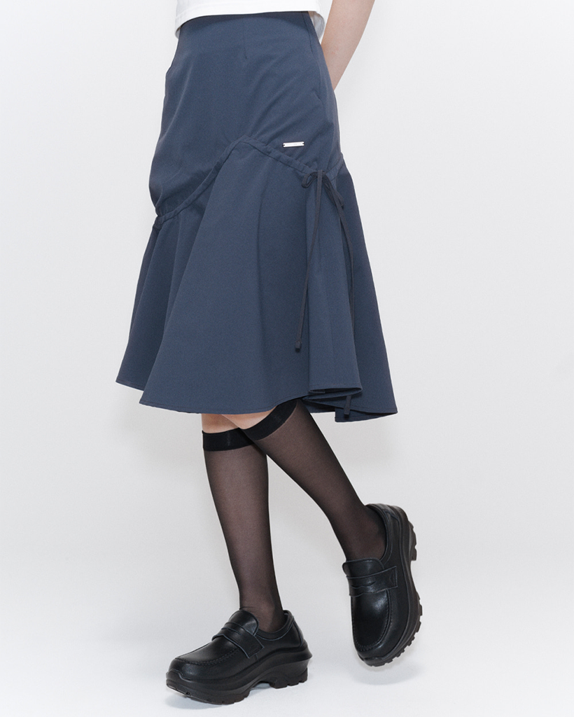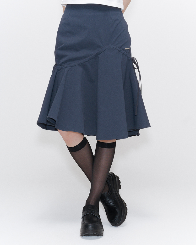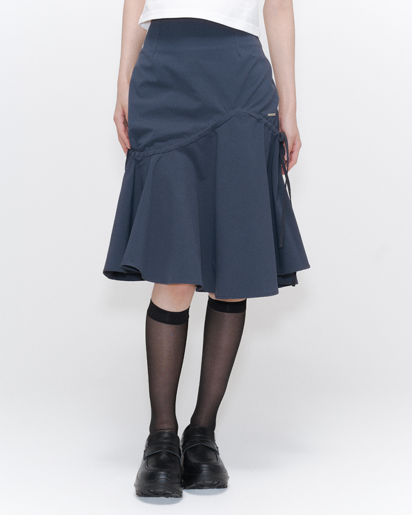 [Influencer pick] Shirring ruffle midi skirt CHARCOAL