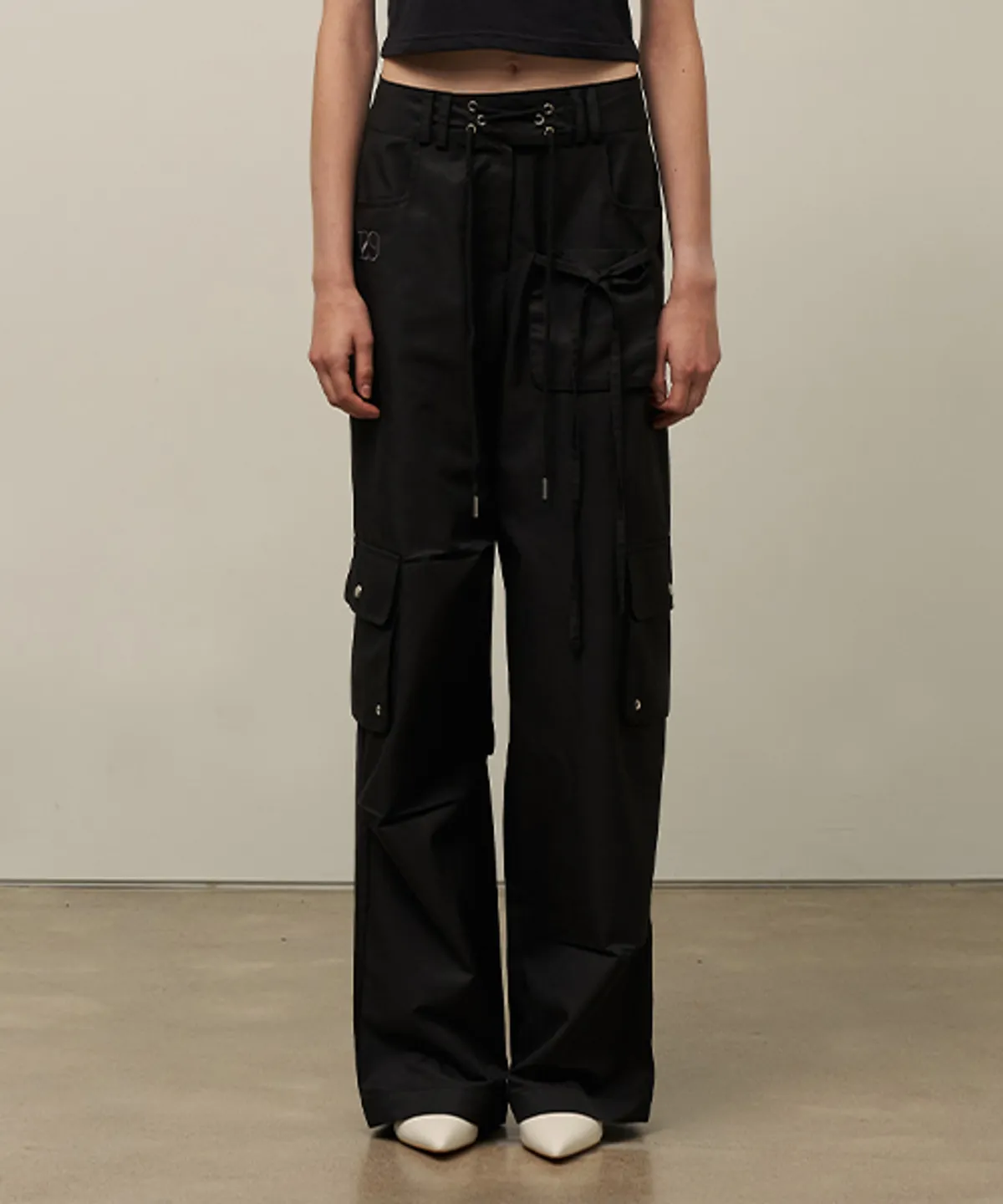 [Kアイドル着用]STRINGCARGOBANDINGPANTSBLACK