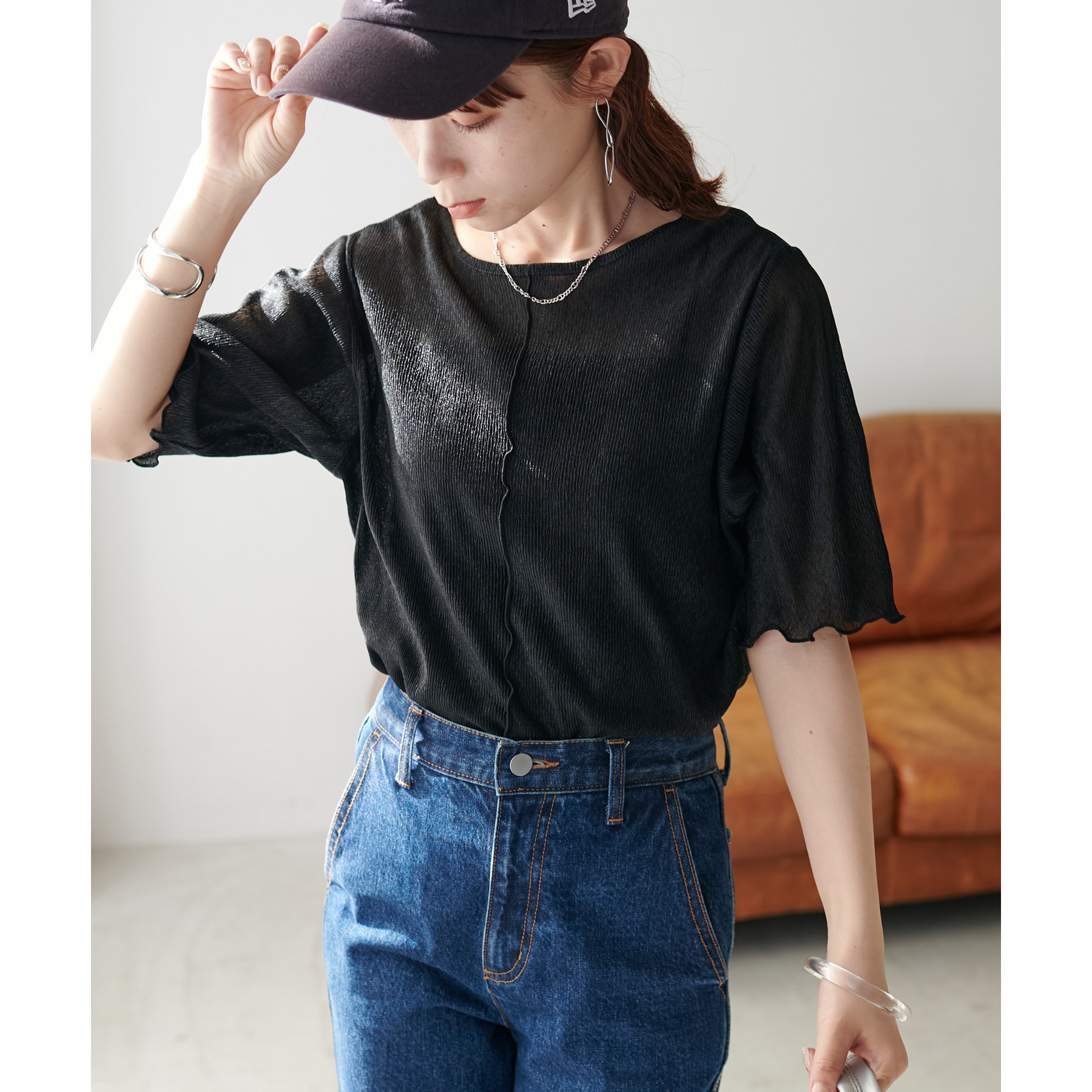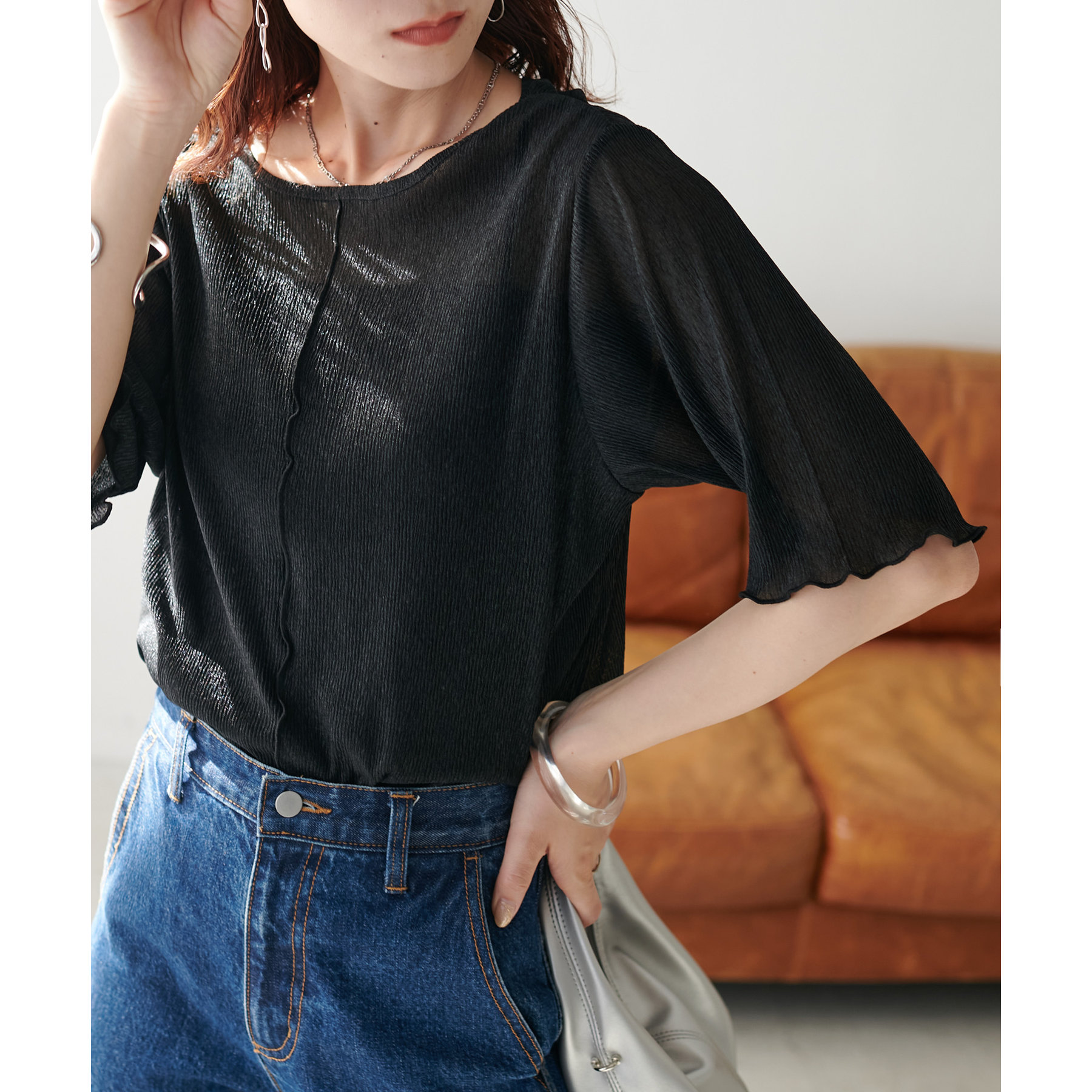 【新色追加!/WEB限定】前後2WAYラメプリーツシアーT