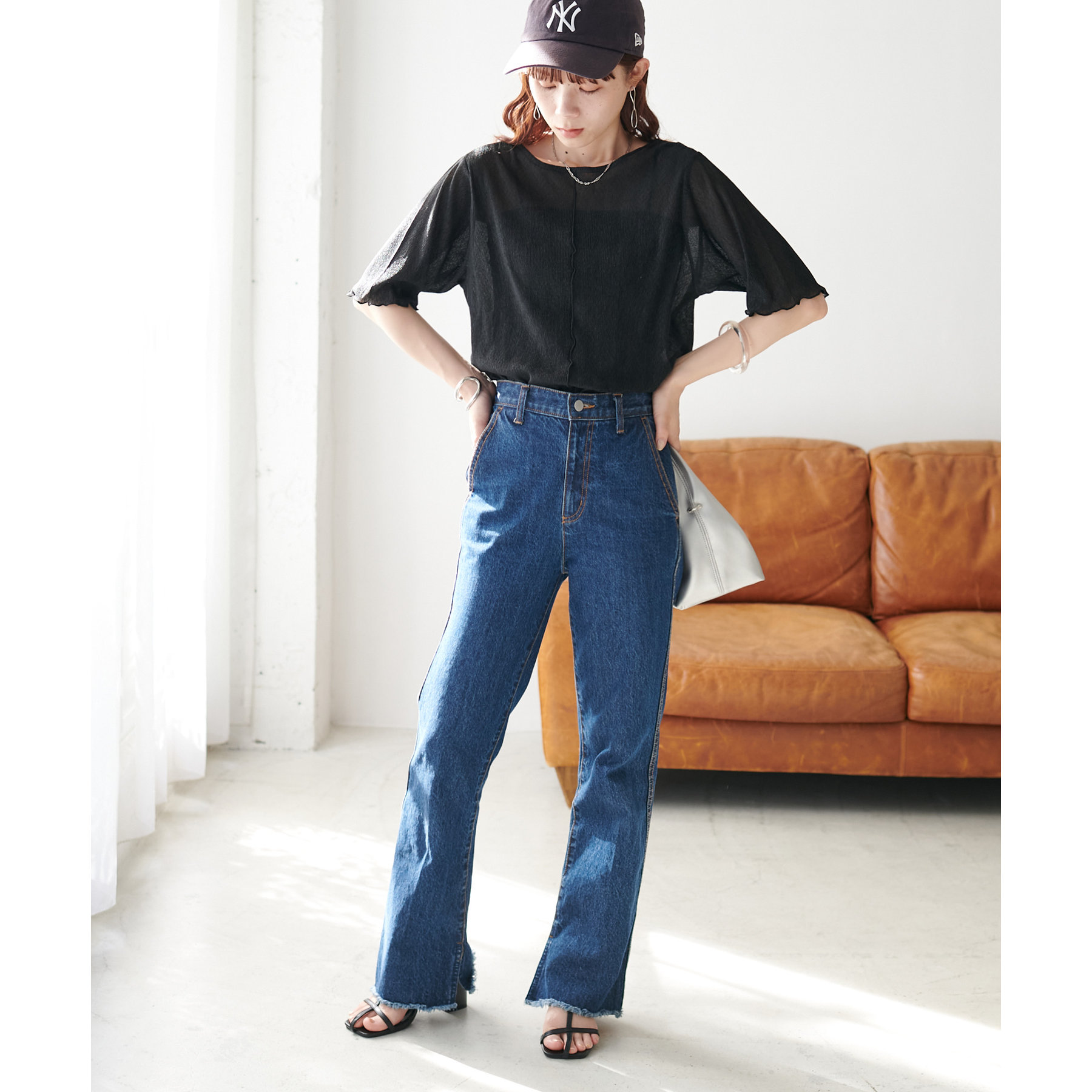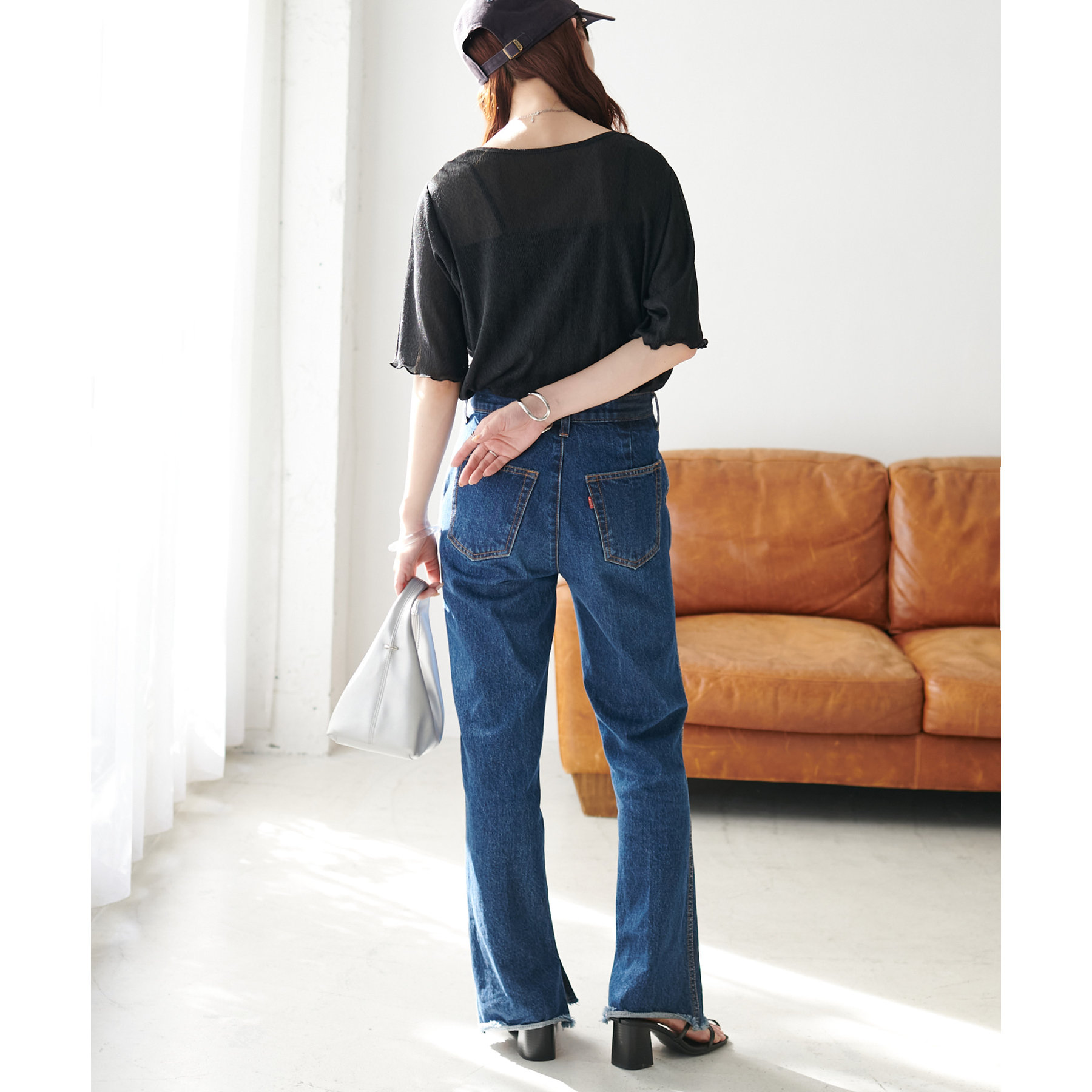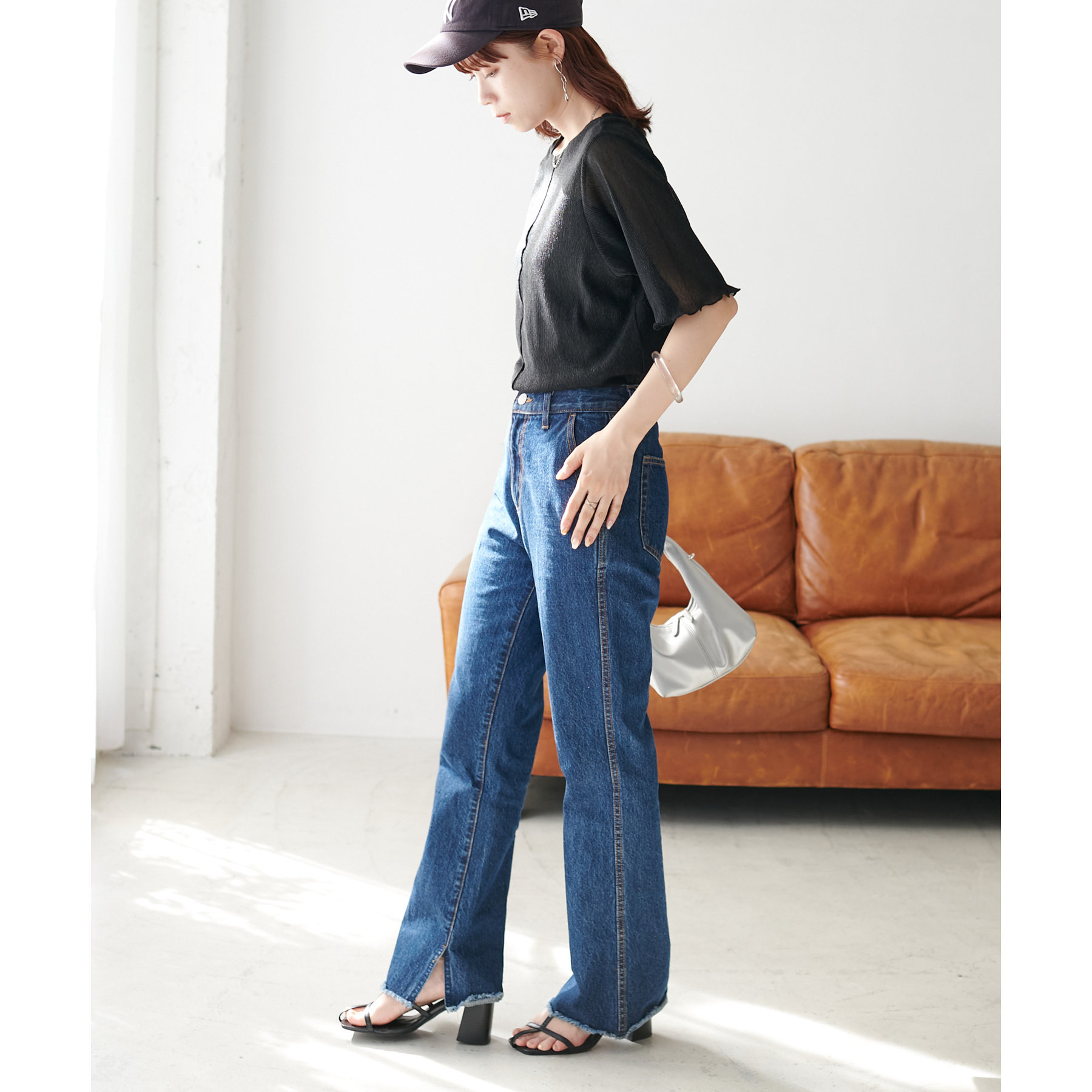 インでもアウトでもこなれ感のでるアイテムです。定番のデニムはもちろん、リメイクパンツやカーゴパンツ等でキレイめカジュアルな印象になる着こなしもおすすめです♪
