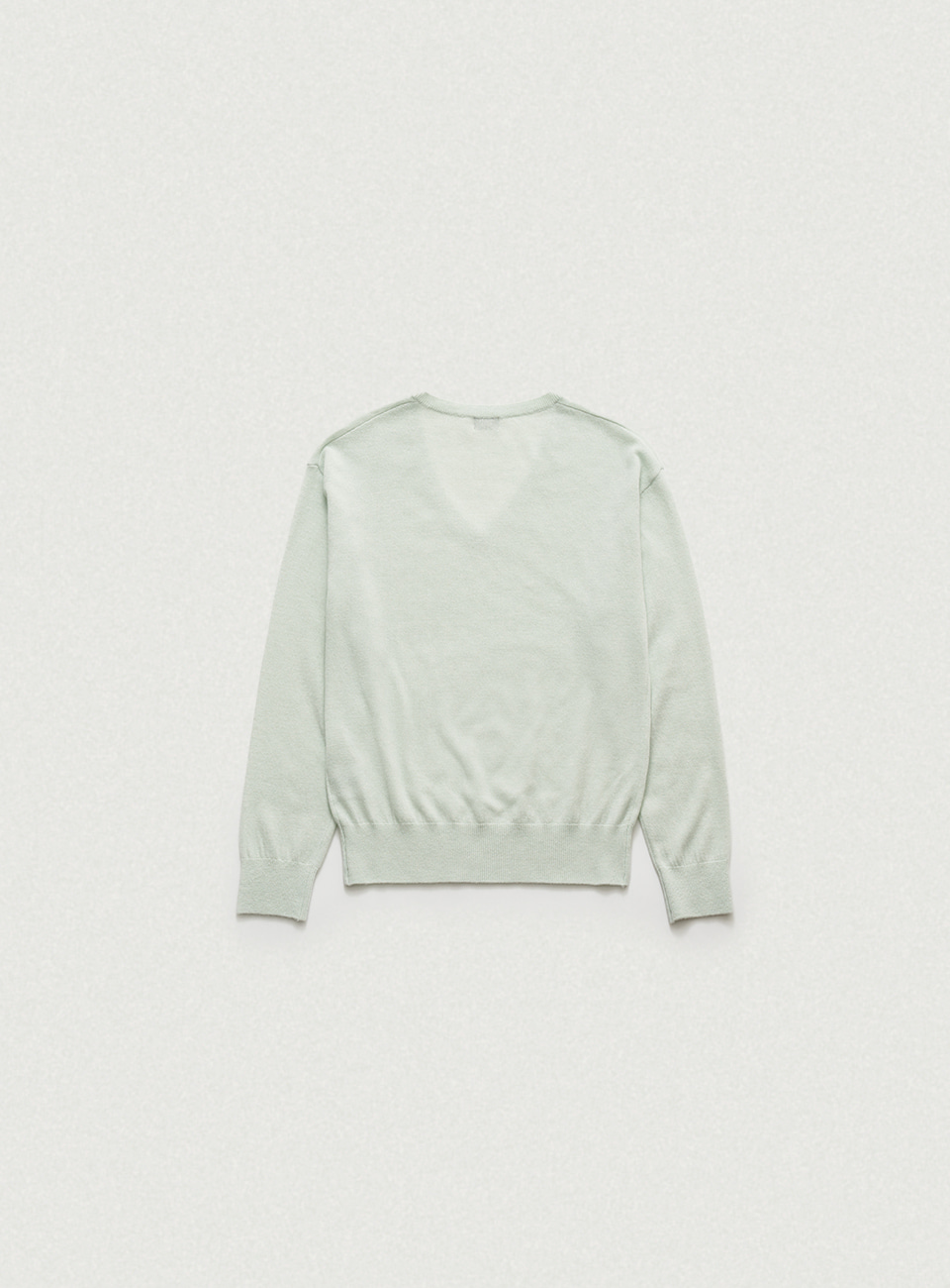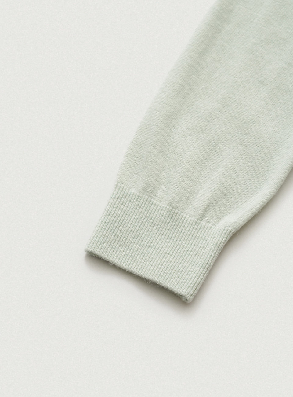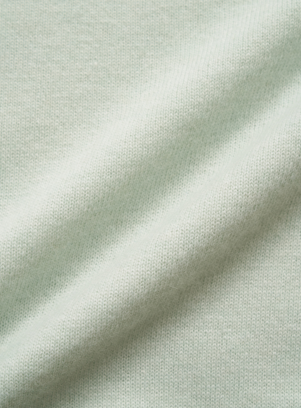 "ミントカラーの軽くて柔らかなテクスチャーが特徴のカシミヤ混ニットファブリック。