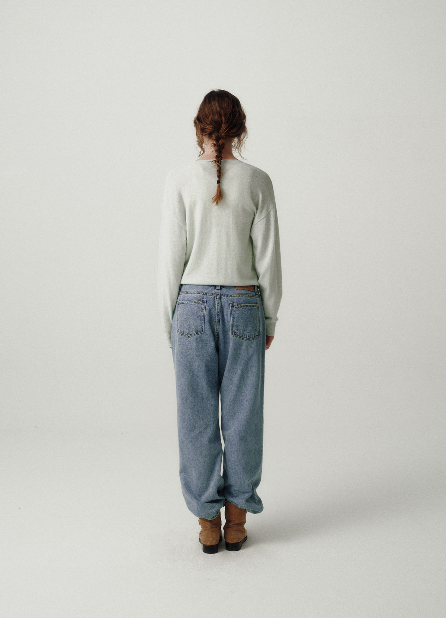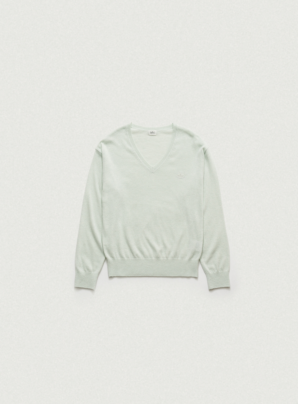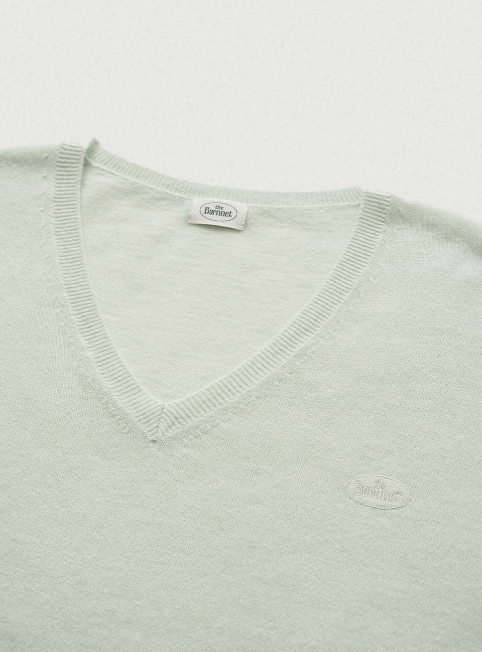 "ミントカラーの軽くて柔らかなテクスチャーが特徴のカシミヤ混ニットファブリック。