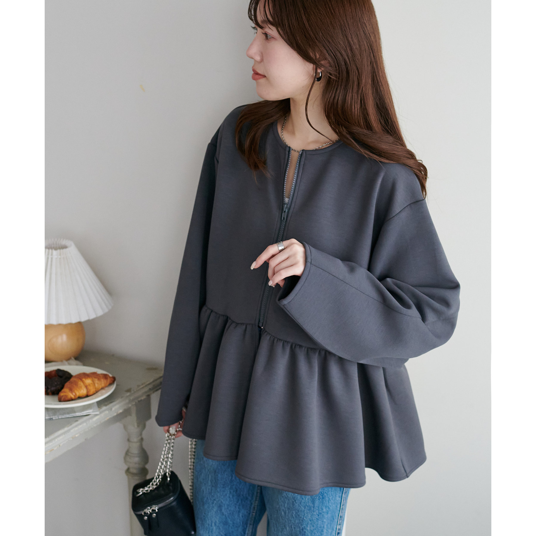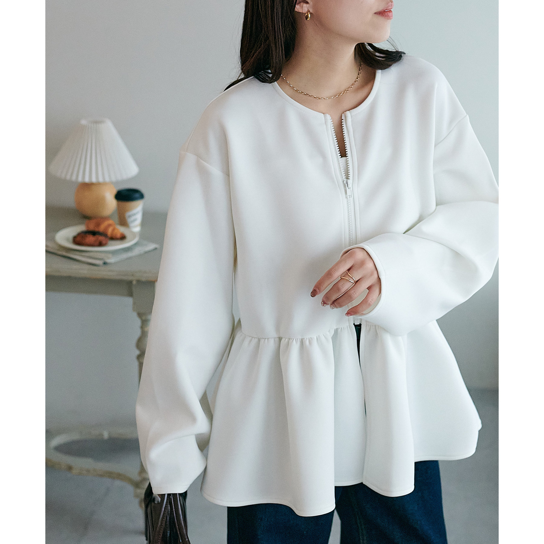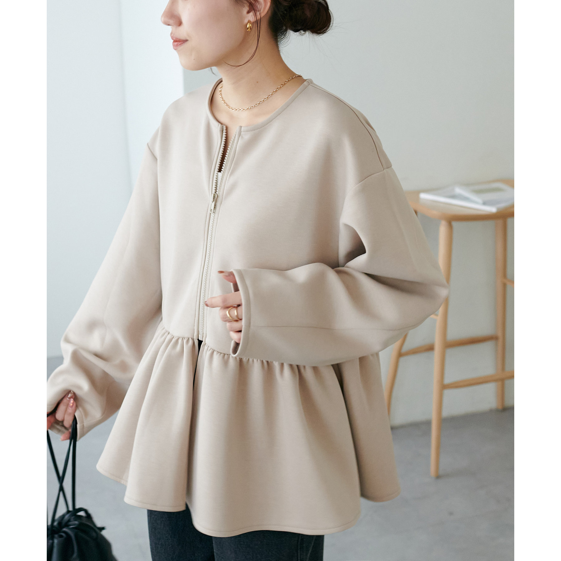 【WEB限定】ペプラムノーカラージャケット