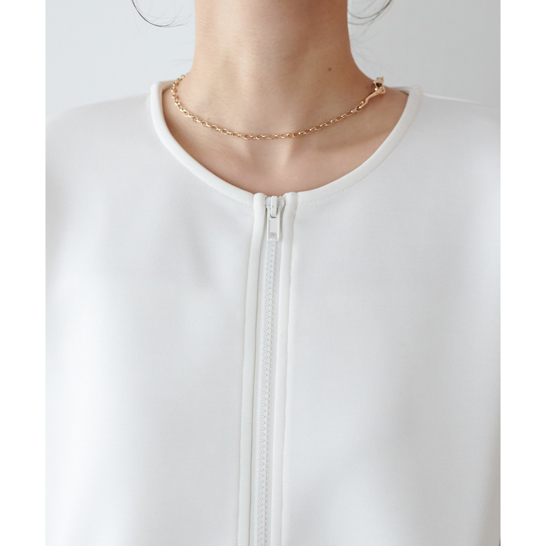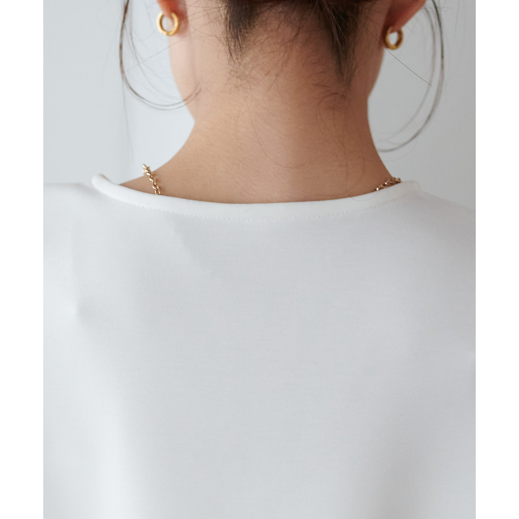首回りはすっきりとしたUネックなので、ネックレスなどを合わせることで
