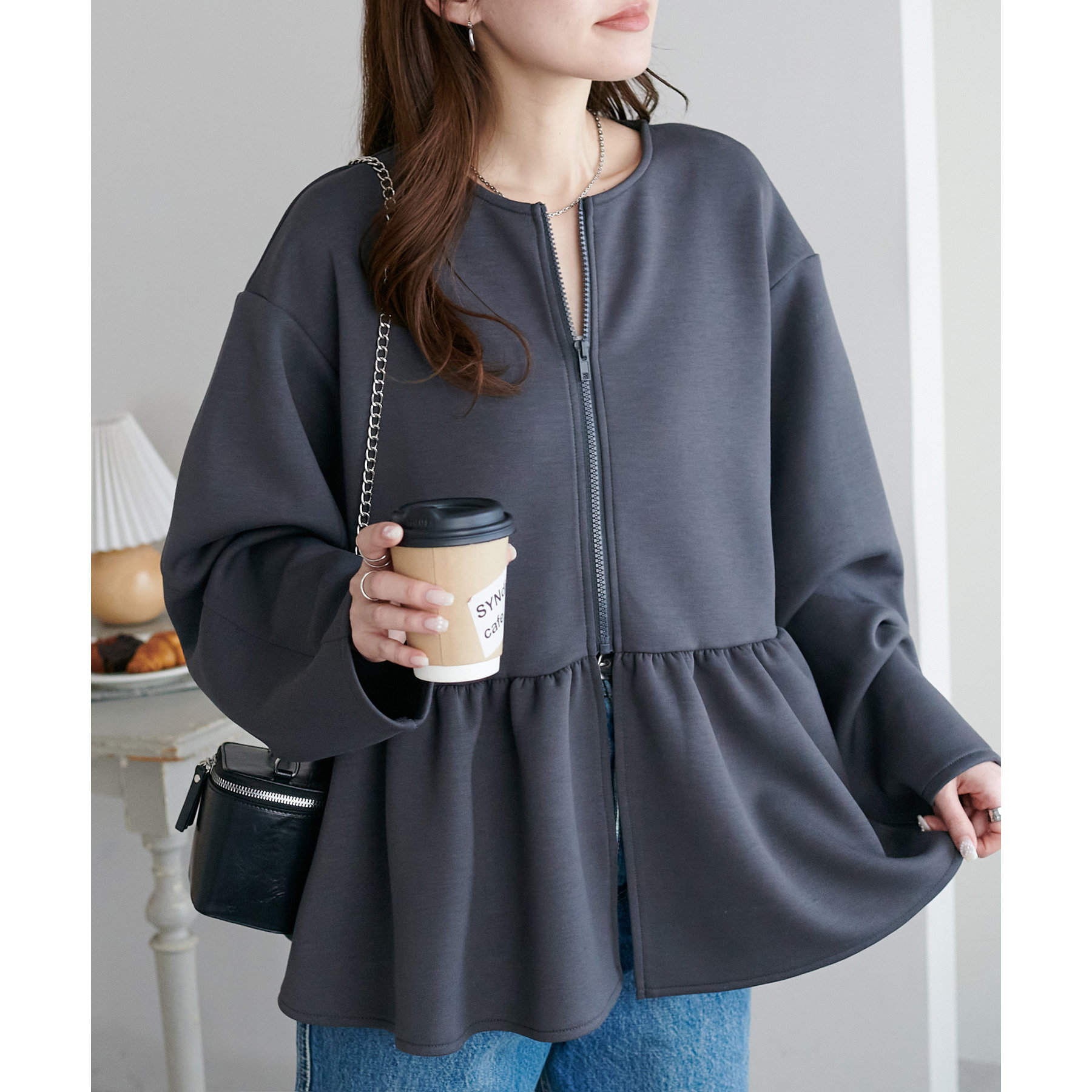ジッパーを開けて羽織りとしても活用いただけます!