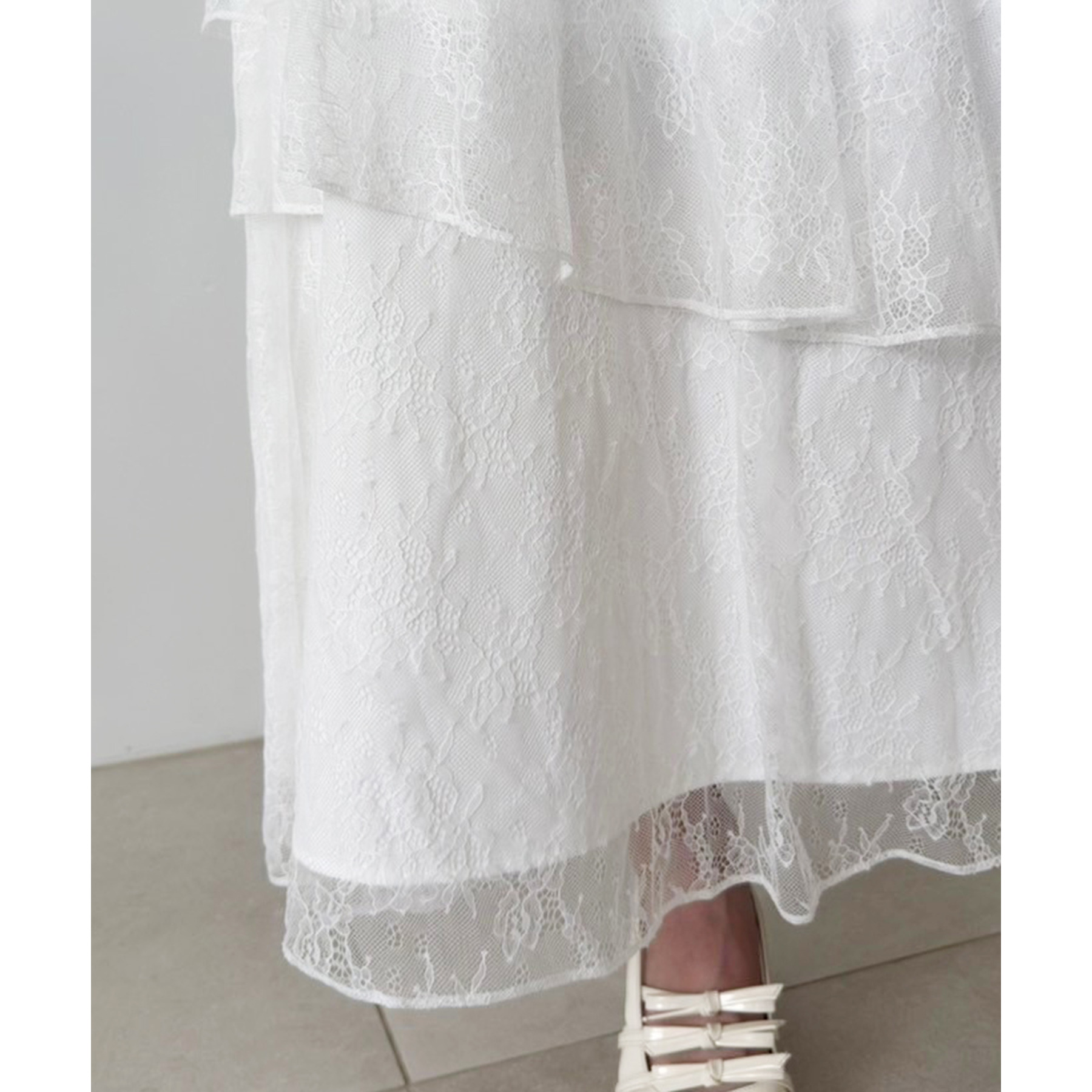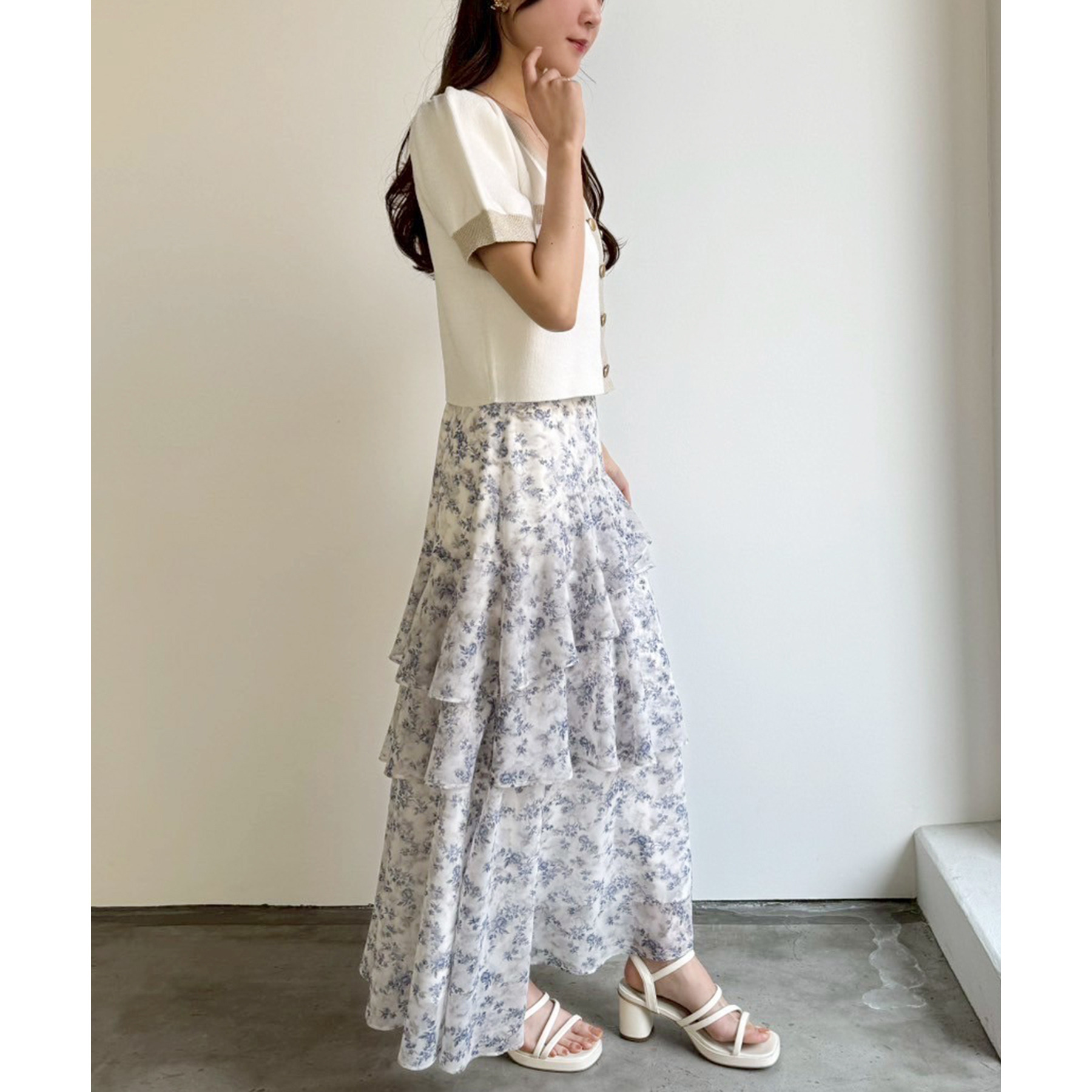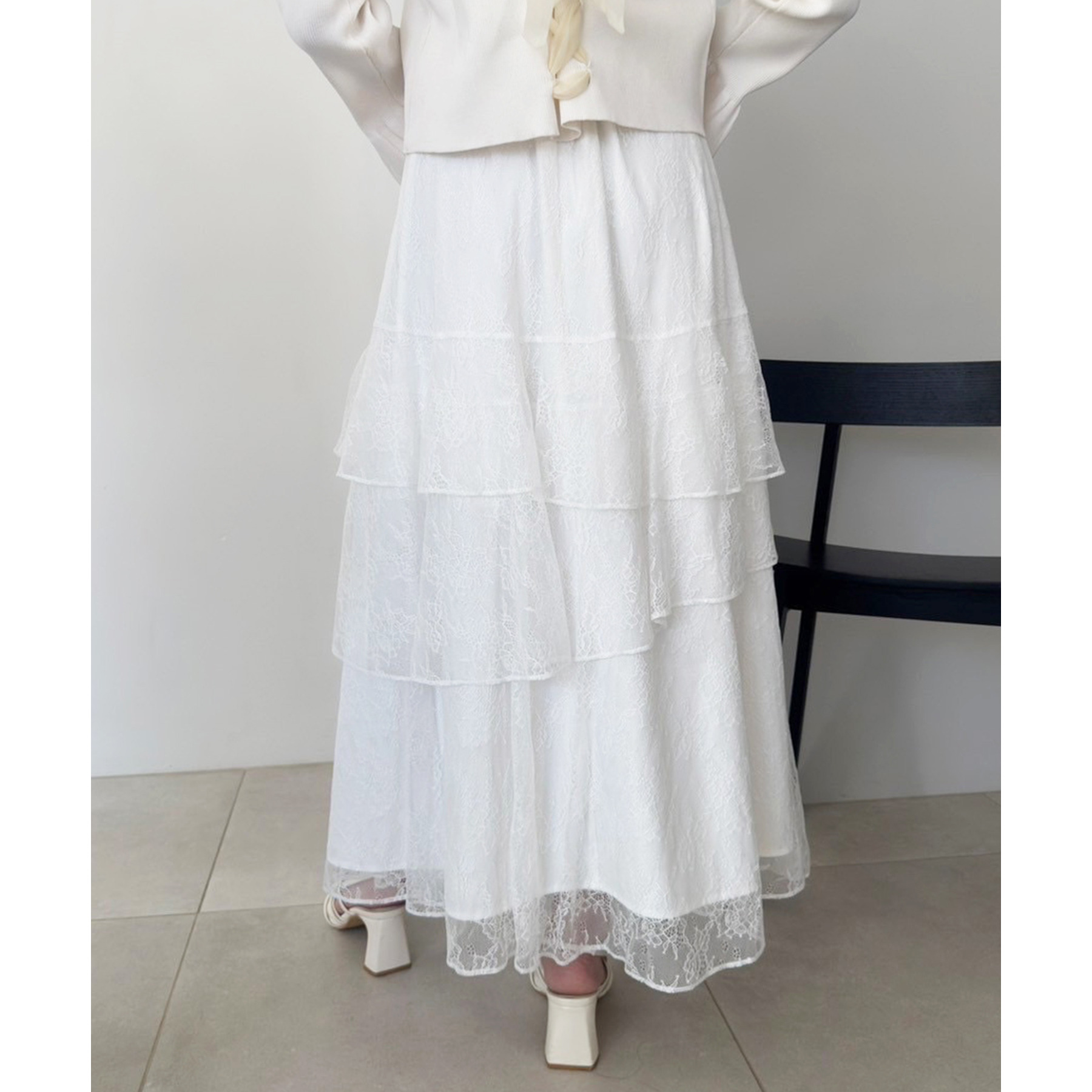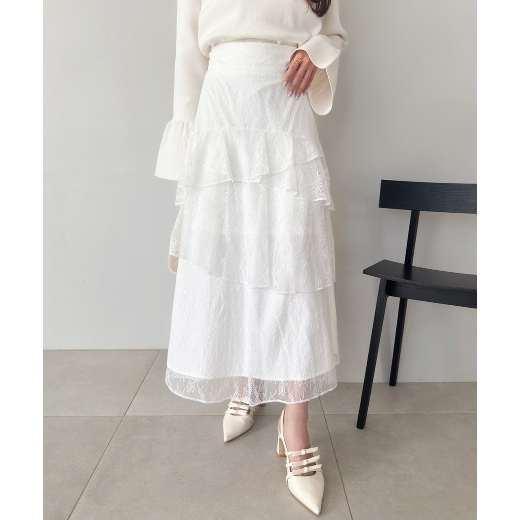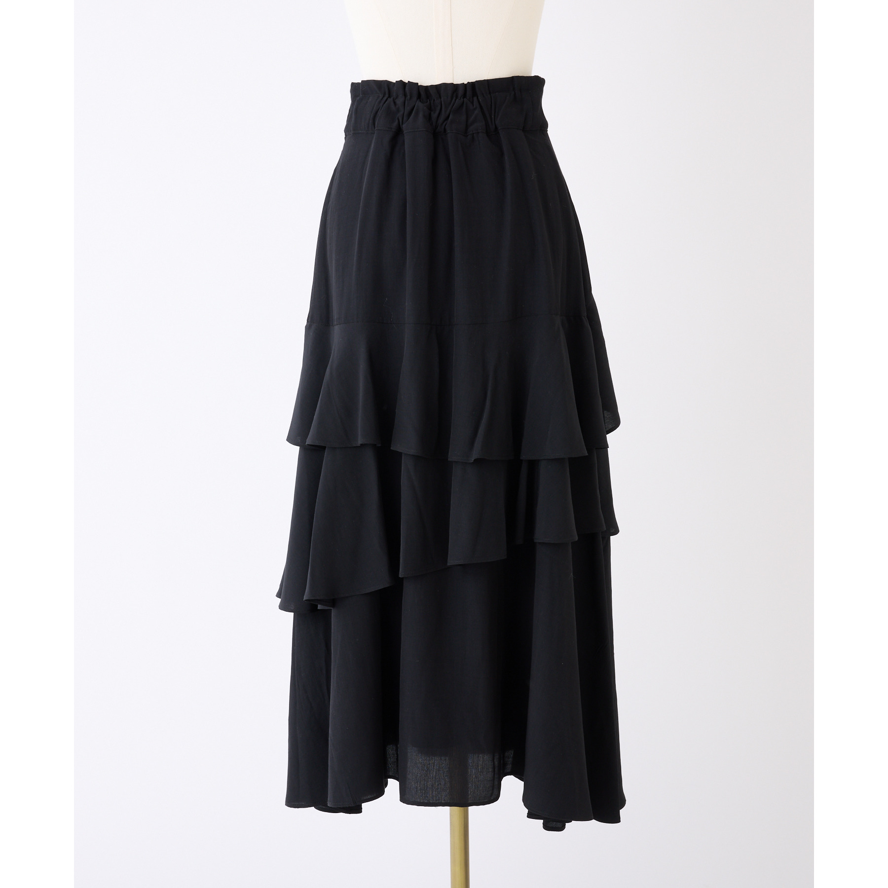 動きに合わせて揺れる、たっぷりと重ねたフリルが女性らしいティアードスカート