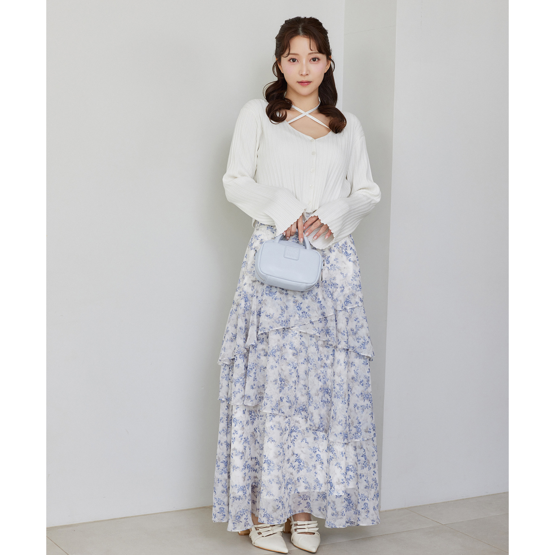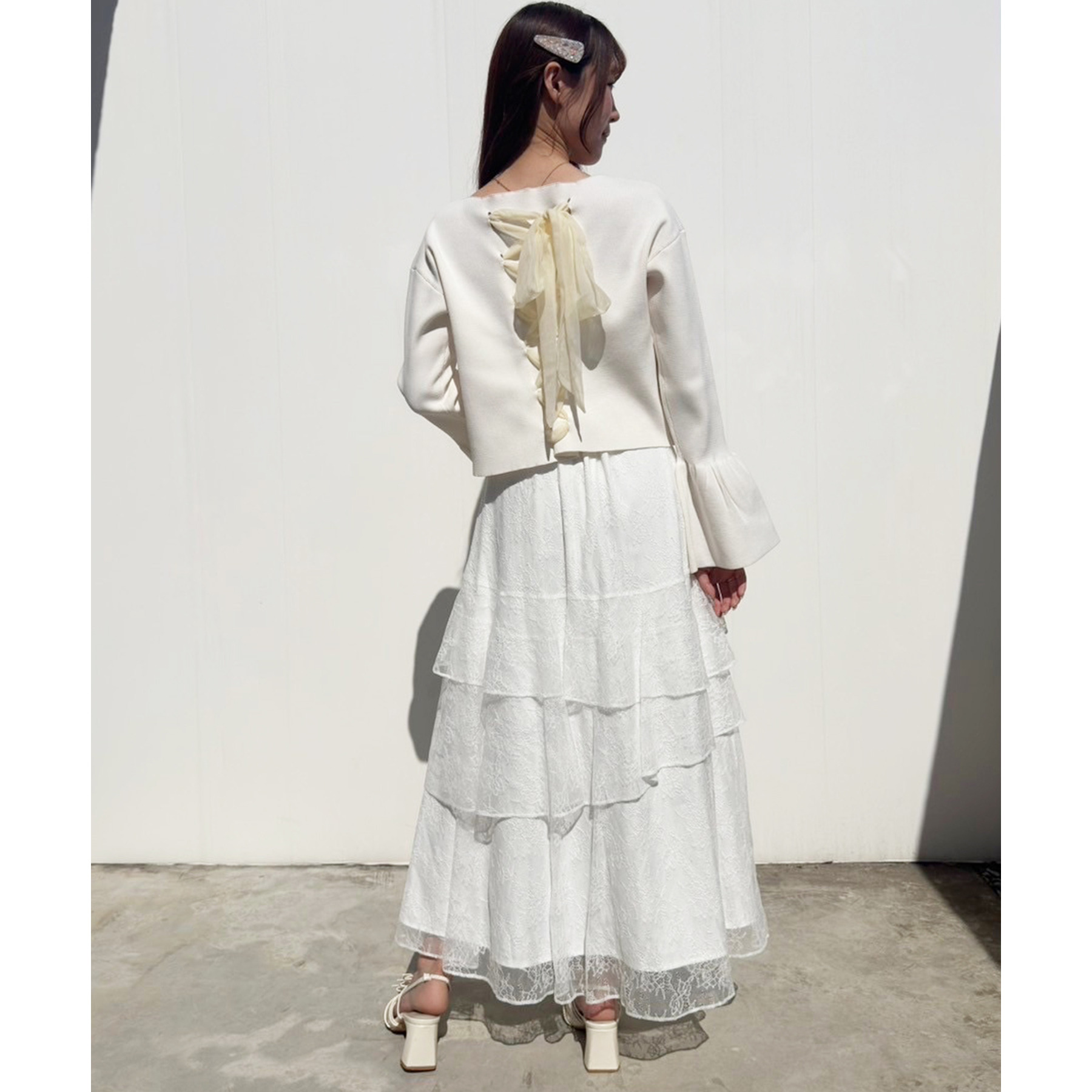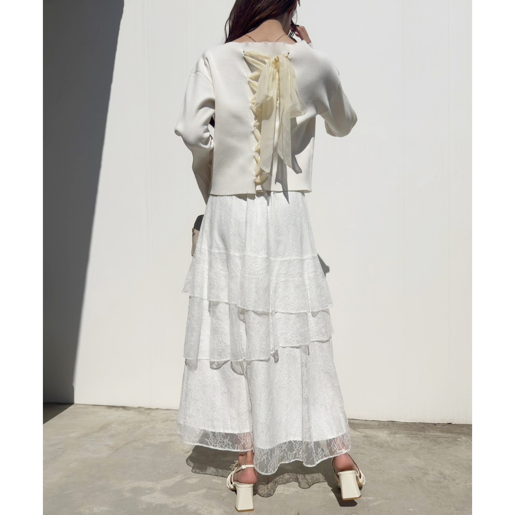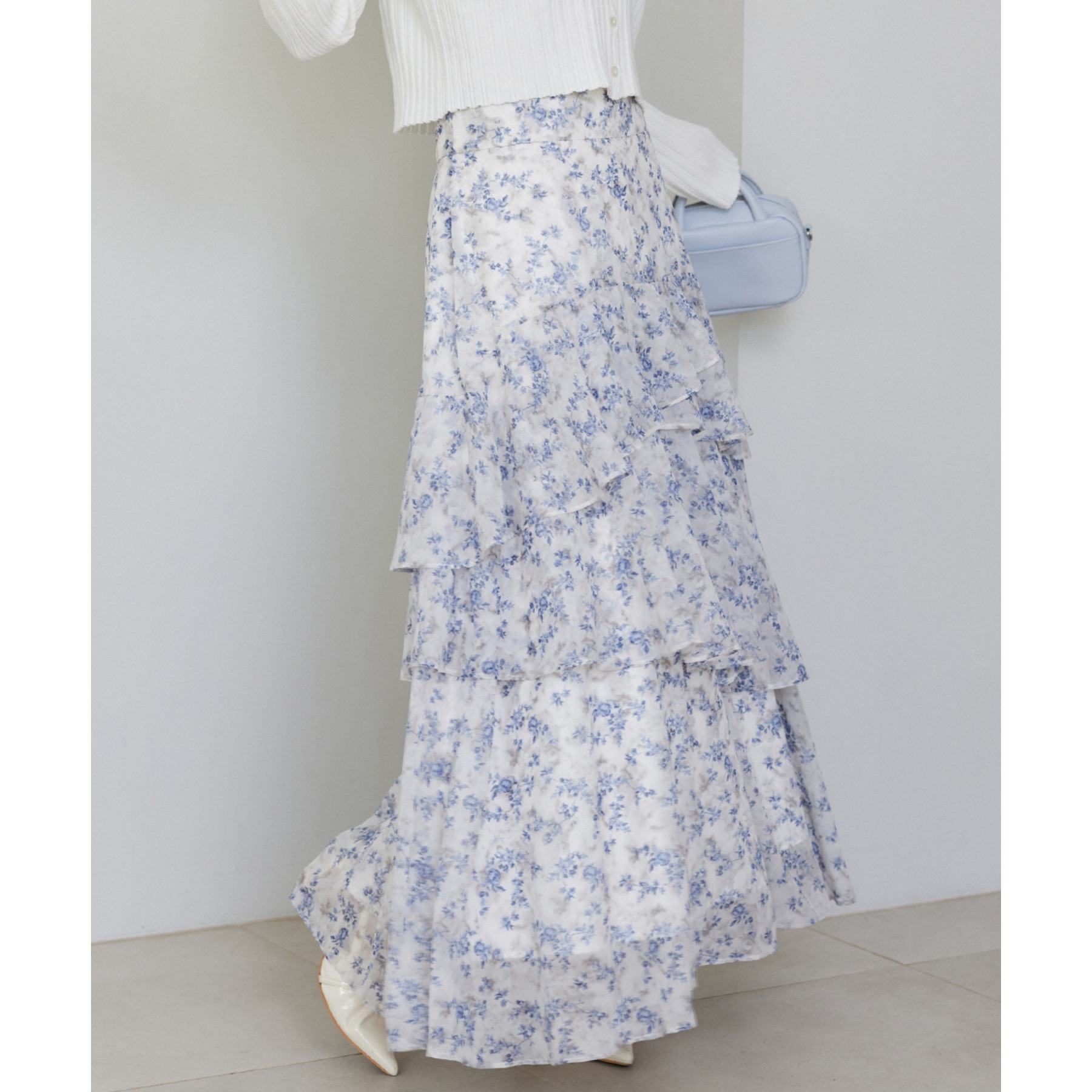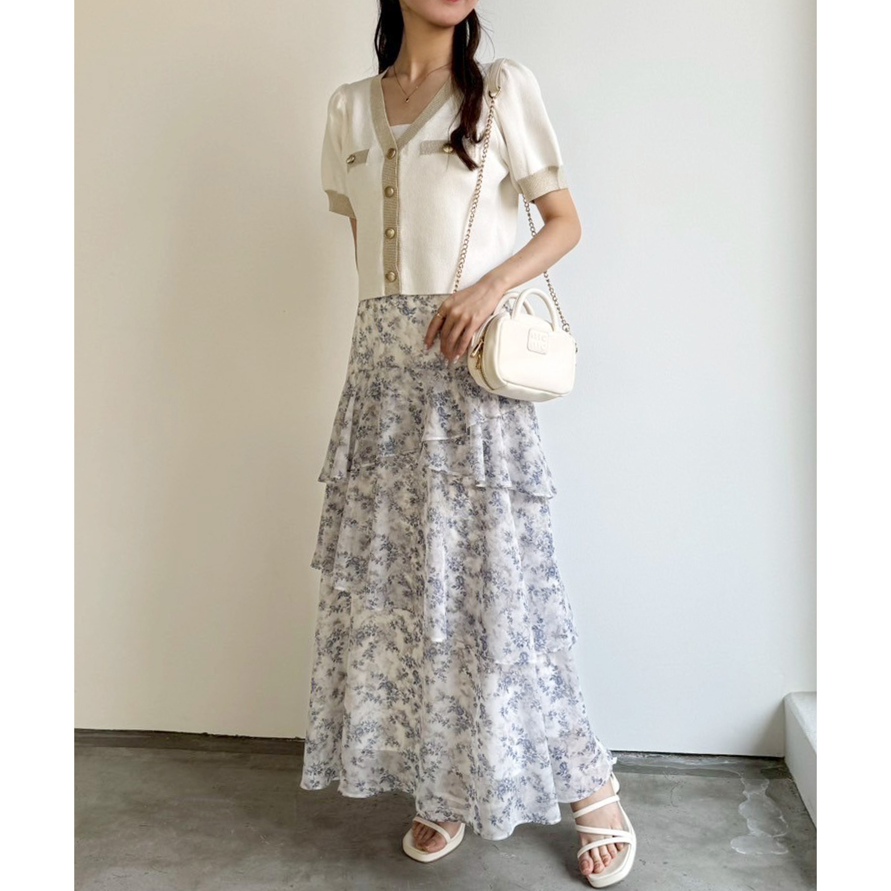 ティアードが目を惹くデザインなので、シンプルめのトップスでも