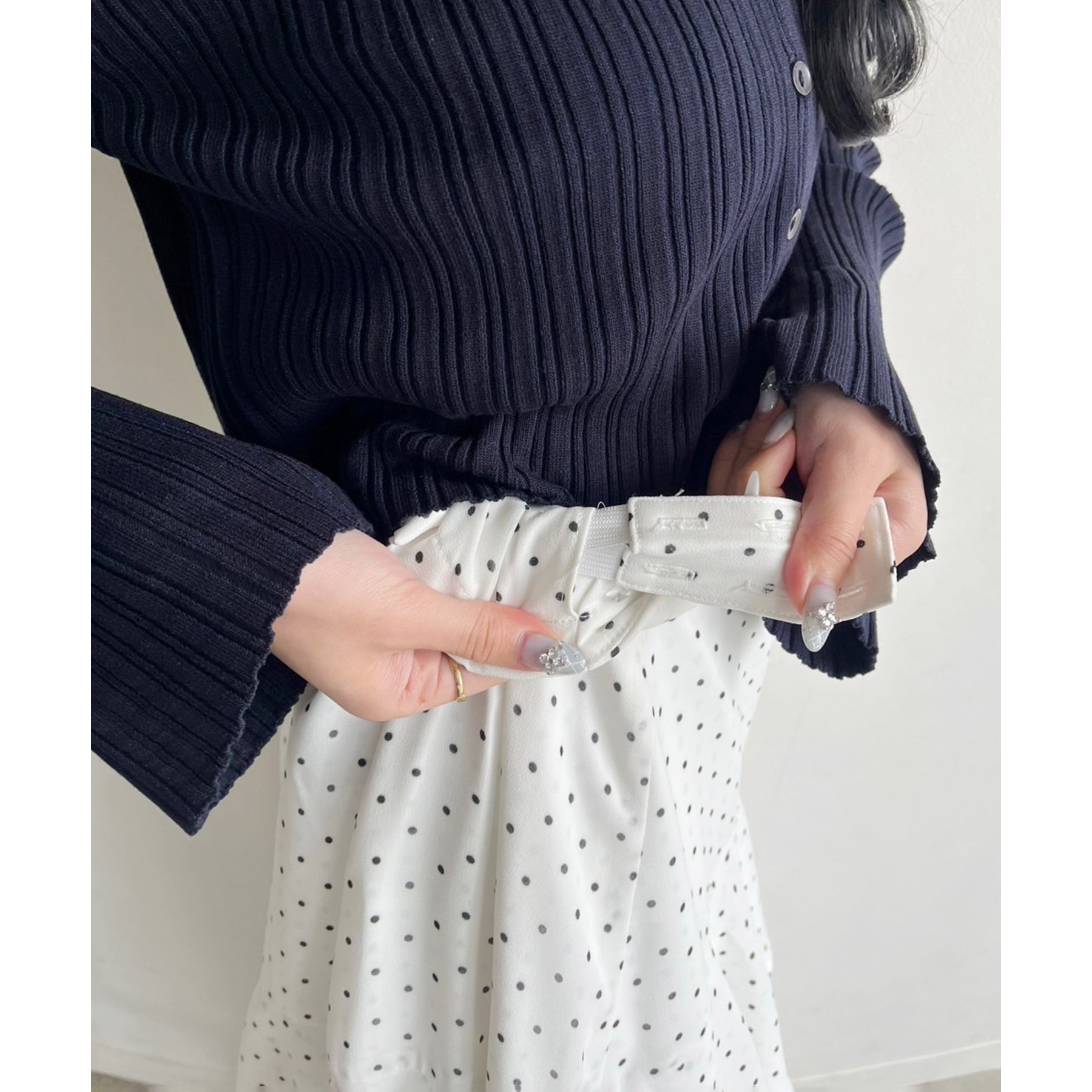 ウエストのサイズを気にせず、自身の身長に合わせてサイズが選べるスカート
