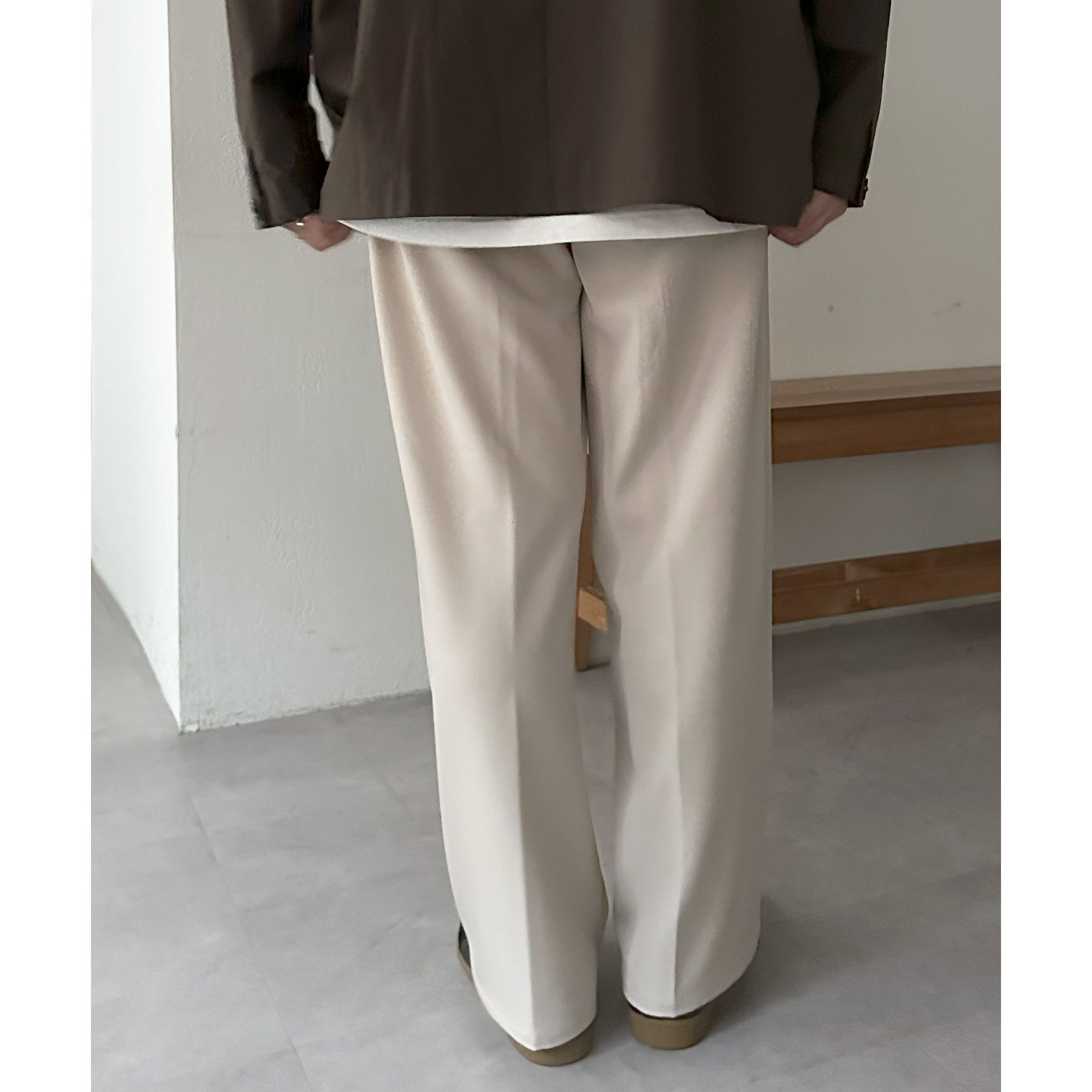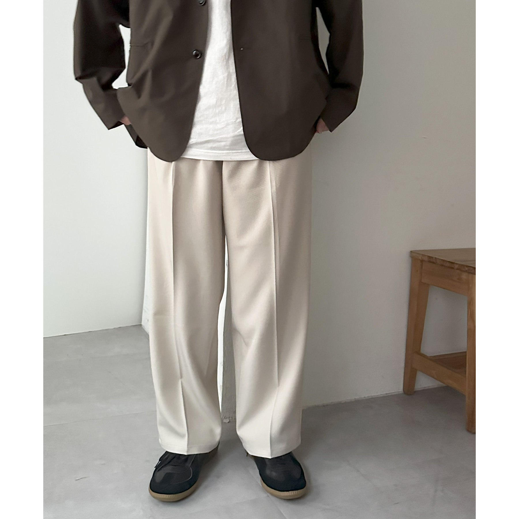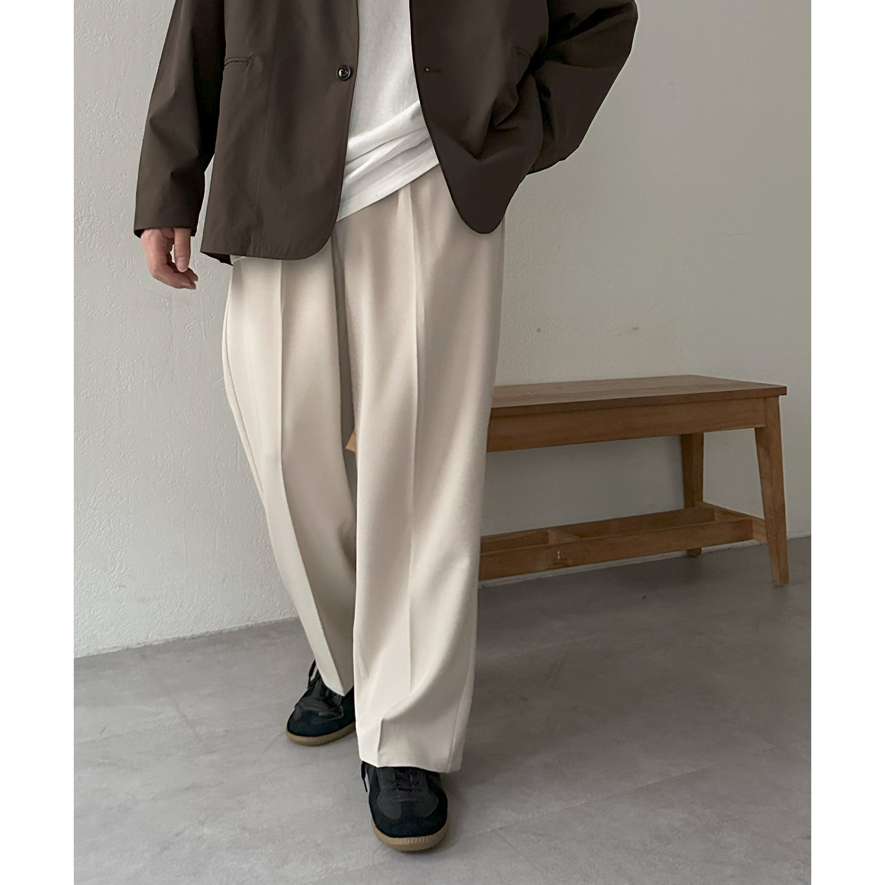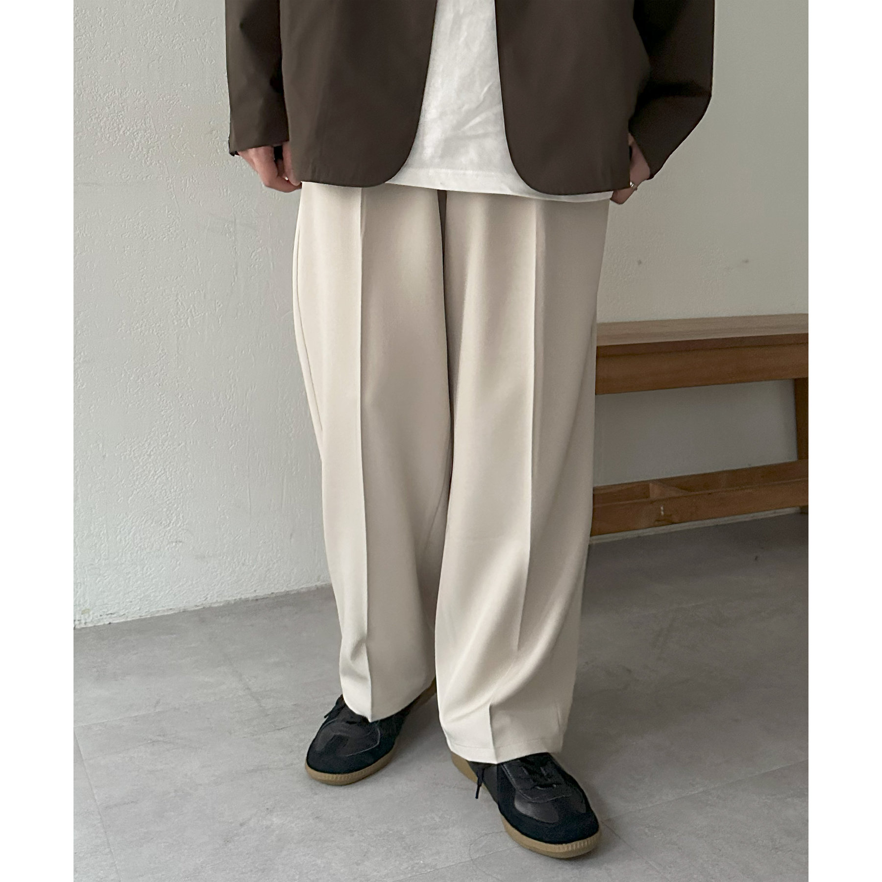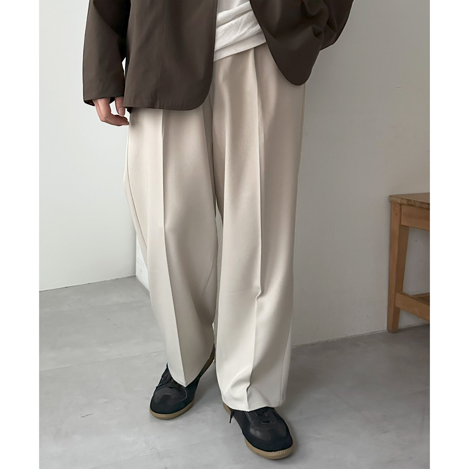 センタープレスを施したことでワイドシルエットの中にスッキリとした印象をプラスします!