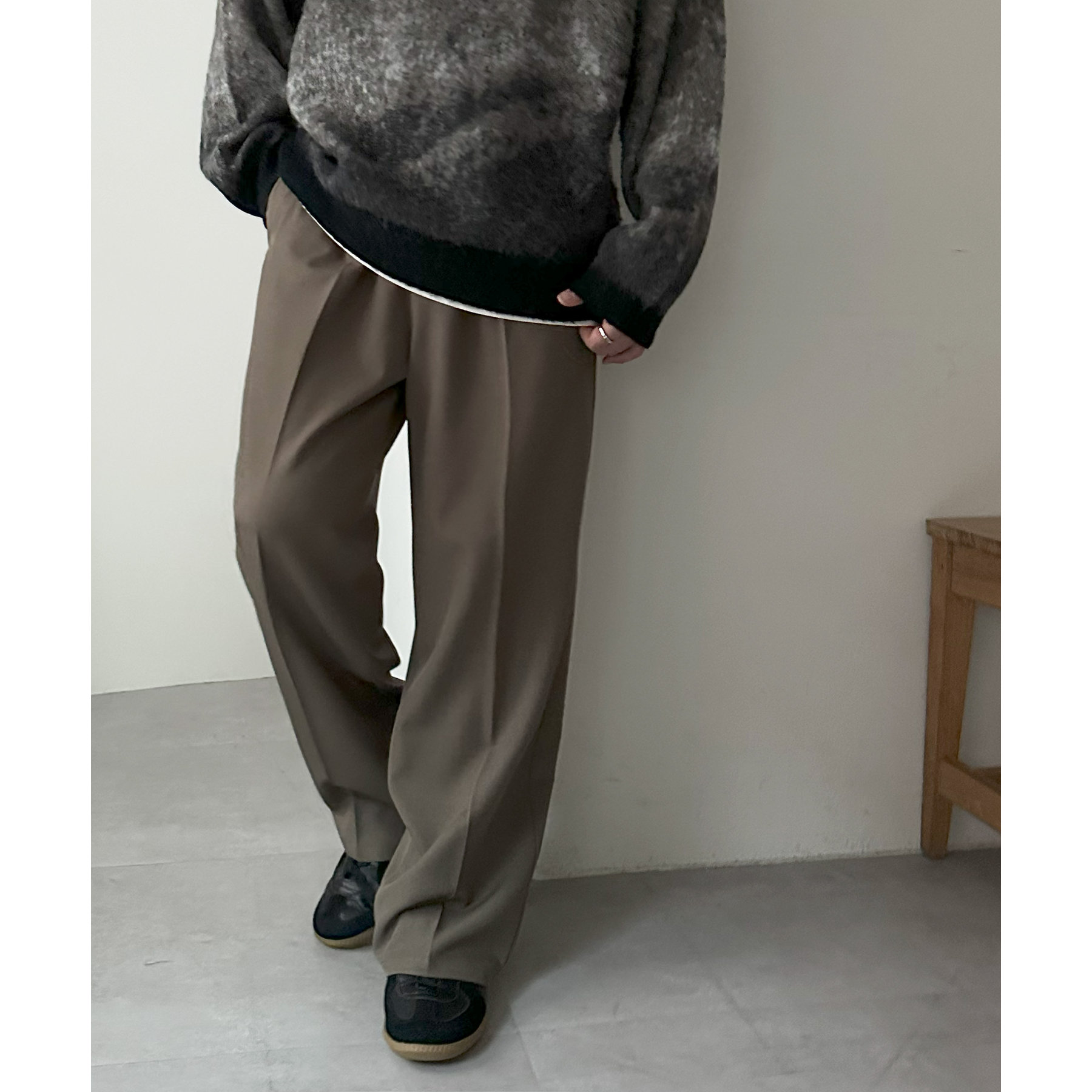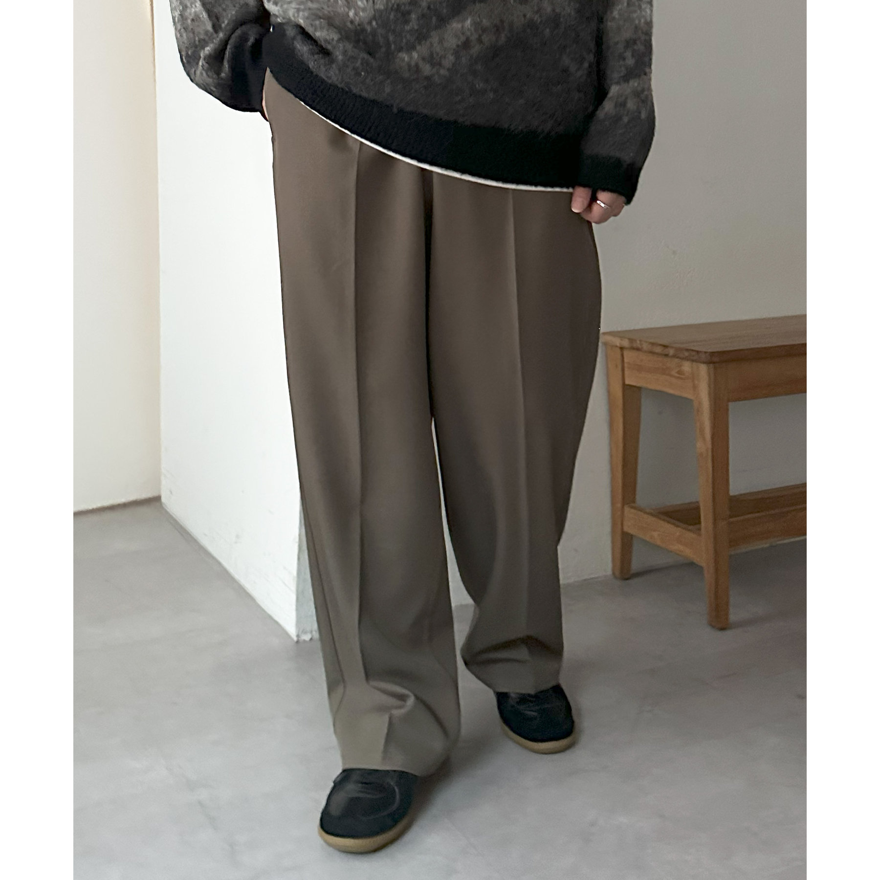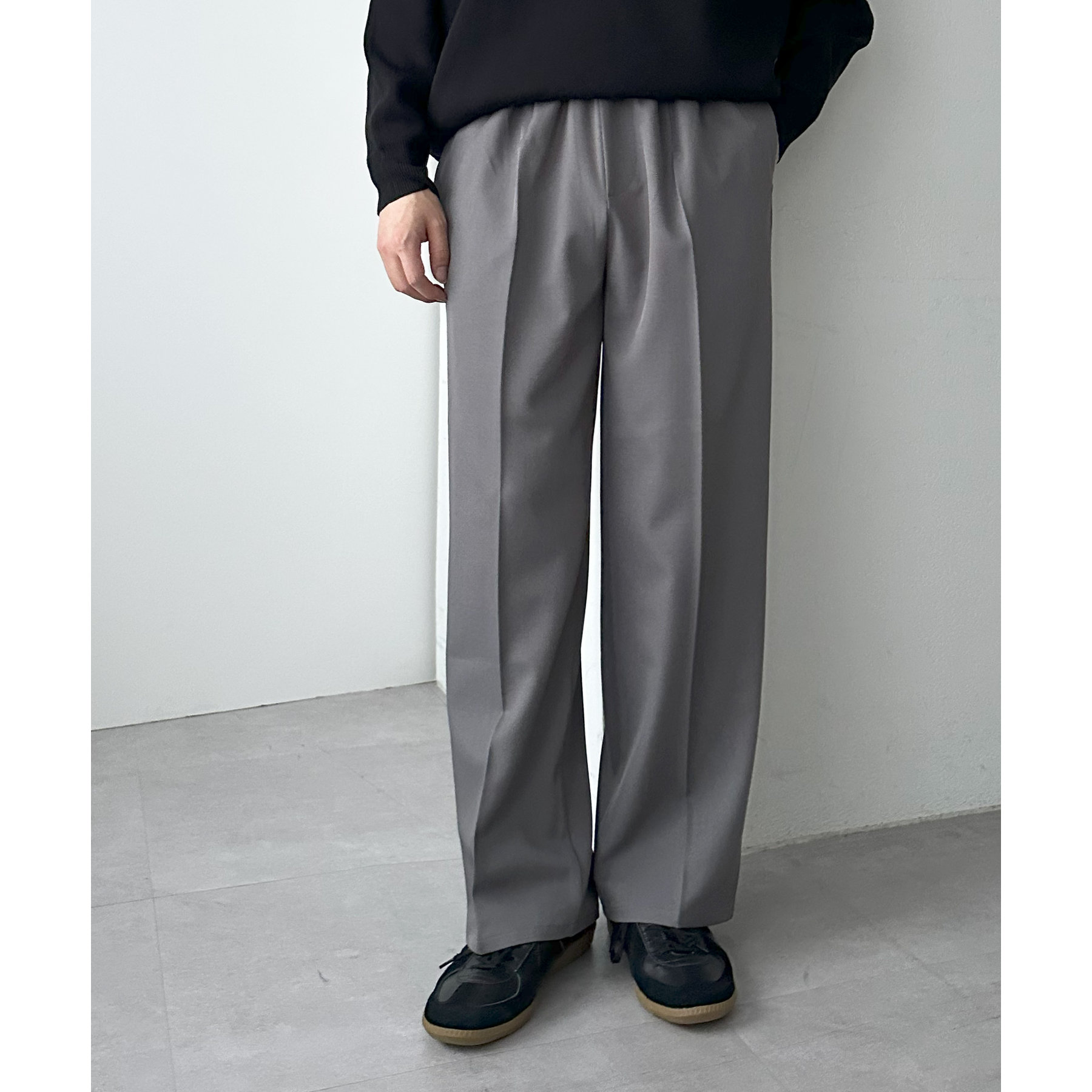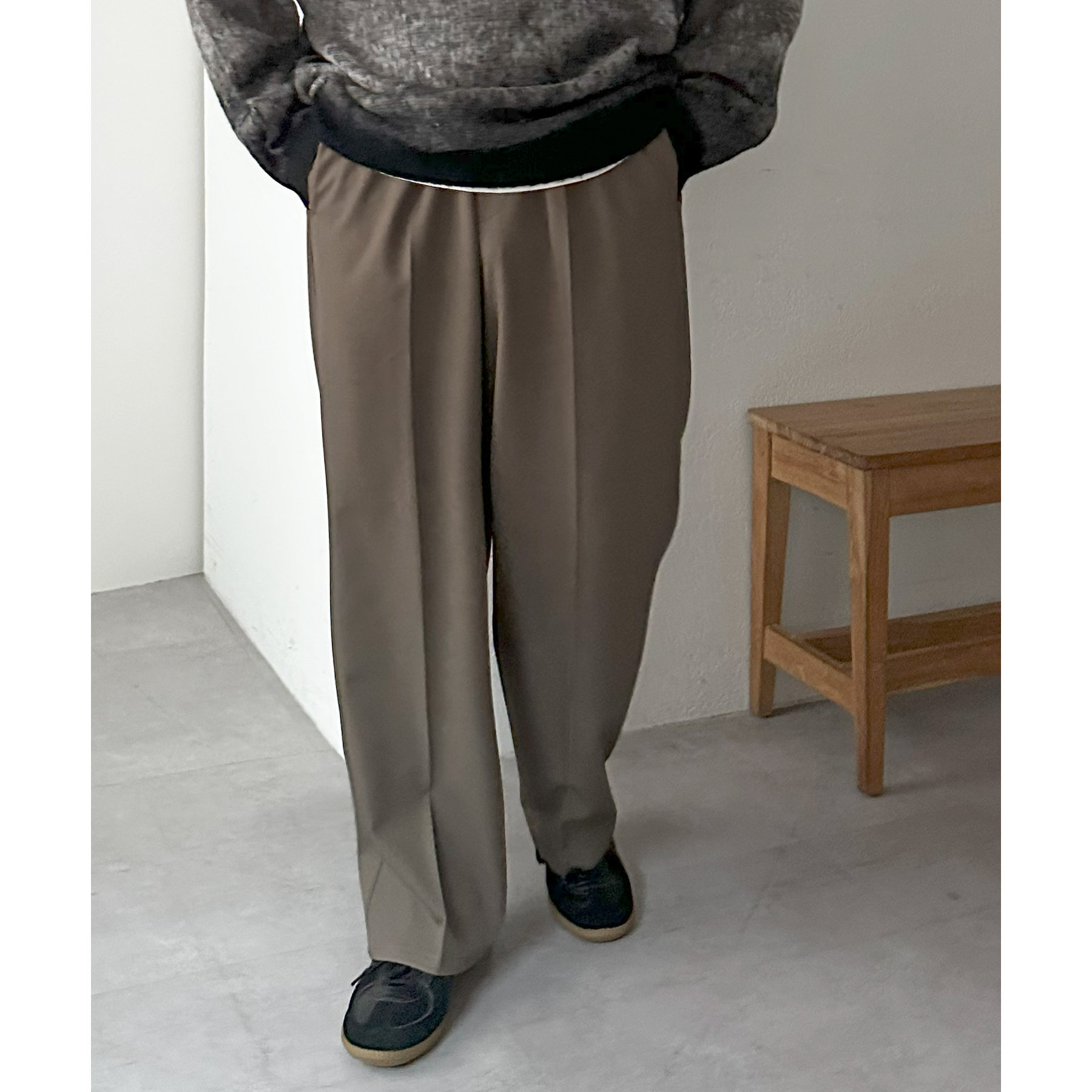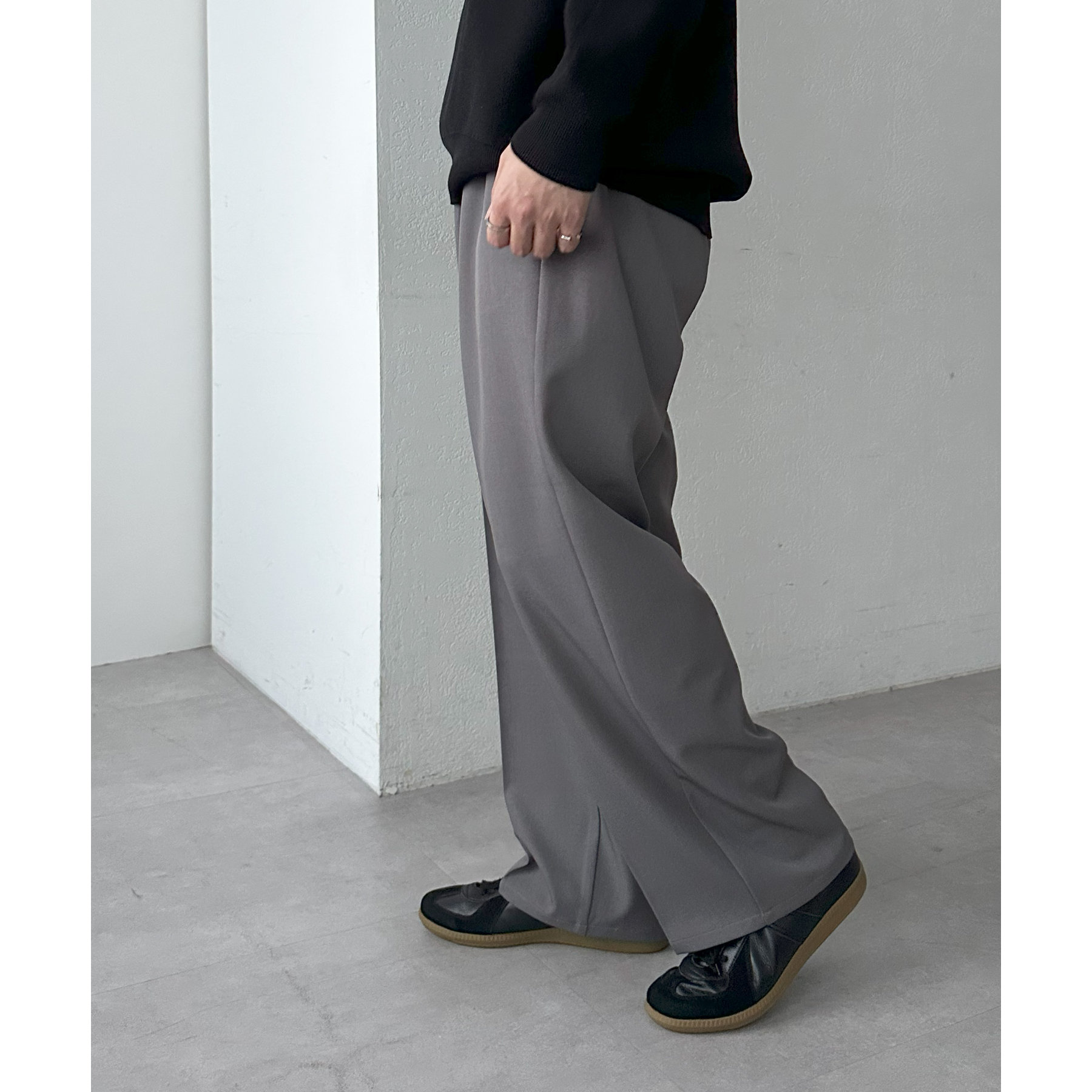 センタープレスを施したことでワイドシルエットの中にスッキリとした印象をプラスします!