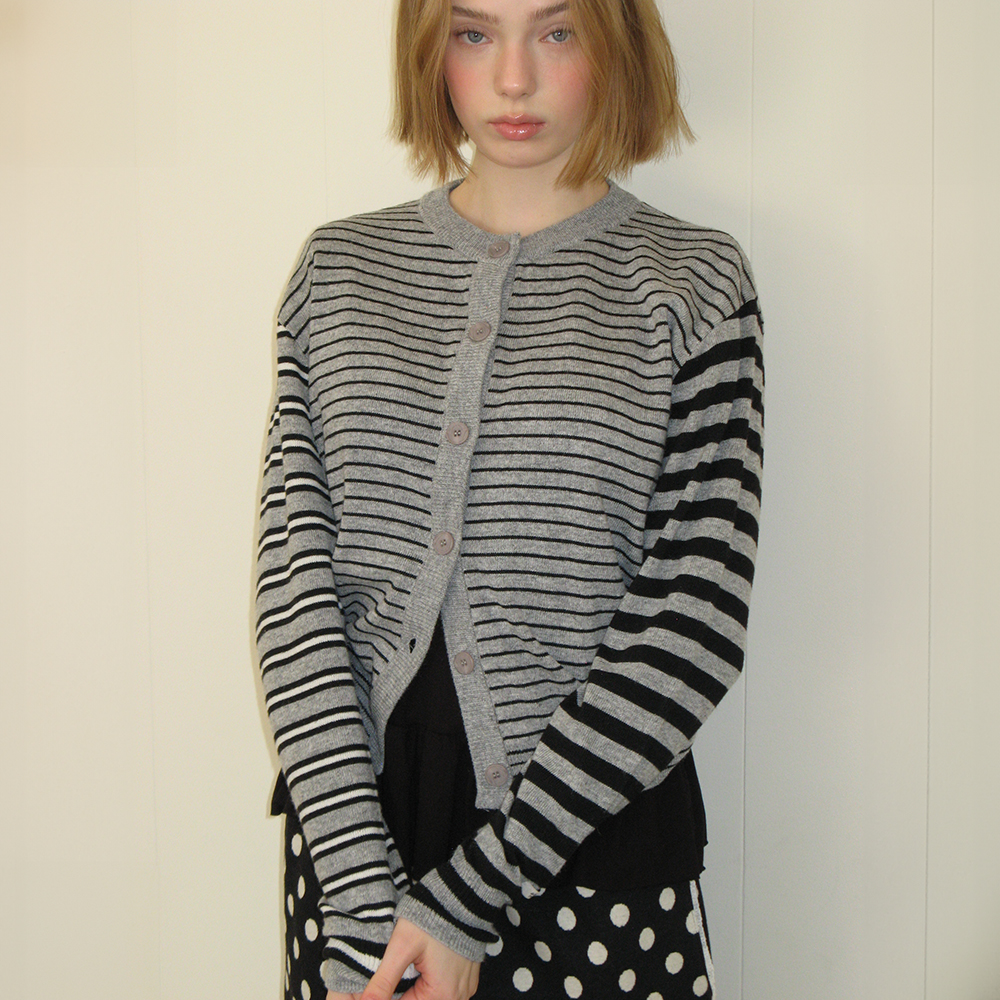 TRIPLE STRIPE HARMONY KNIT CARDIGAN BLACK GREY
