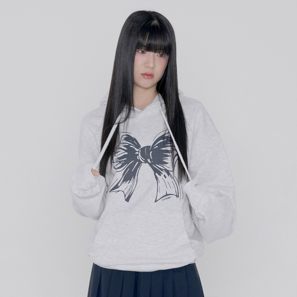 [K-POPアイドル着用] RIBBON LOGO HOODIE - LIGHT GRAY