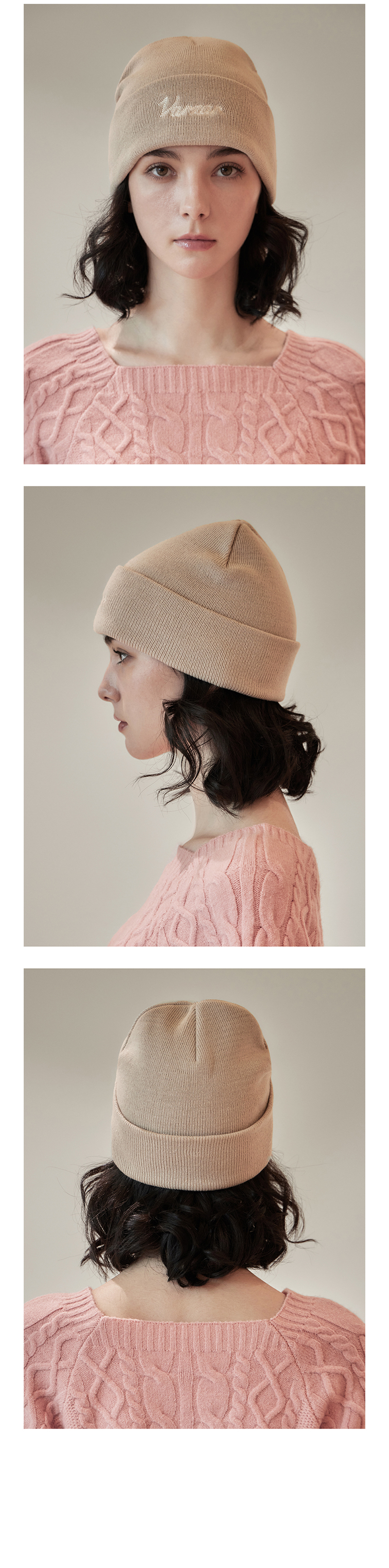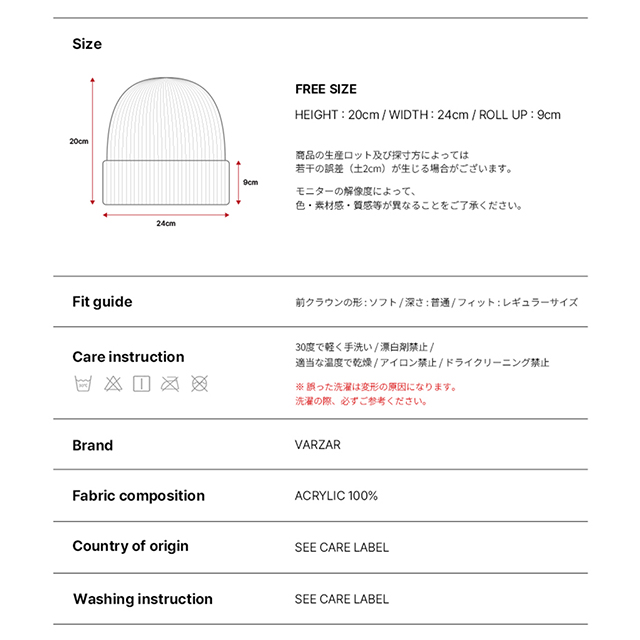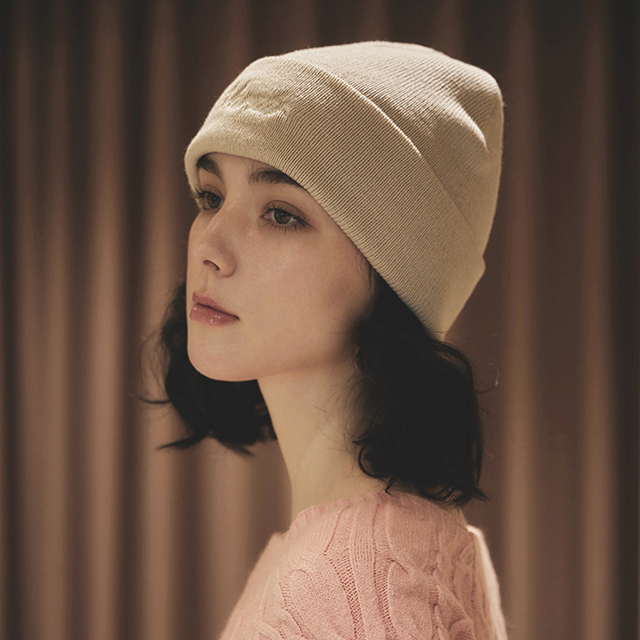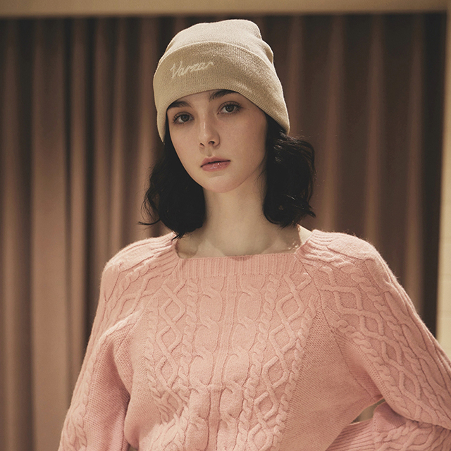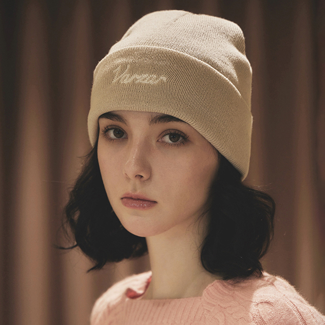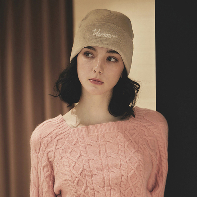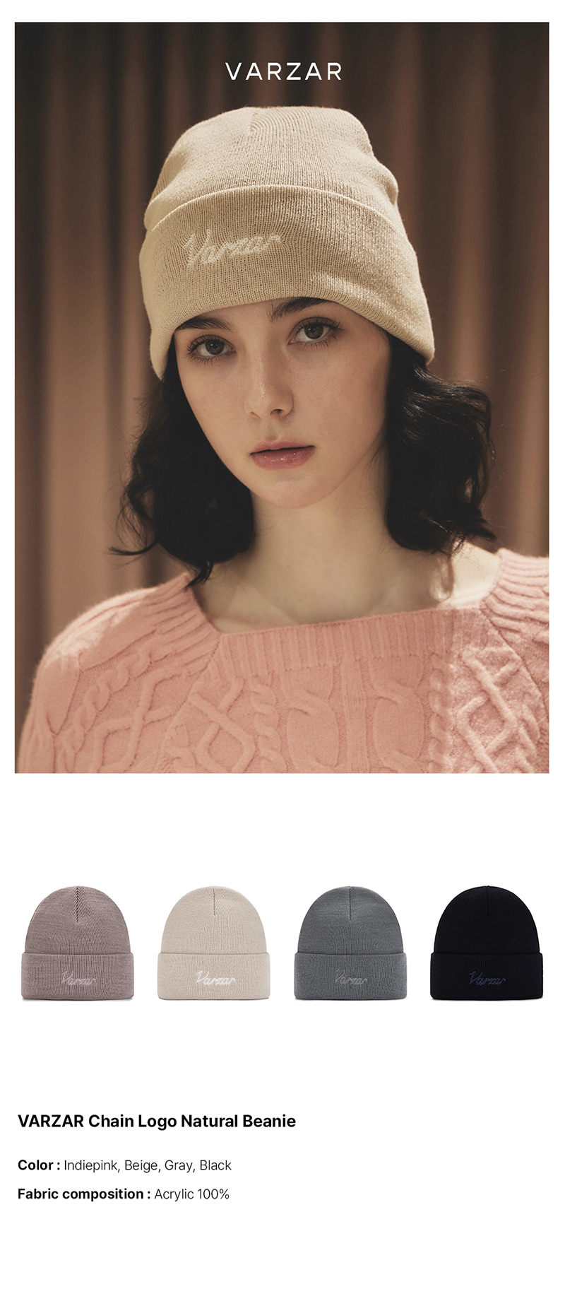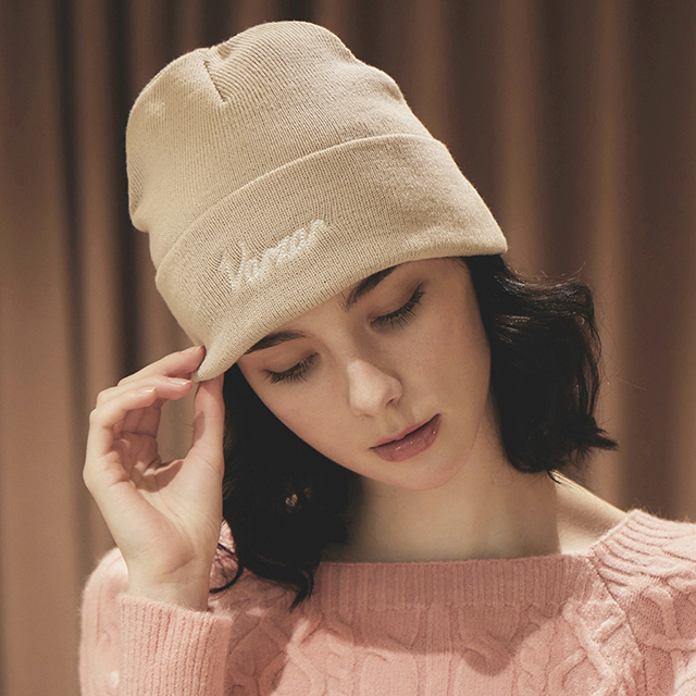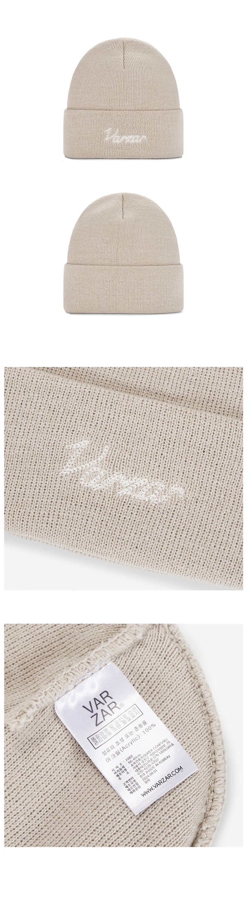 VARZAR Chain Logo Natural Beanie Beige