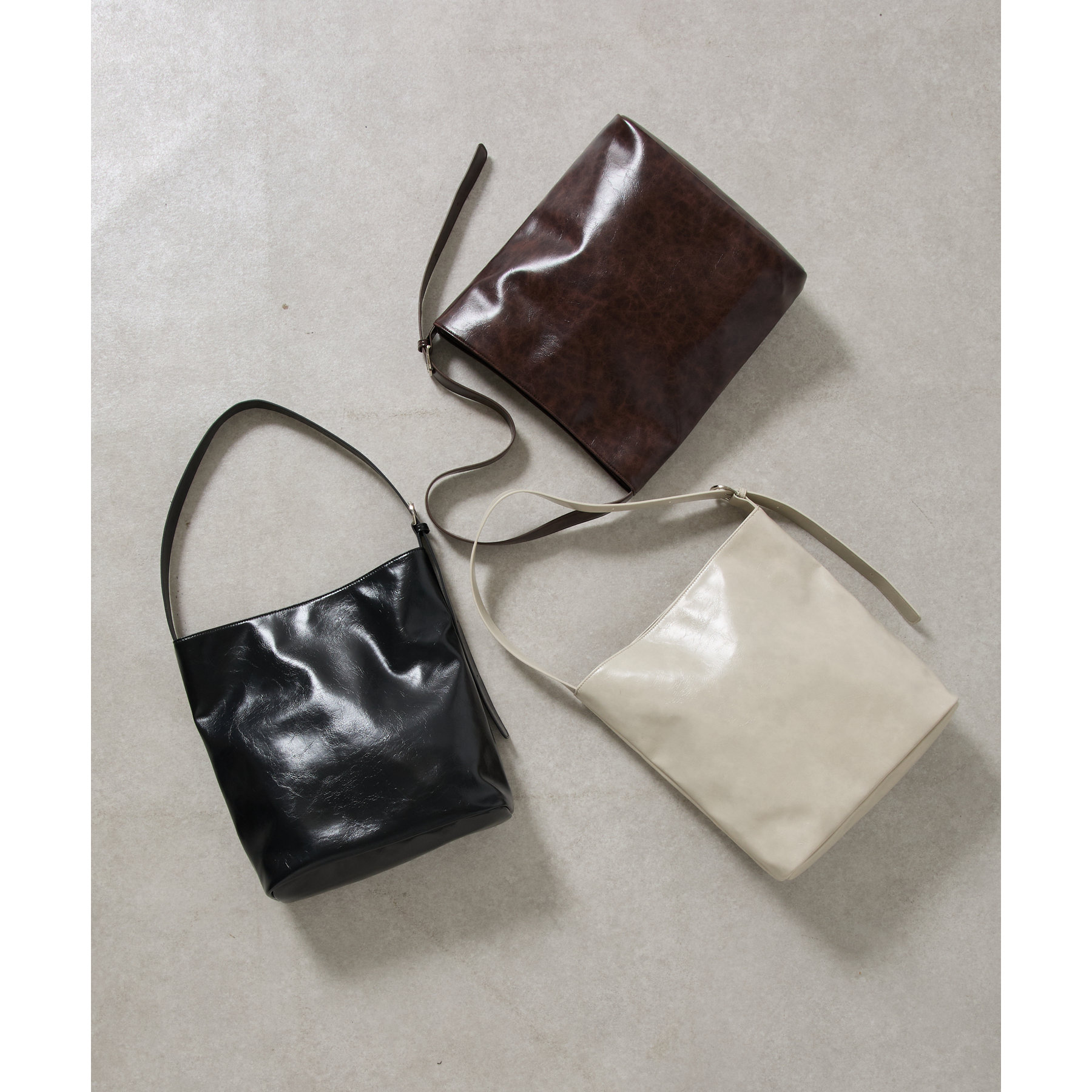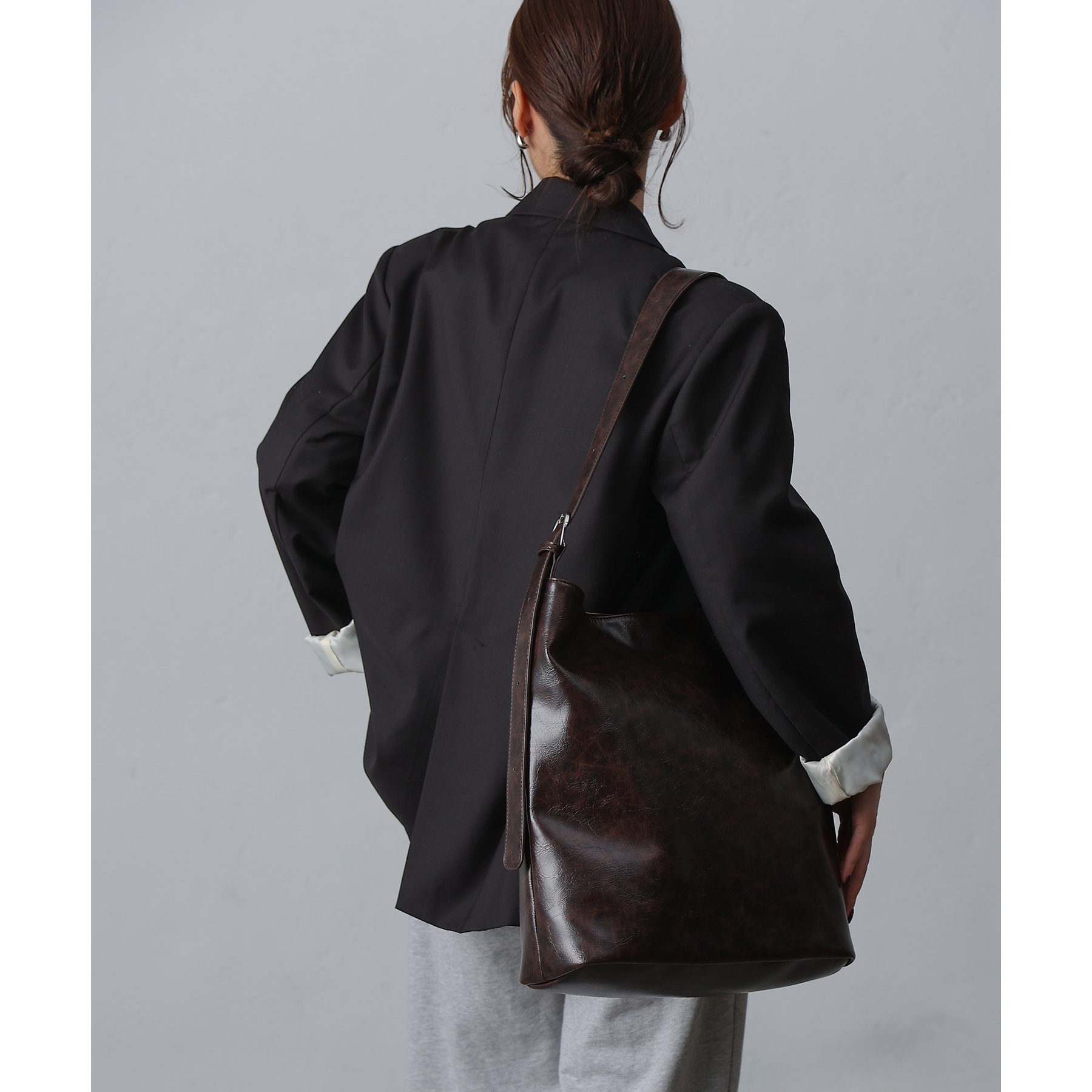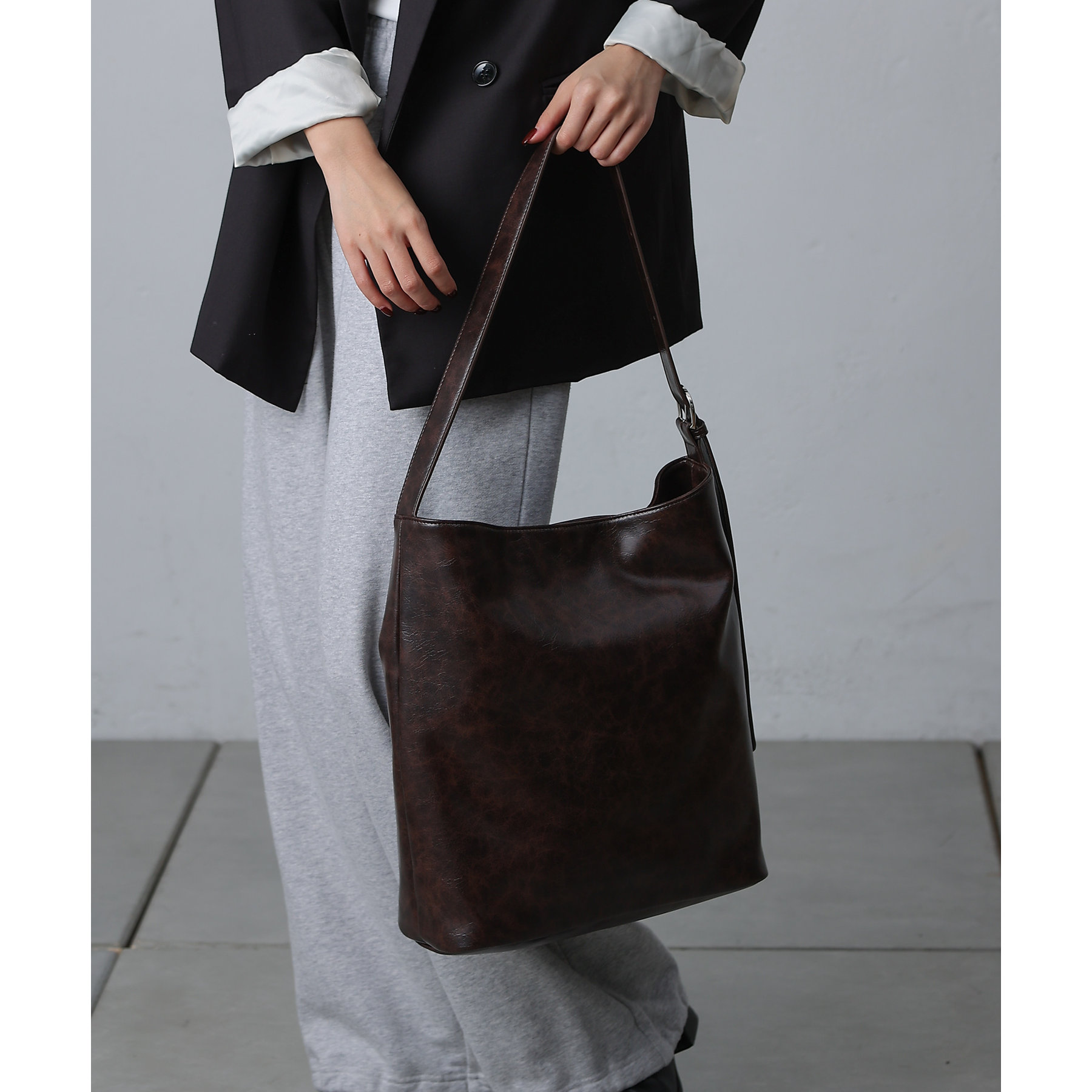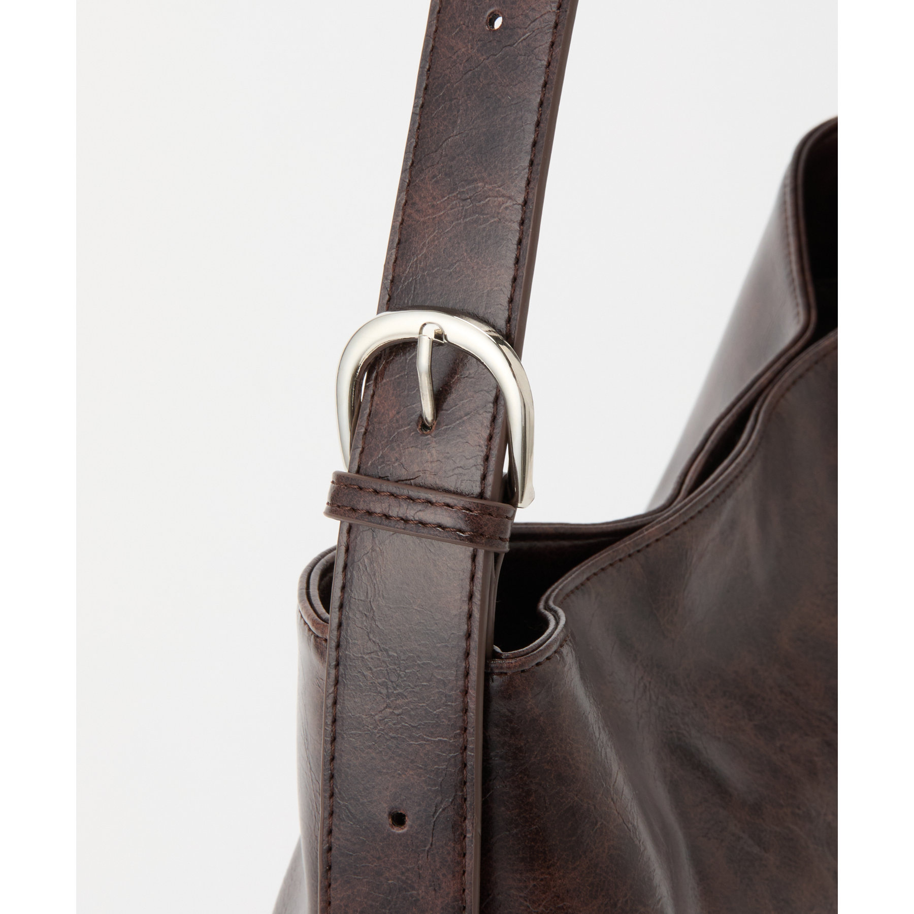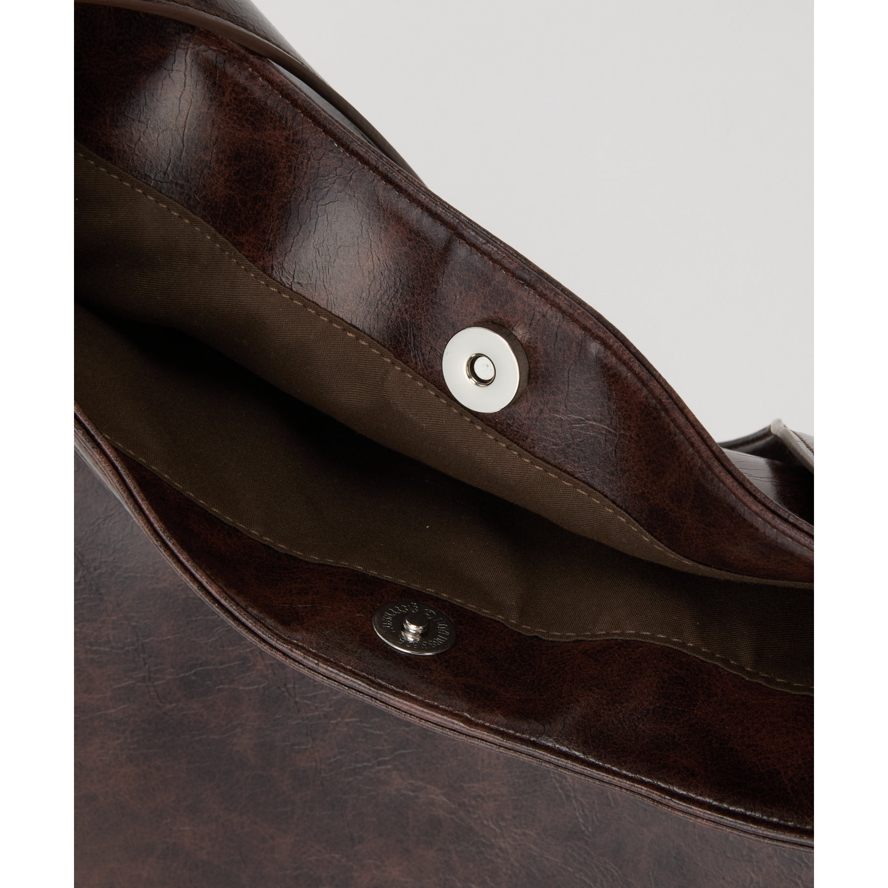 使い込んだようなヴィンテージ加工を施した合皮のショルダーバッグ