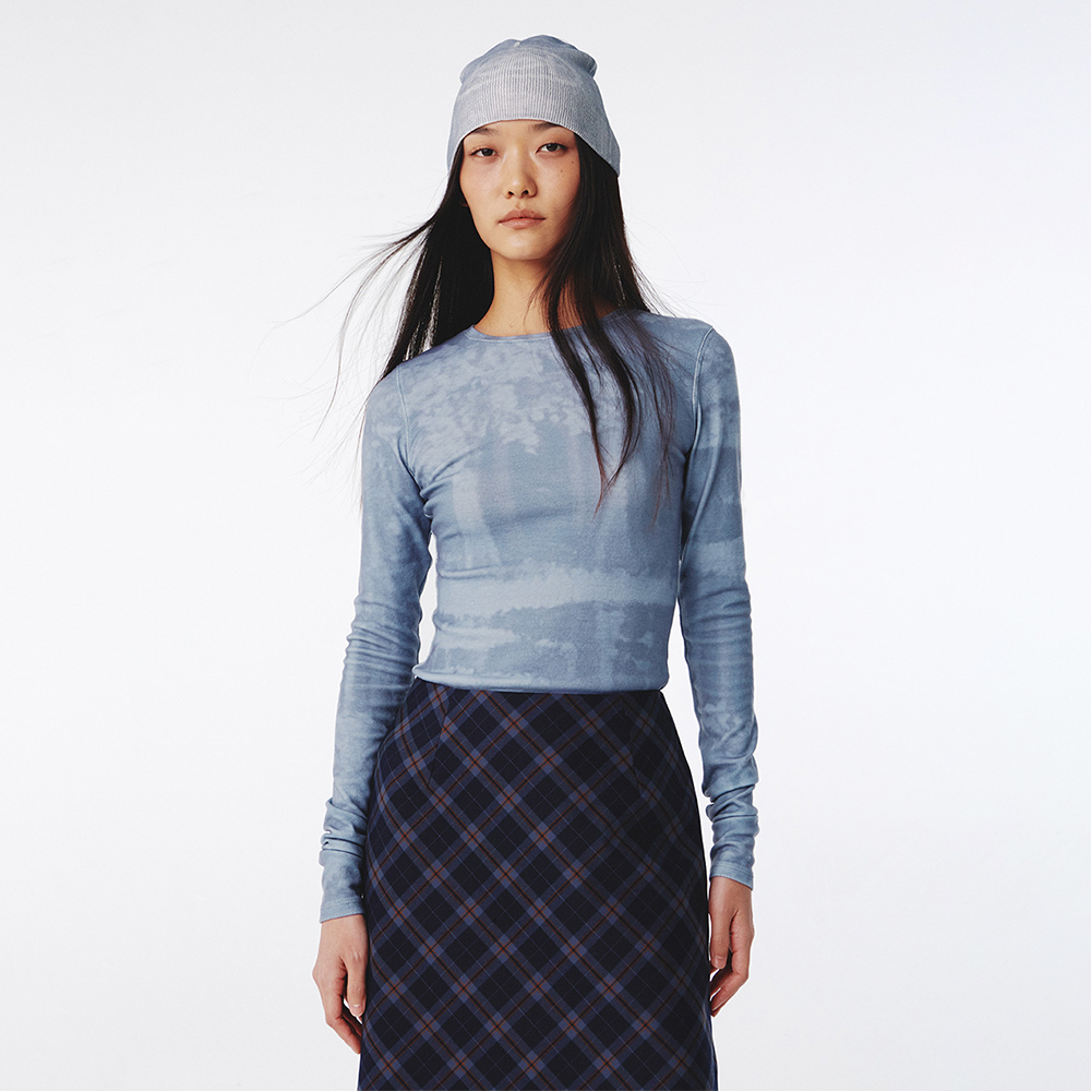 Print Jersey Top Dusty Blue