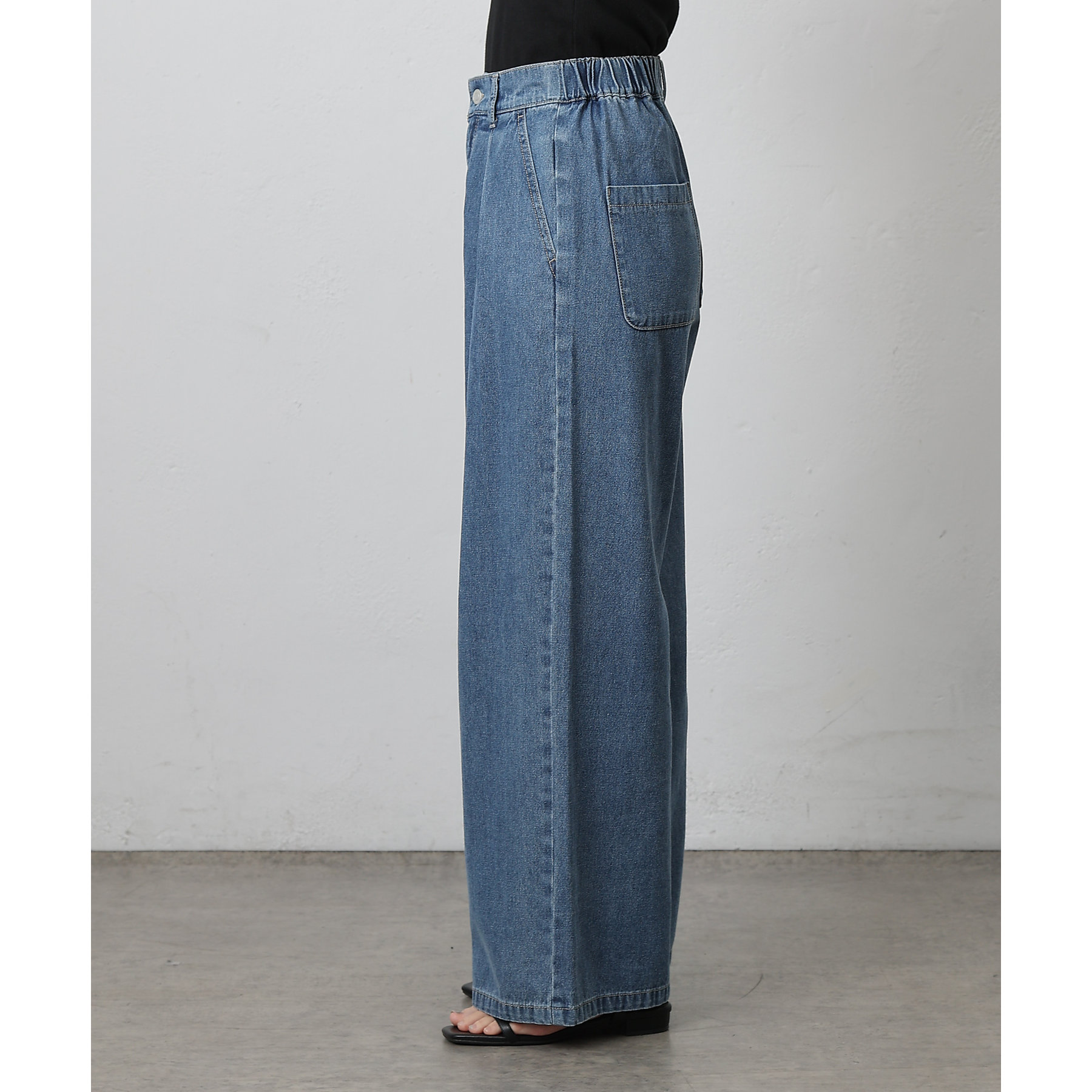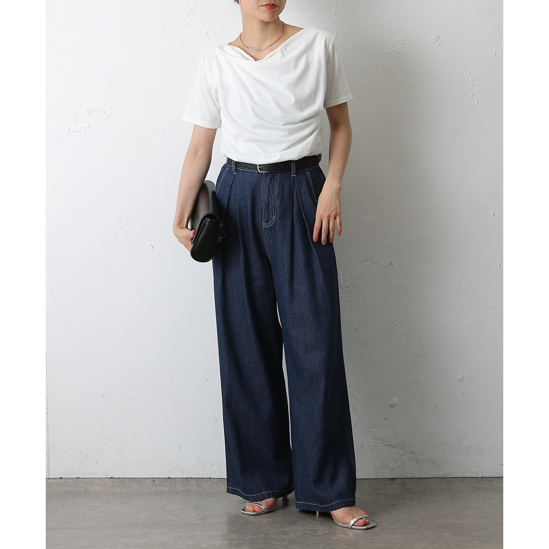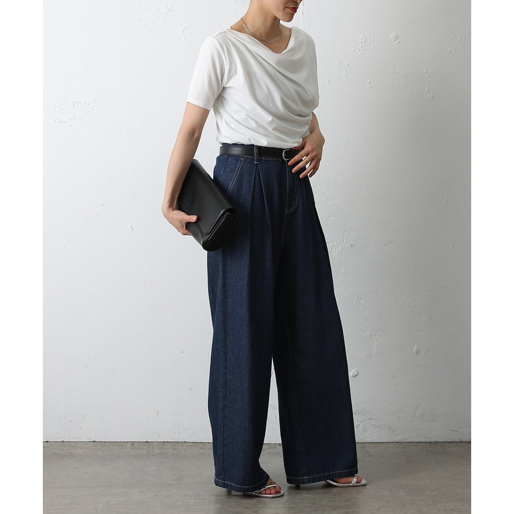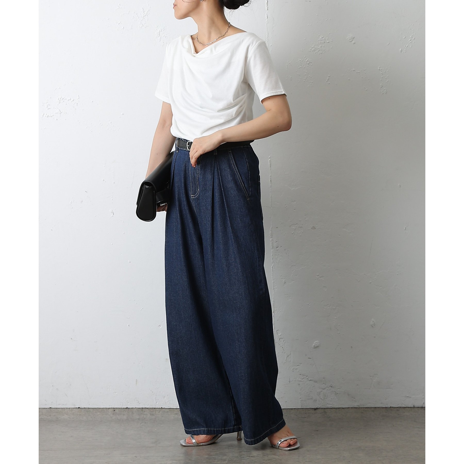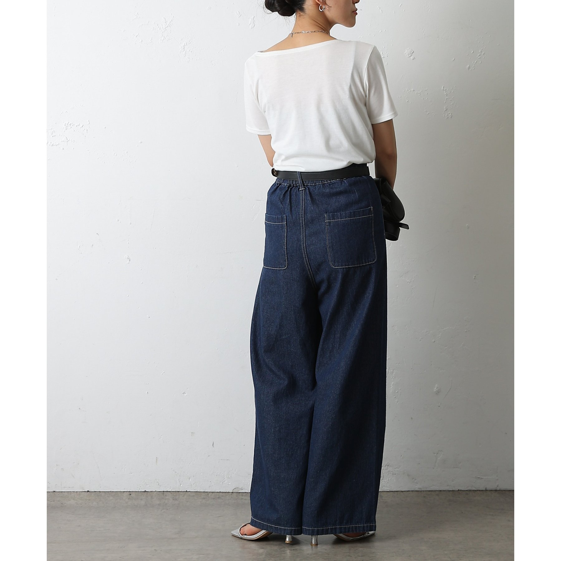 ウエスト周りはすっきりとさせつつも、フロントにボックスタックを施すことで程よいワイド感とスタイルアップを叶えます。