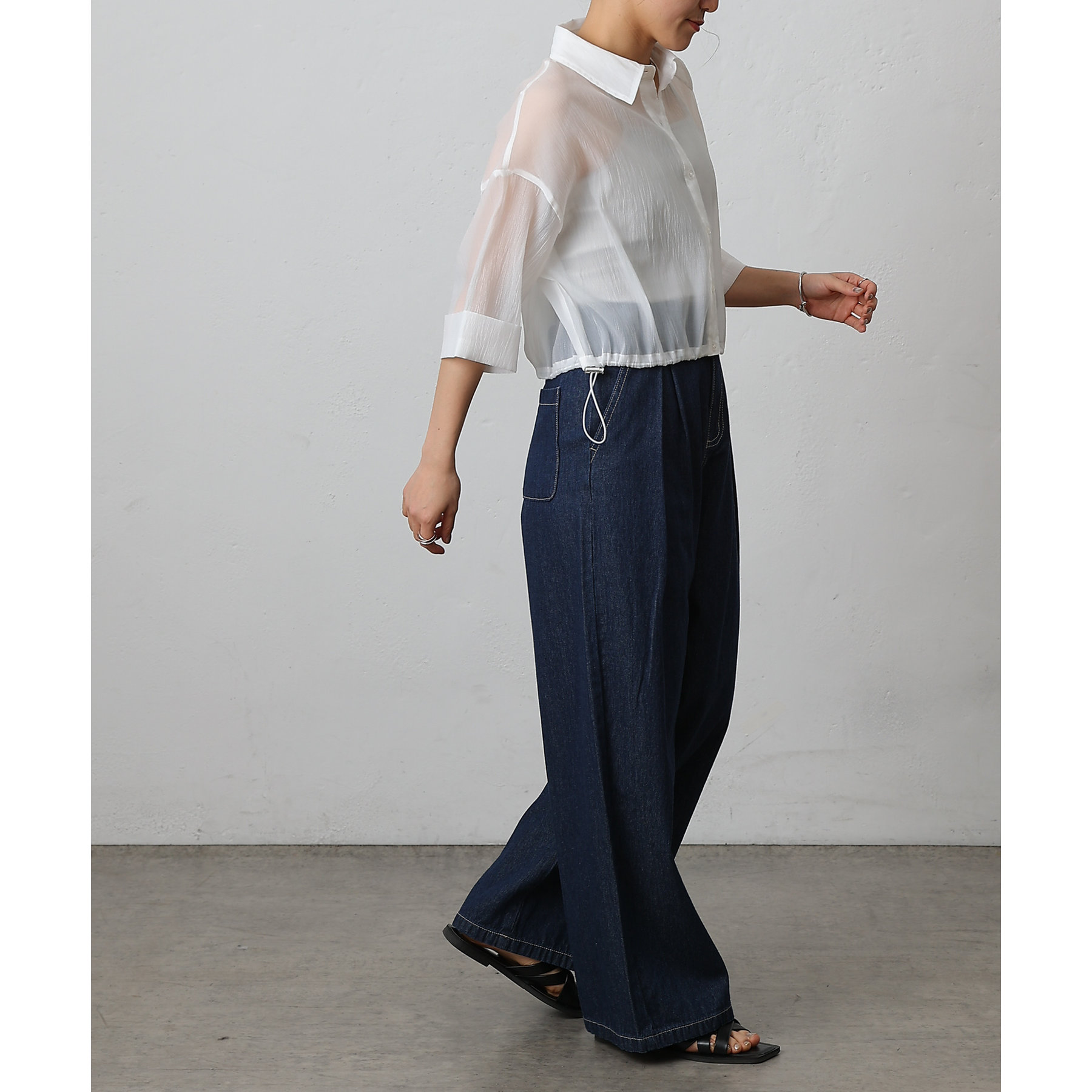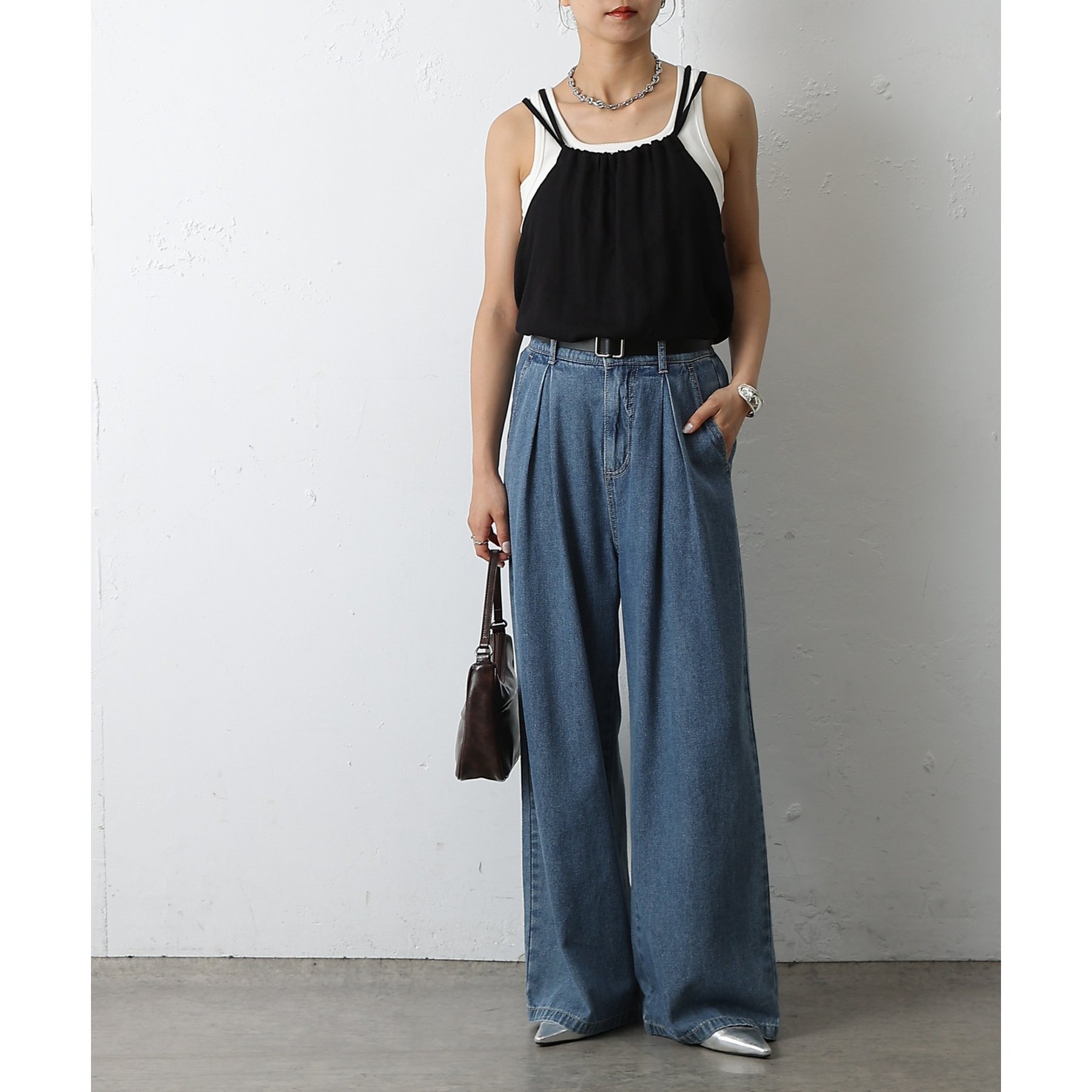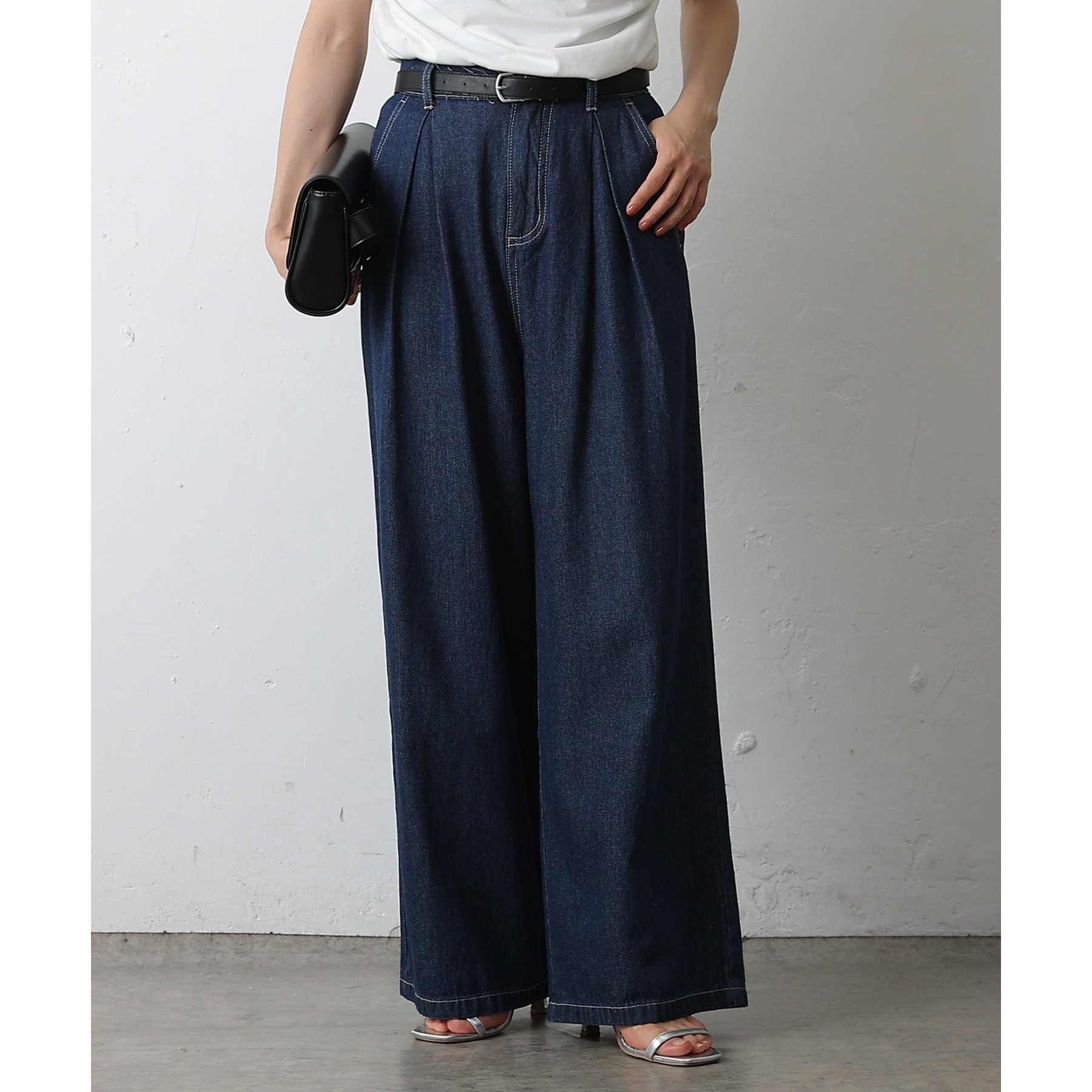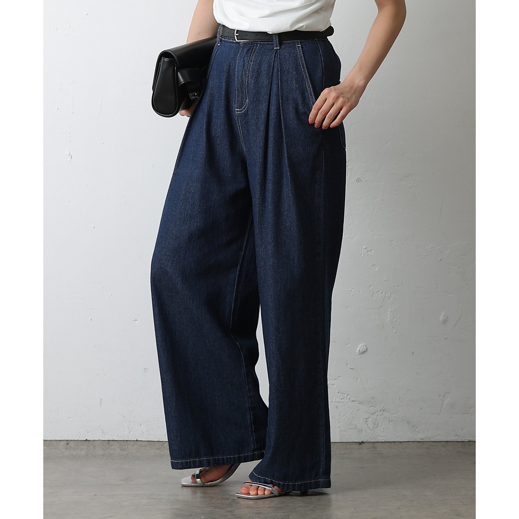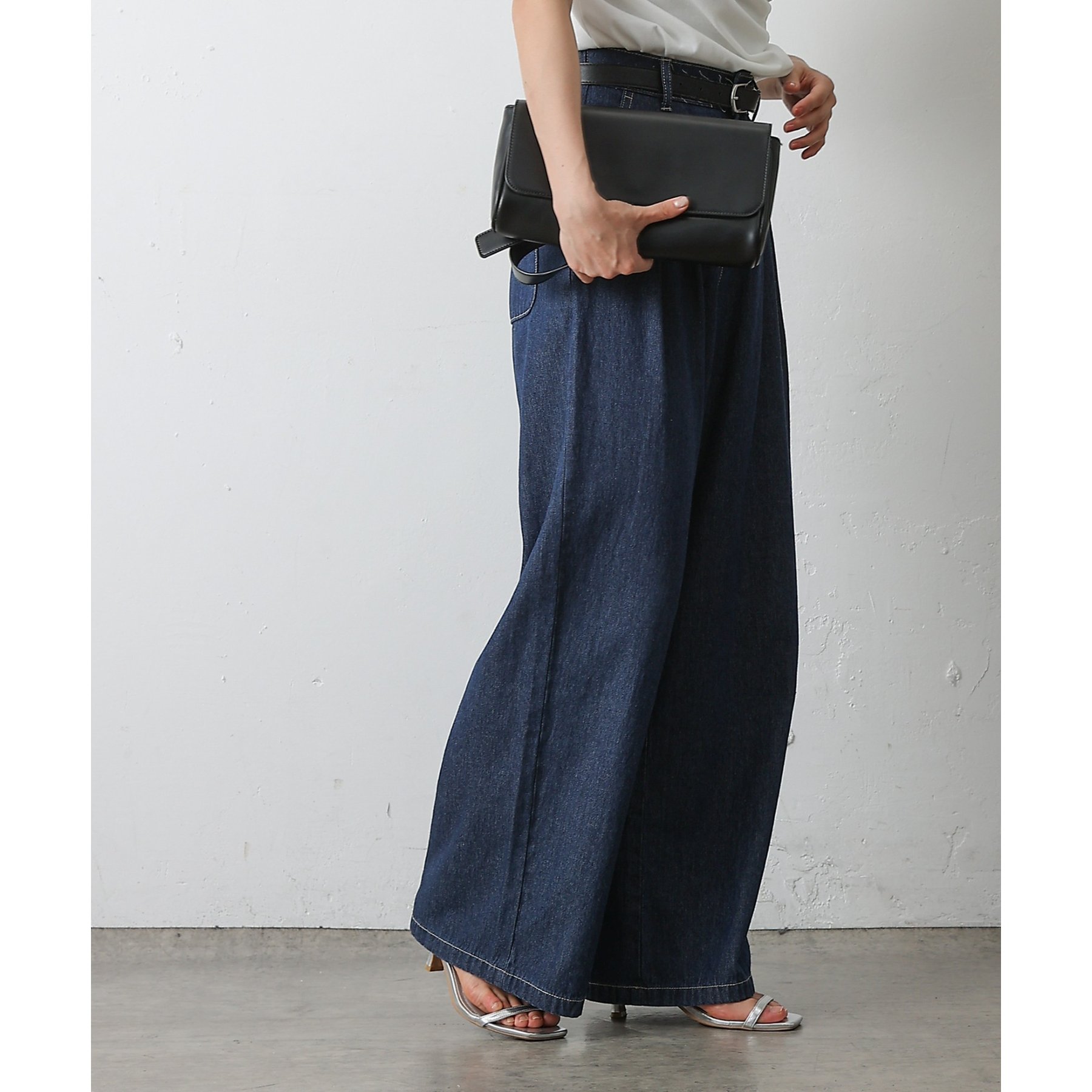 ウエスト周りはすっきりとさせつつも、フロントにボックスタックを施すことで程よいワイド感とスタイルアップを叶えます。