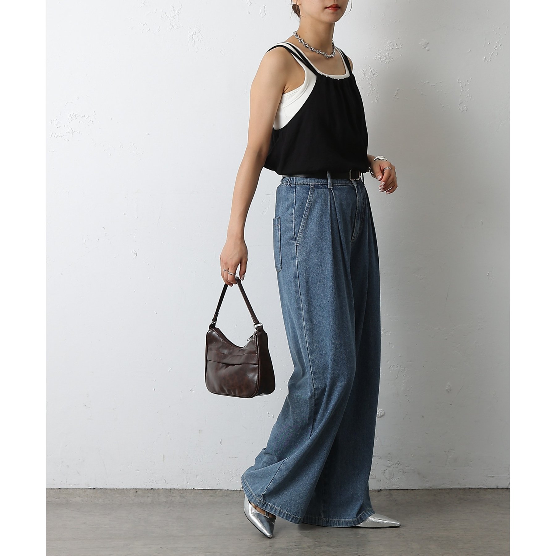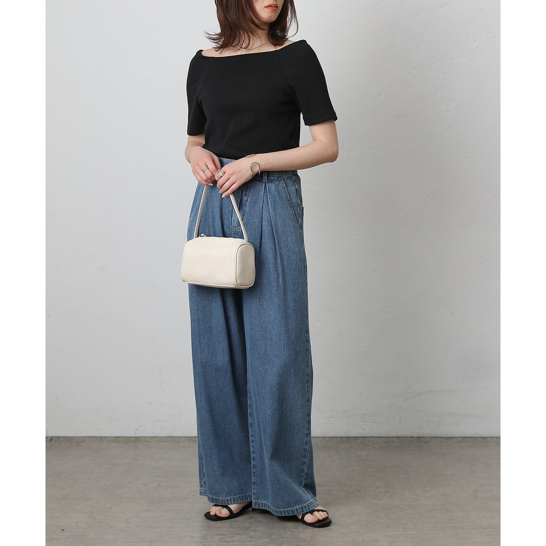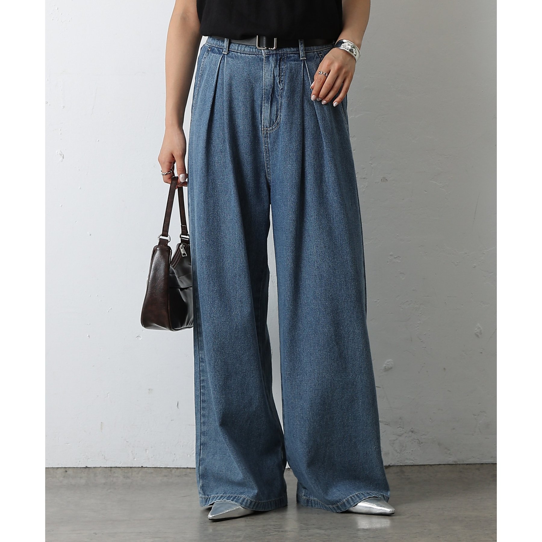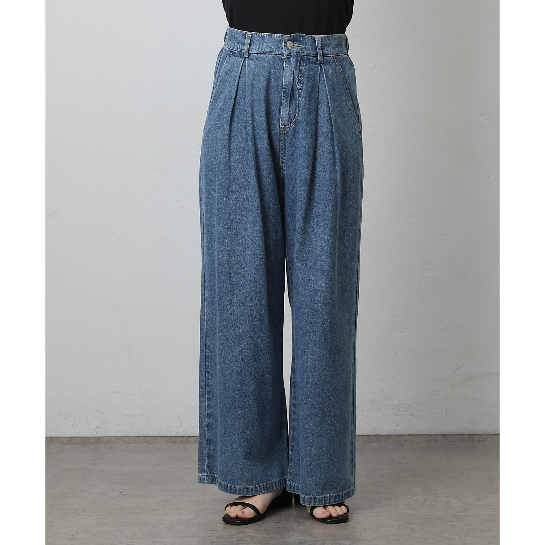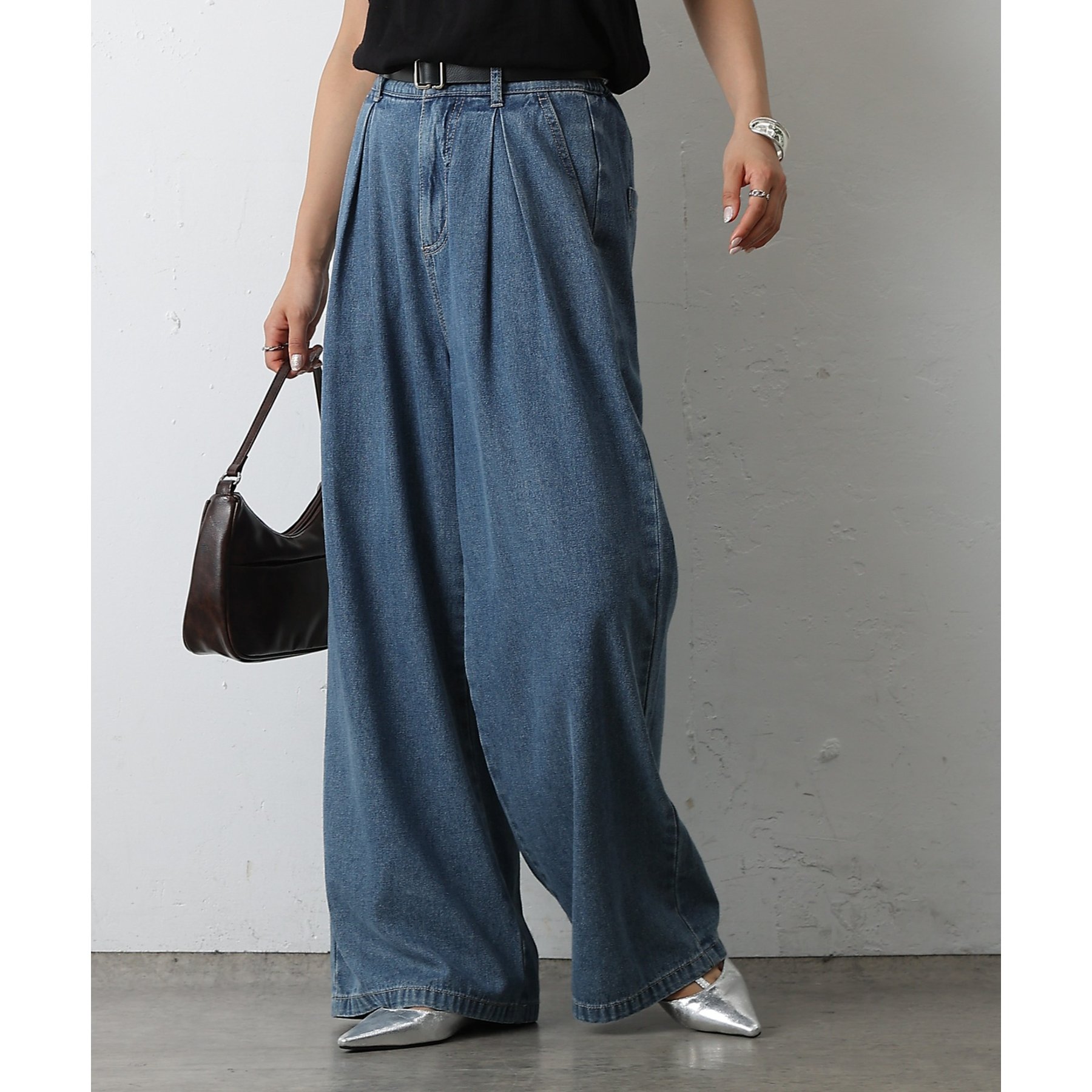 ウエスト周りはすっきりとさせつつも、フロントにボックスタックを施すことで程よいワイド感とスタイルアップを叶えます。