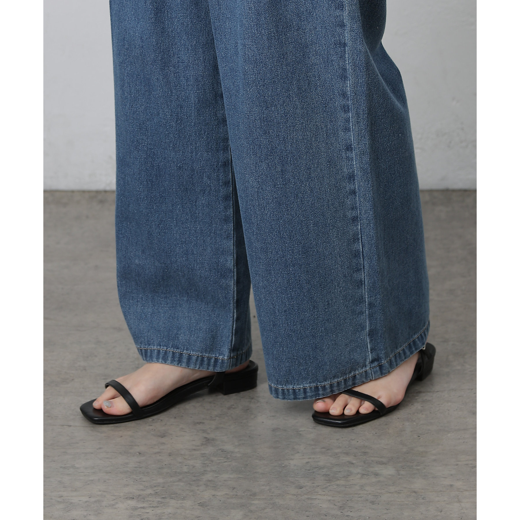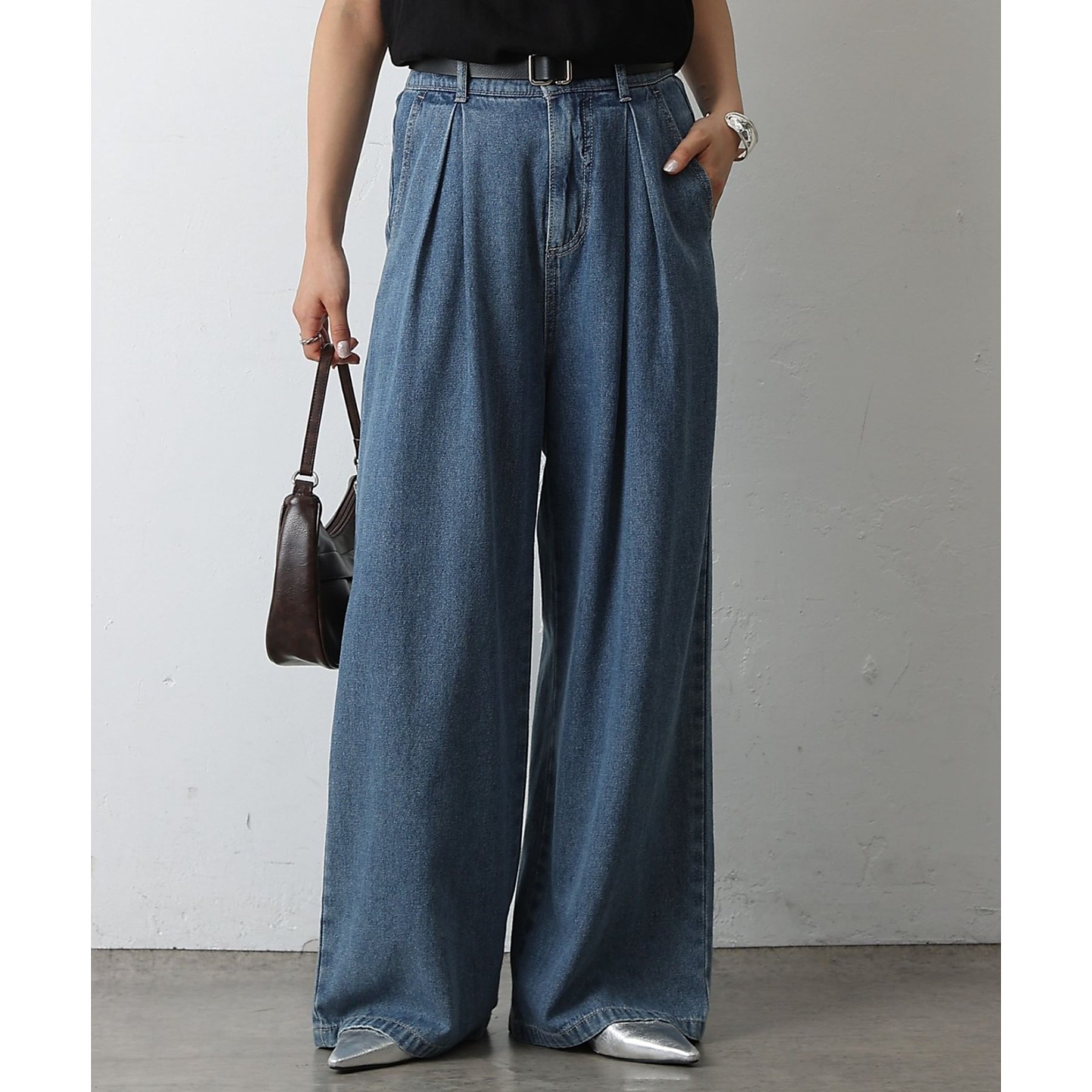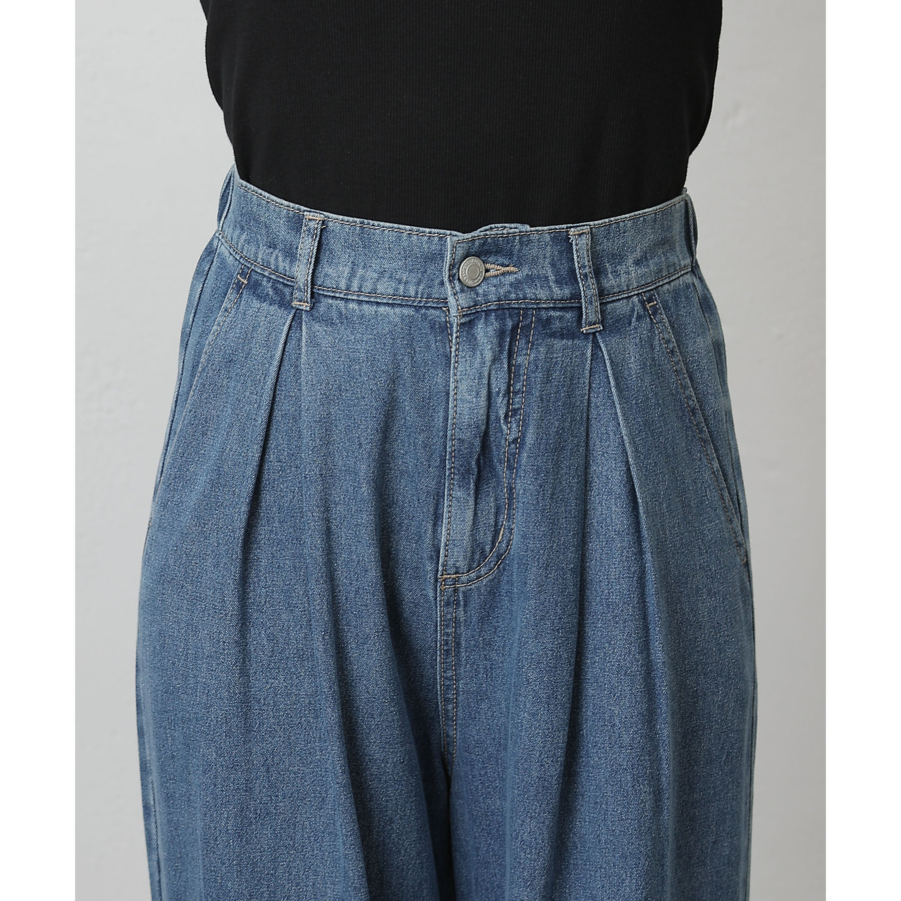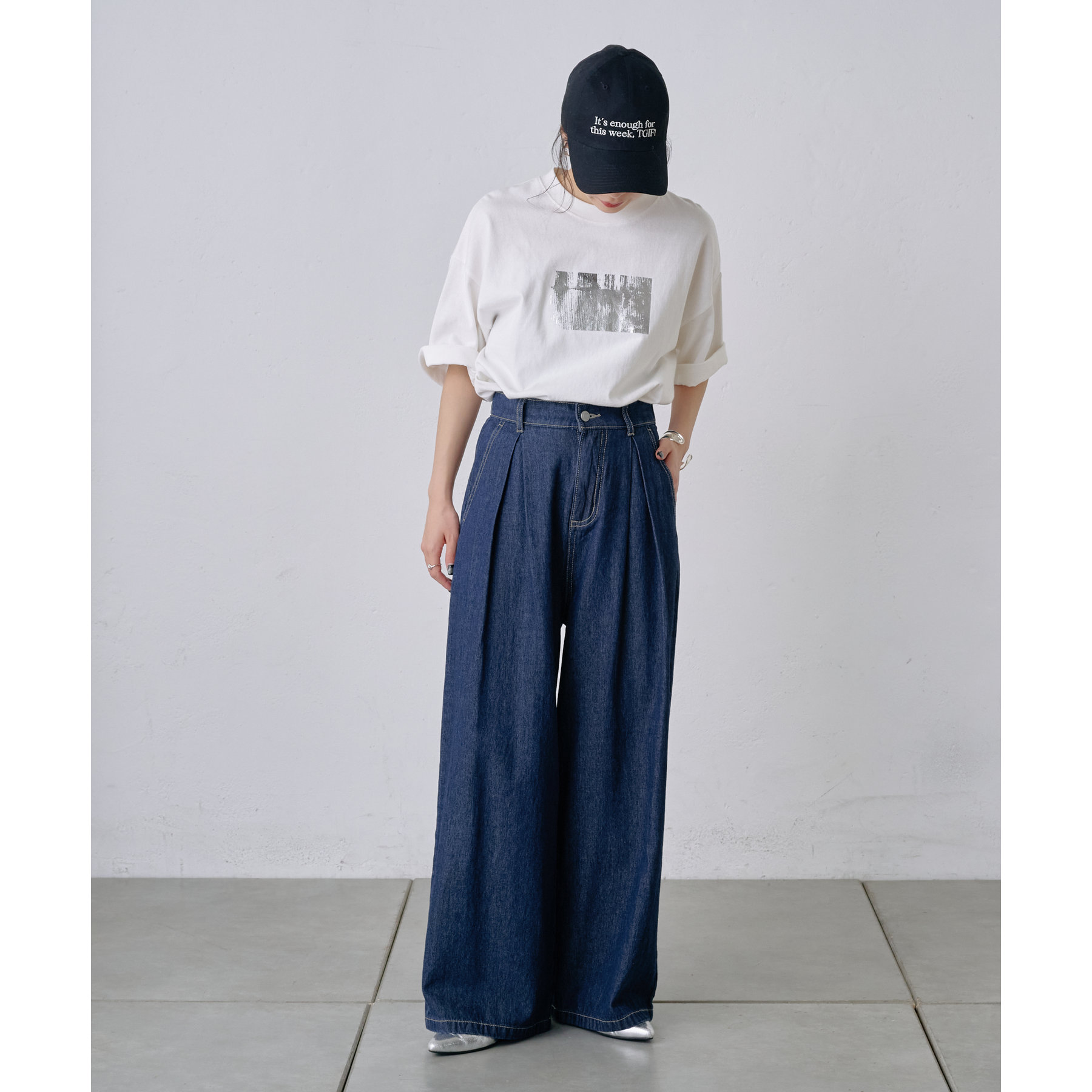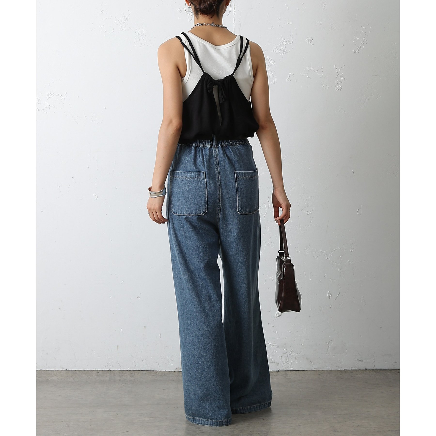 ウエスト周りはすっきりとさせつつも、フロントにボックスタックを施すことで程よいワイド感とスタイルアップを叶えます。