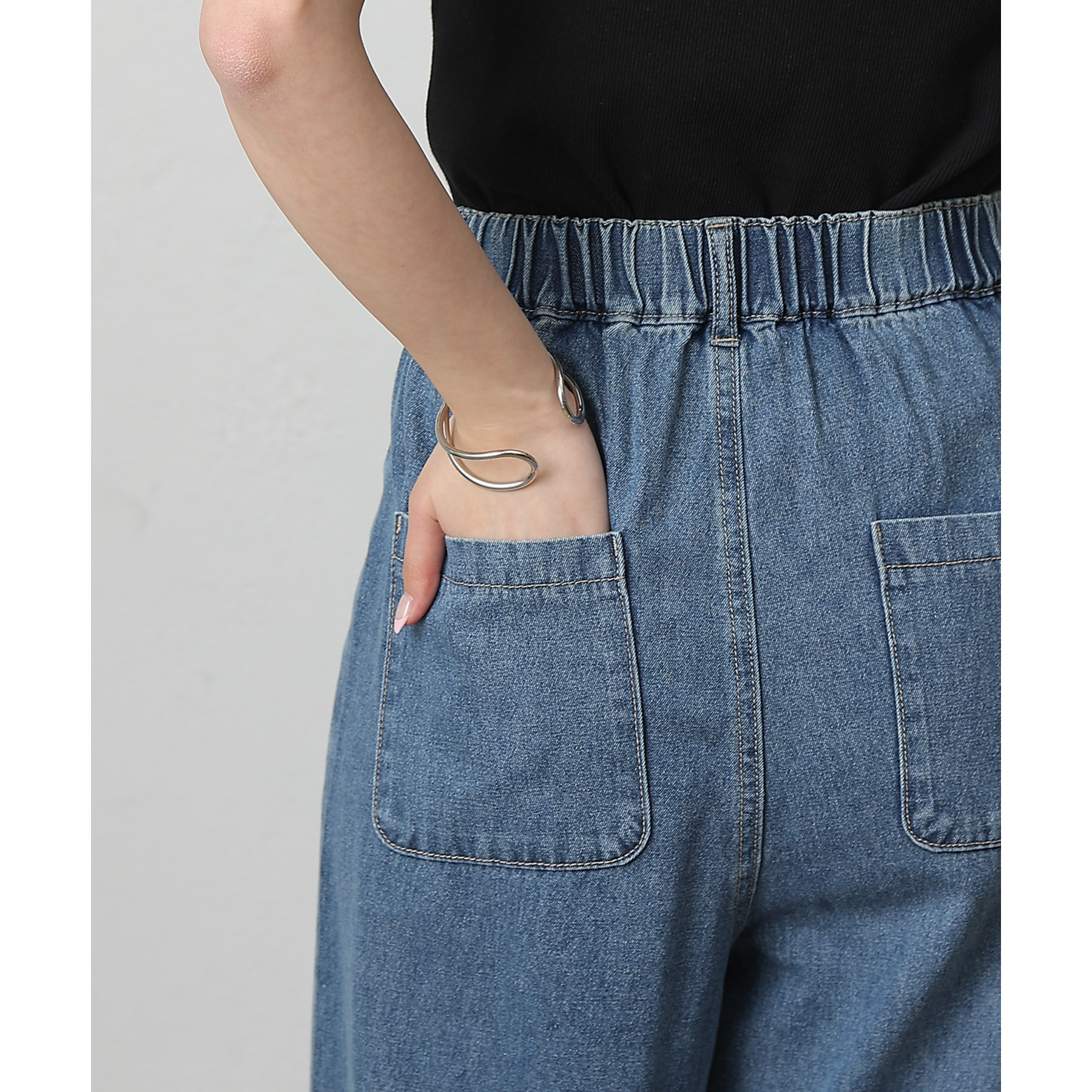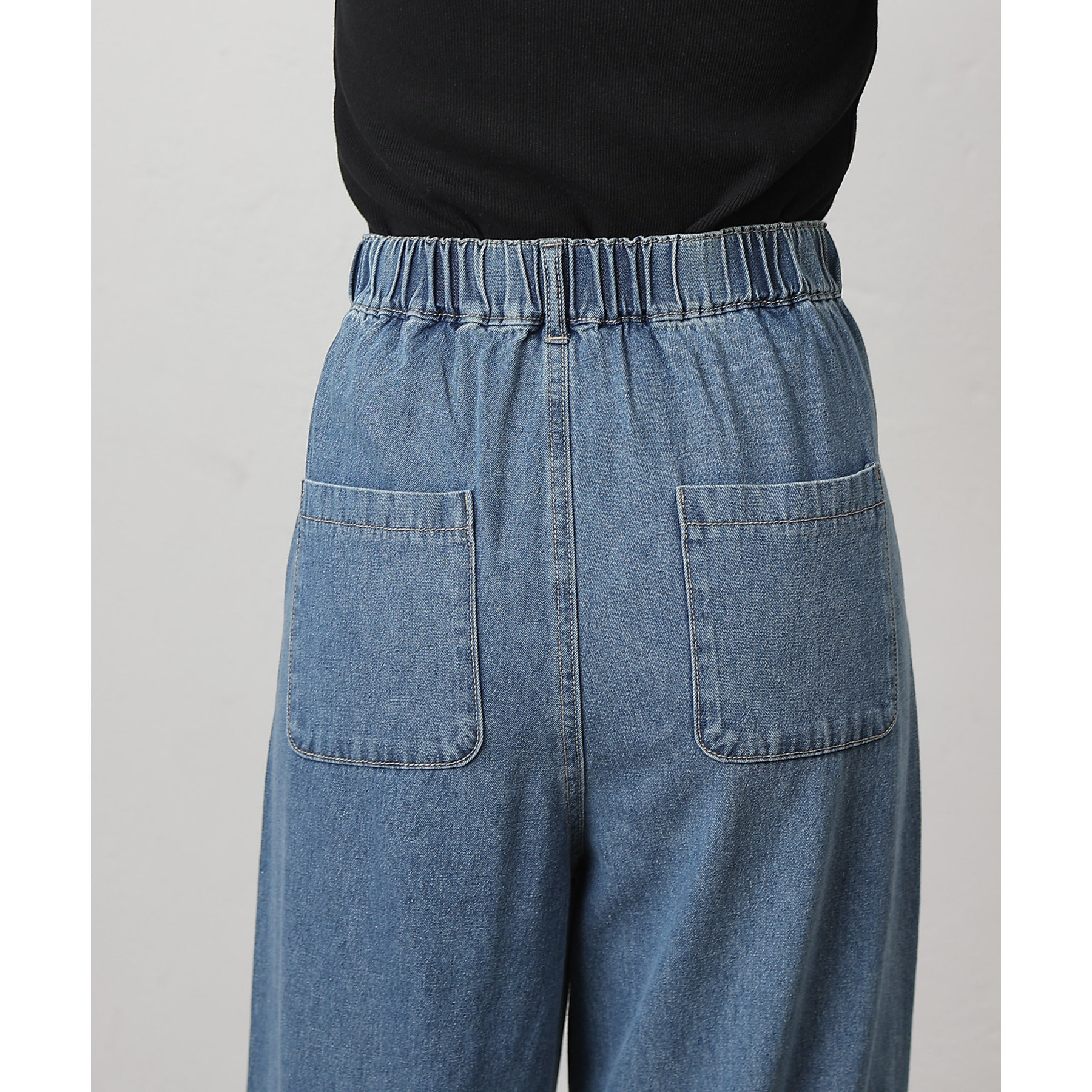 ゴワつかずほどよい生地感の8ozのデニムを採用し、後ろのウエストはゴム仕様なので穿きやすさも抜群です。