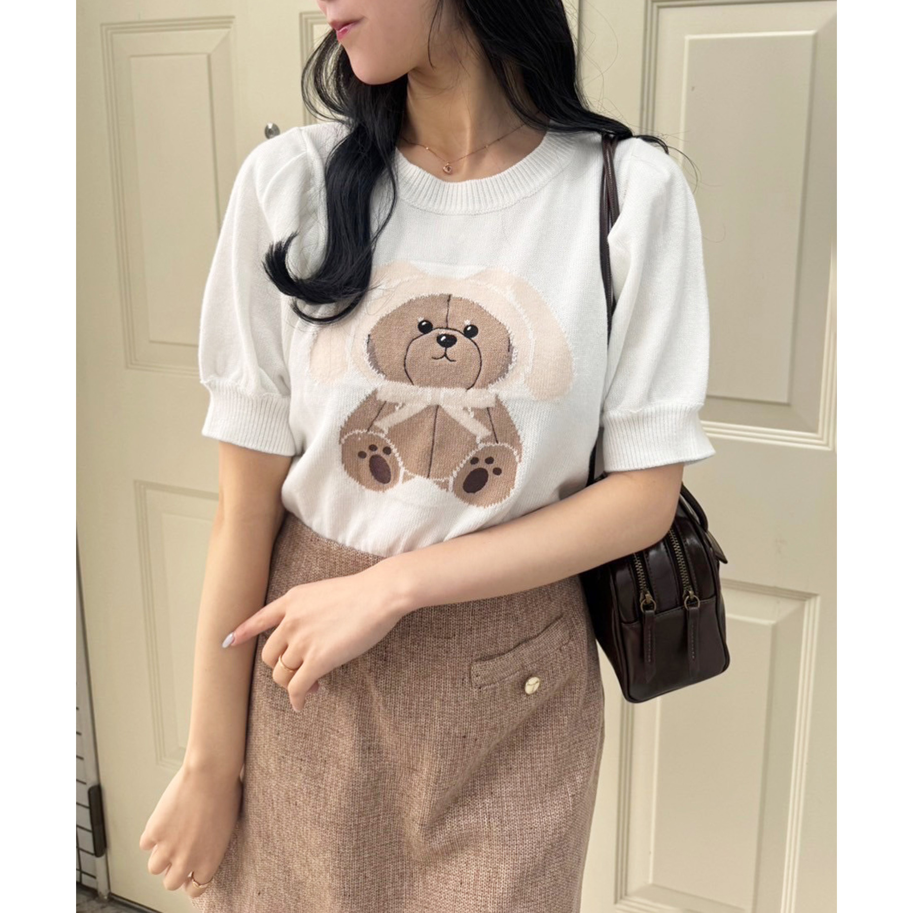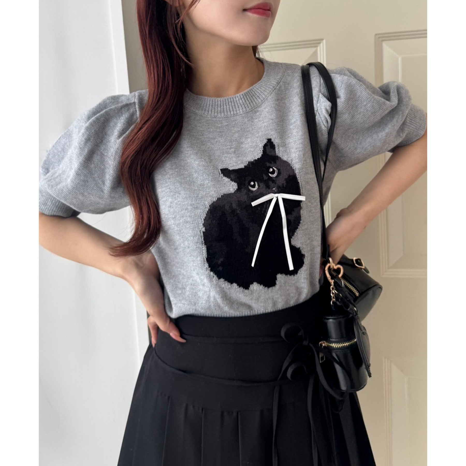 ゆったりした身幅に、たっぷりのボリュームスリーブがポイントのニット。