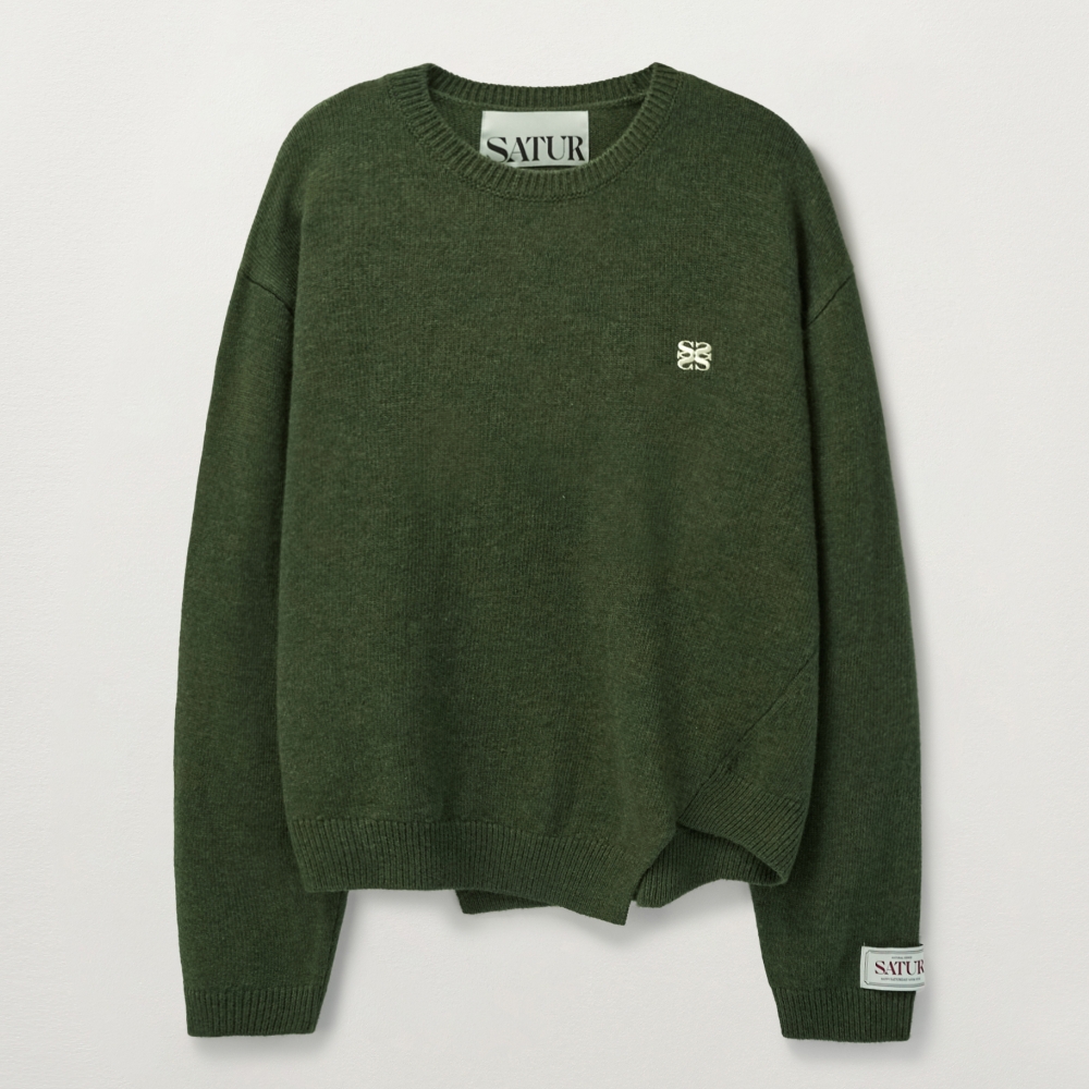 Dublin Unbalanced Cashmere Blend Knit - Olive Khaki