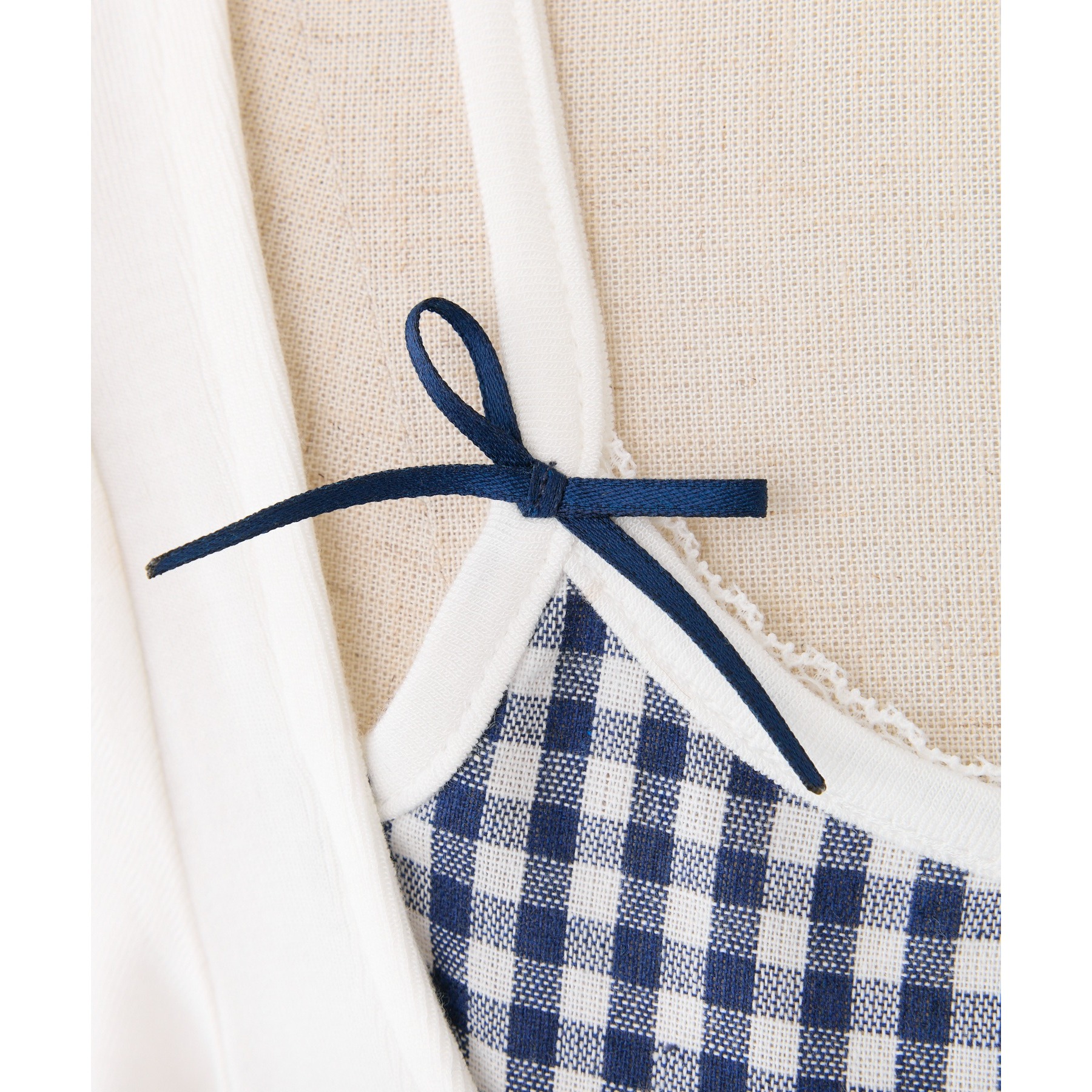 【オフホワイト】本体:レーヨン95% ポリウレタン5% 別地:ポリエステル100% レース部分:ナイロン95% ポリウレタン5% リボン:ポリエステル100% 【ネイビー/ブラック】本体:レーヨン95% ポリウレタン5% 別地:ポリエステル65% コットン35% レース部分:ナイロン95% ポリウレタン5% リボン:ポリエステル100%