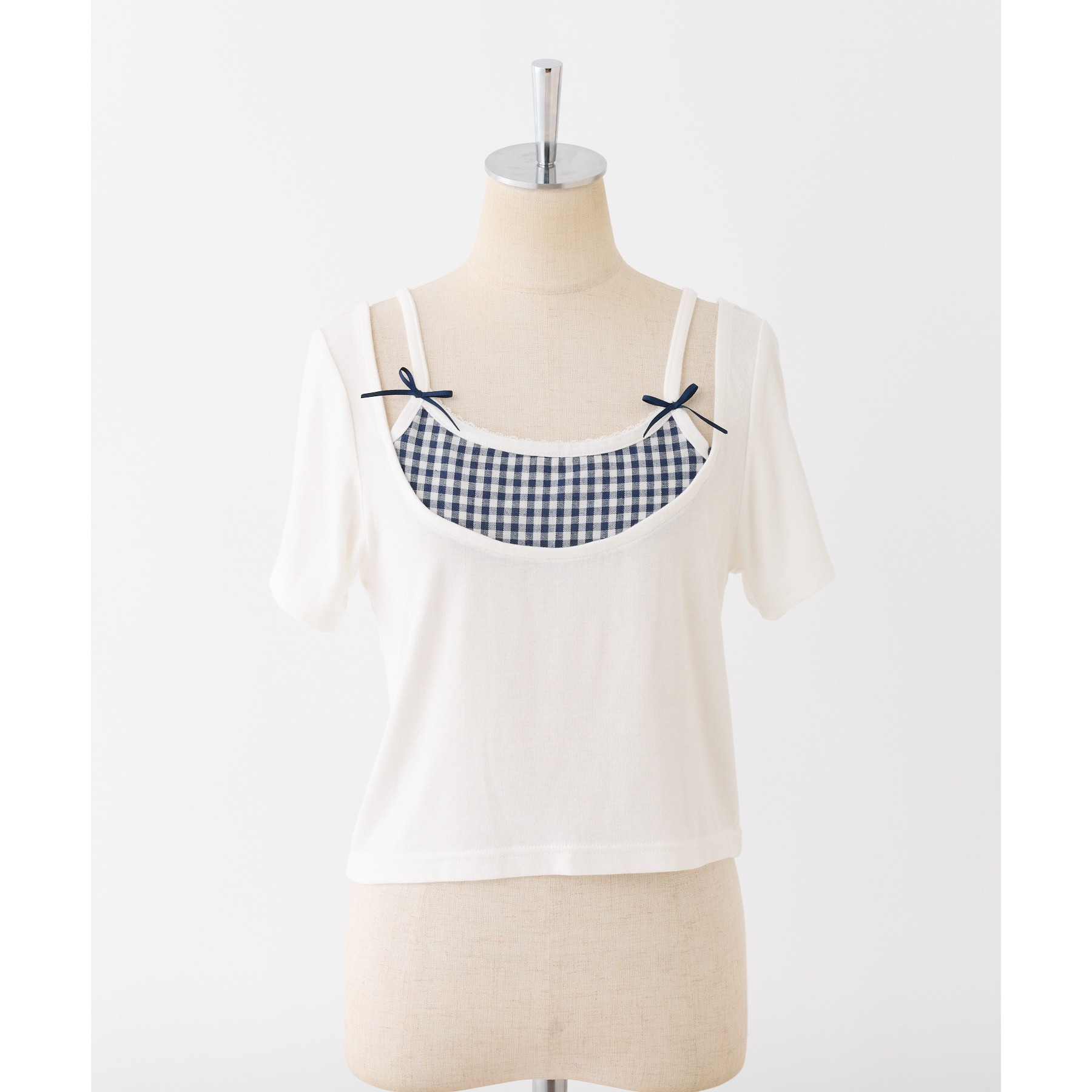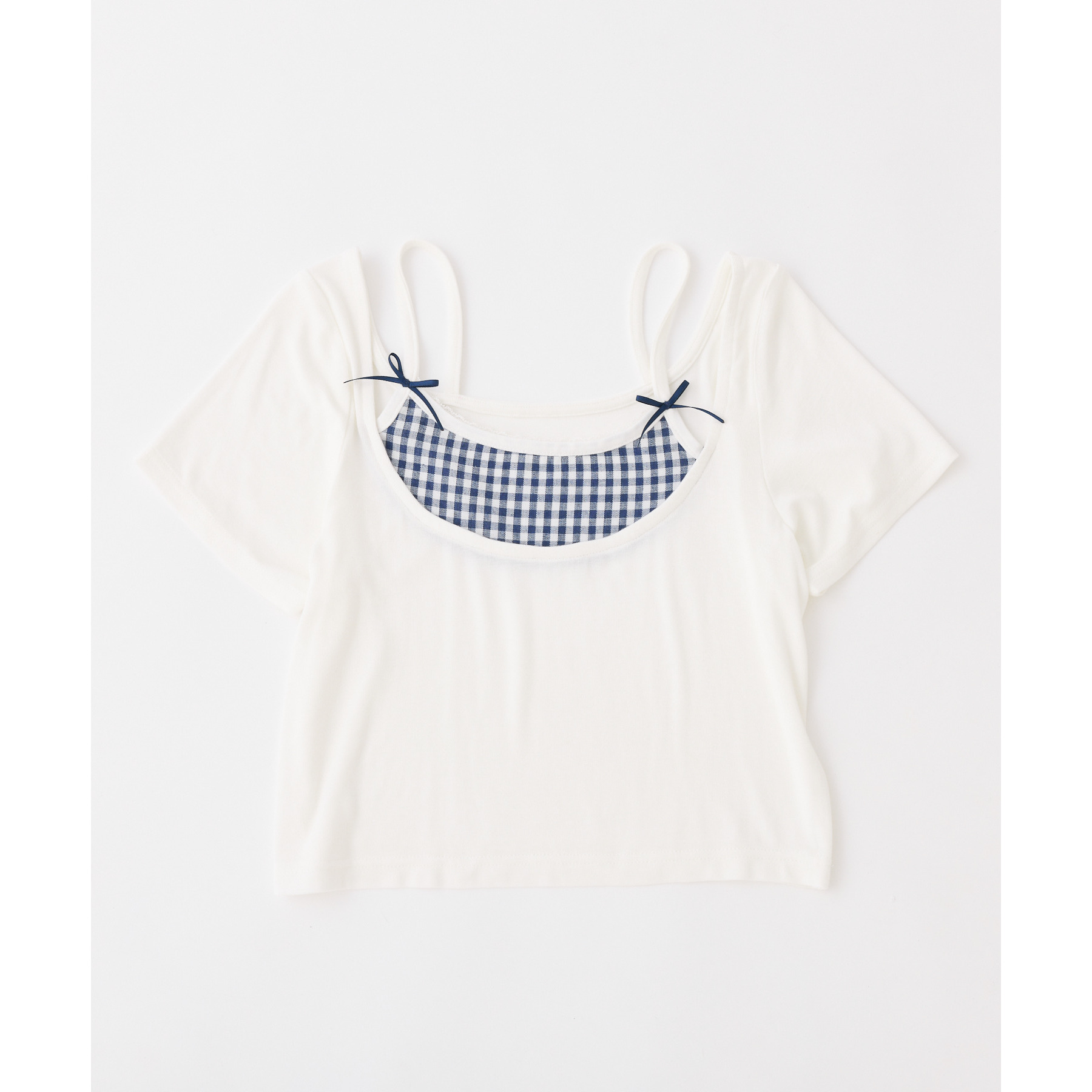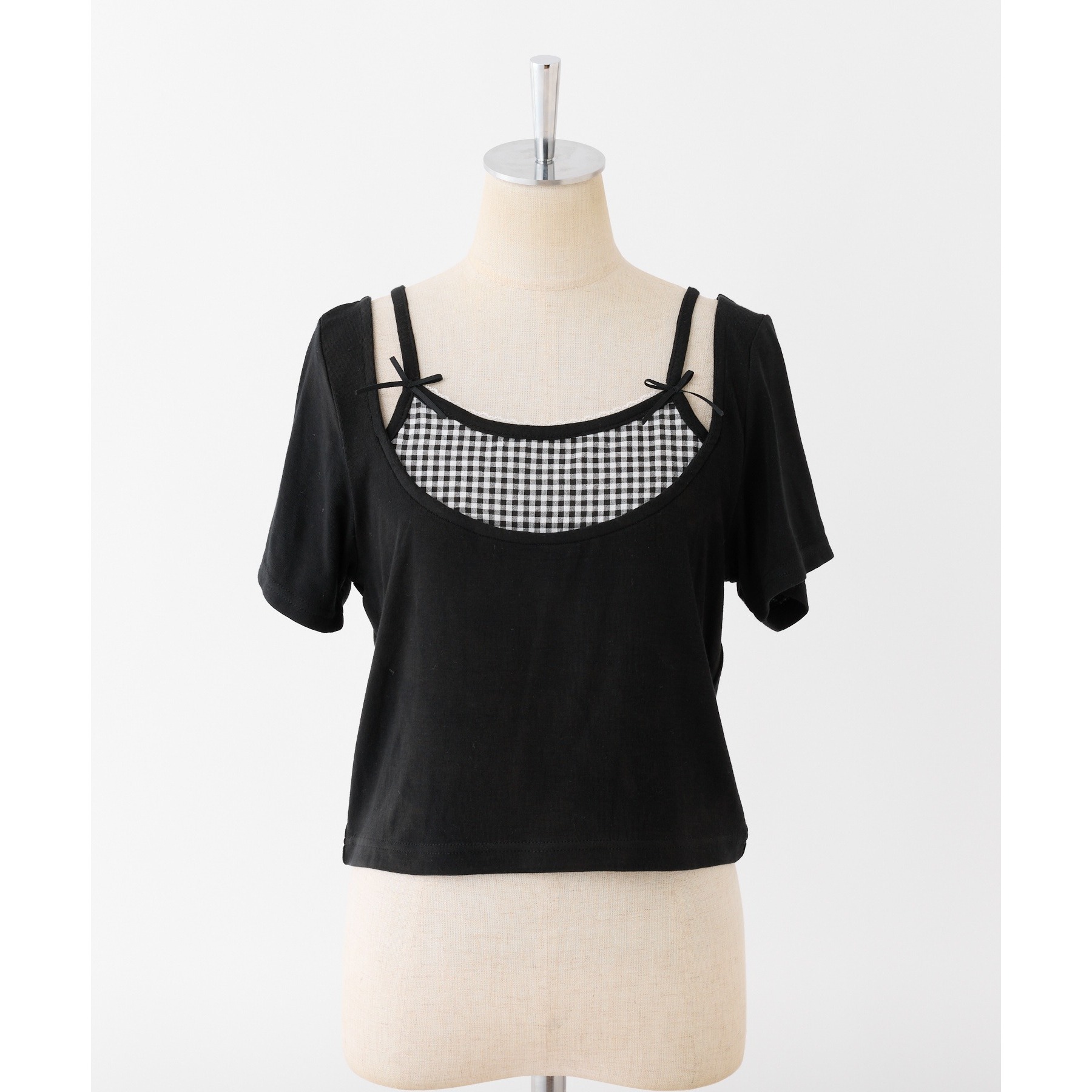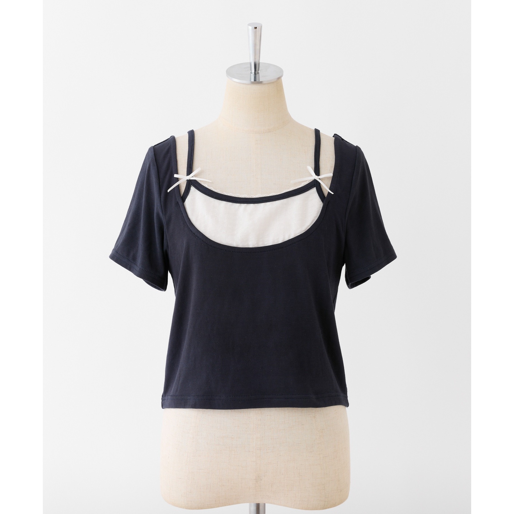 レイヤード風リボン付きトップス