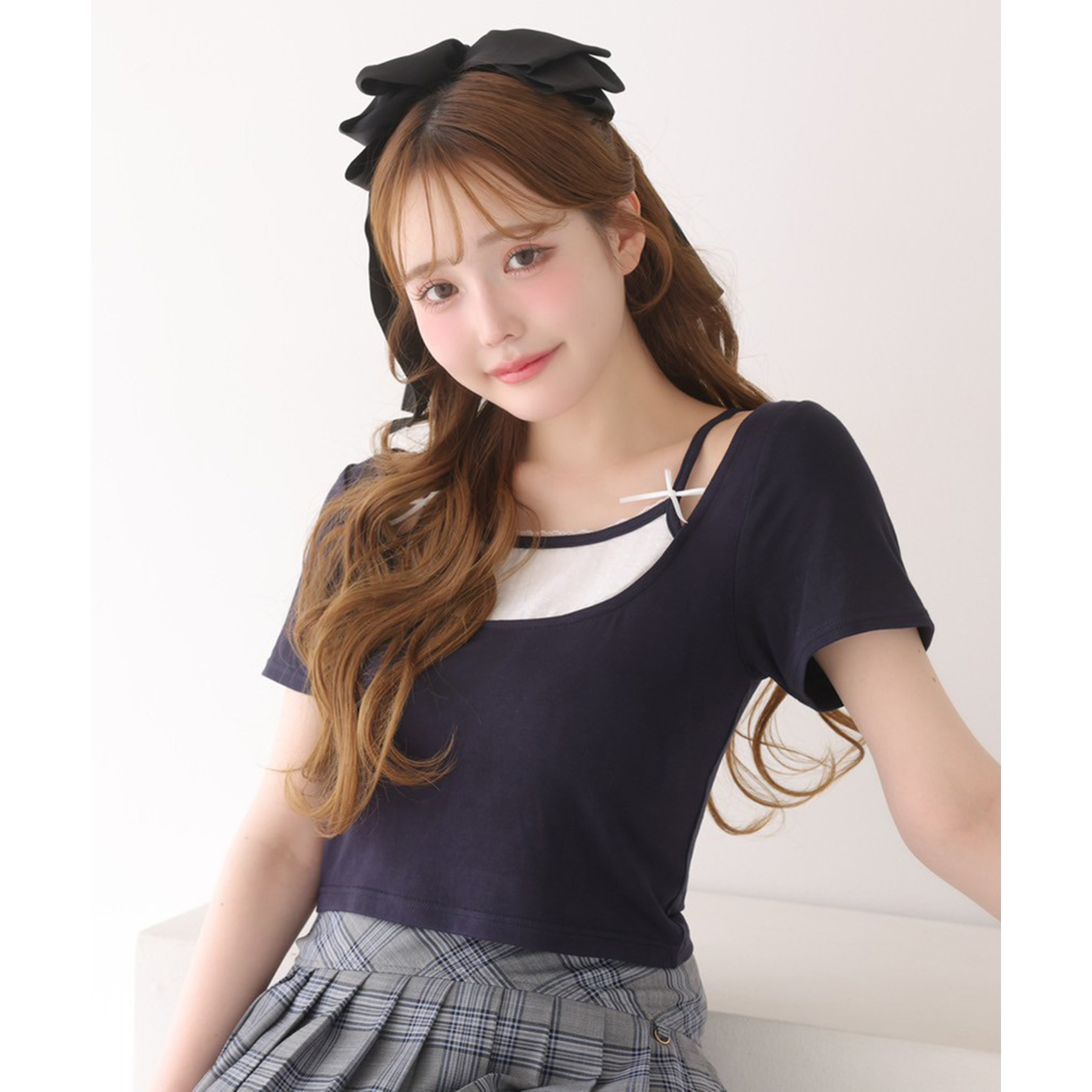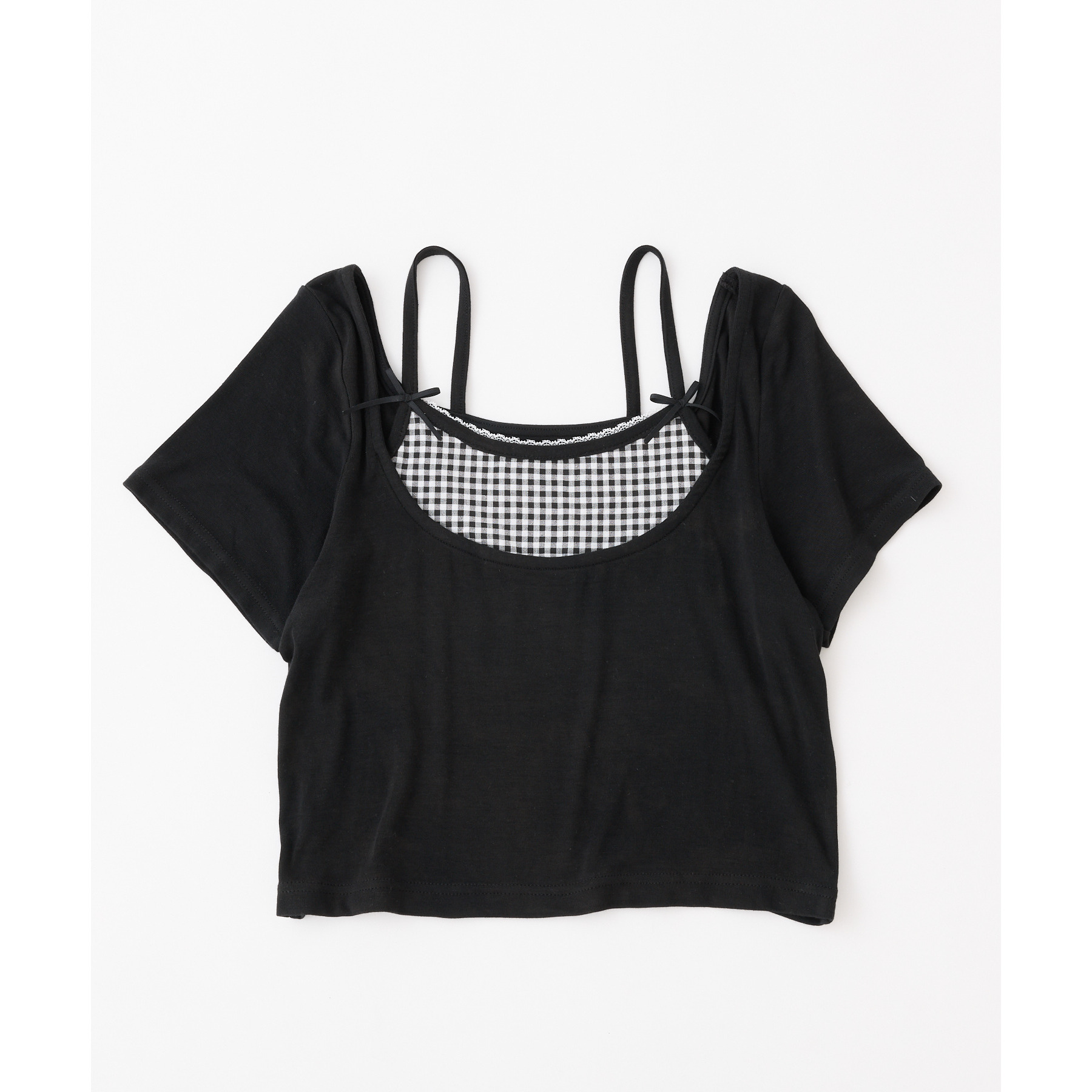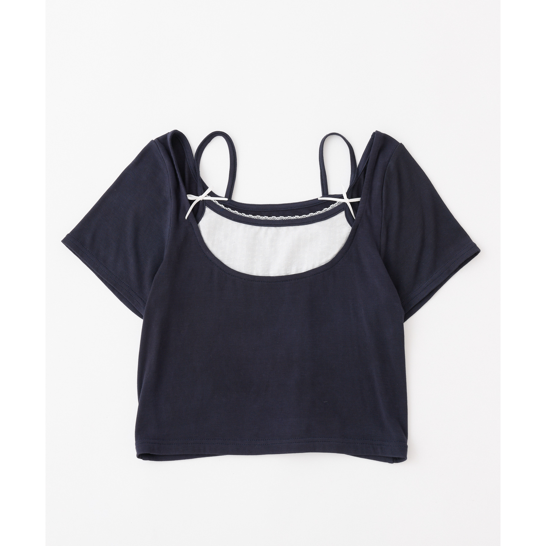 レイヤード風リボン付きトップス