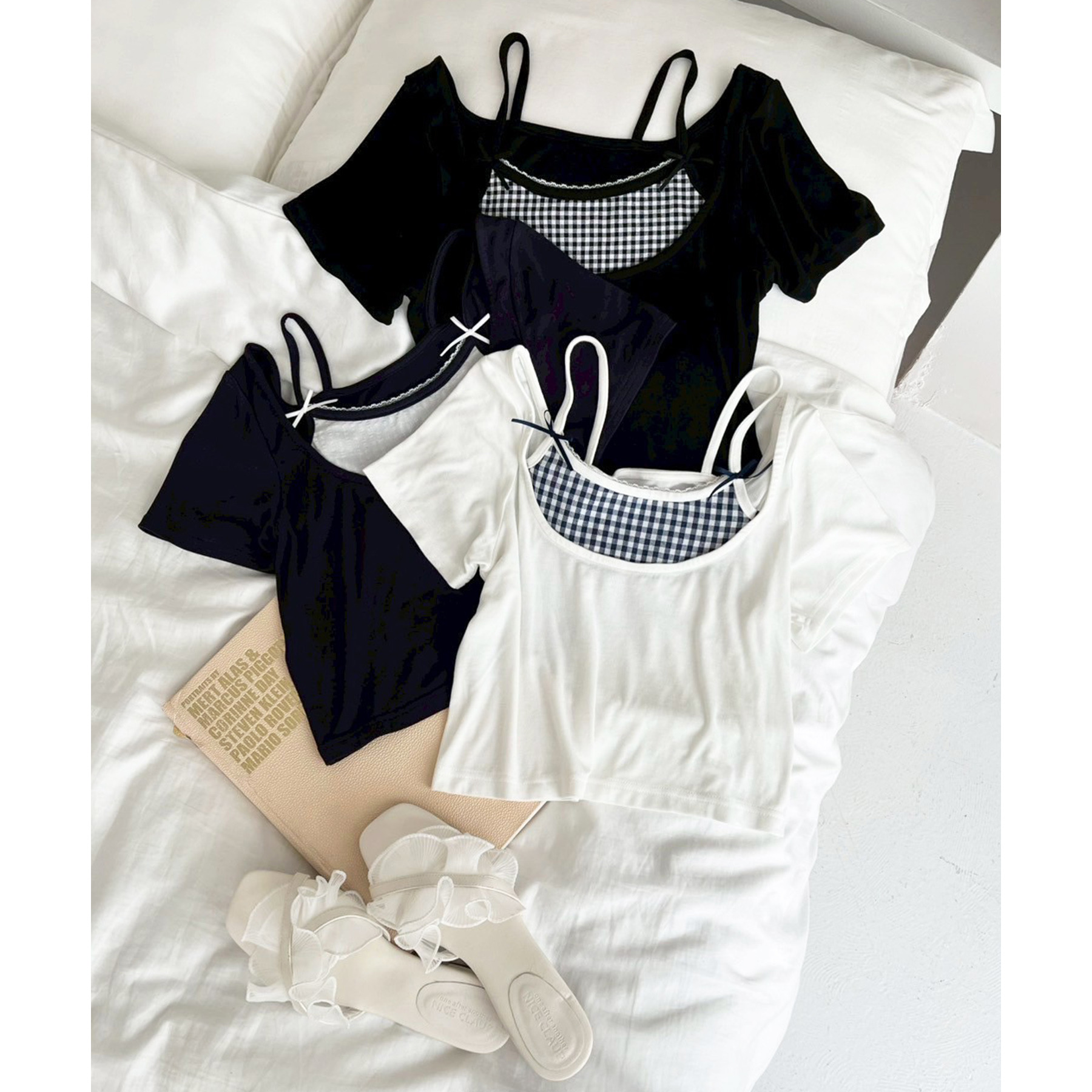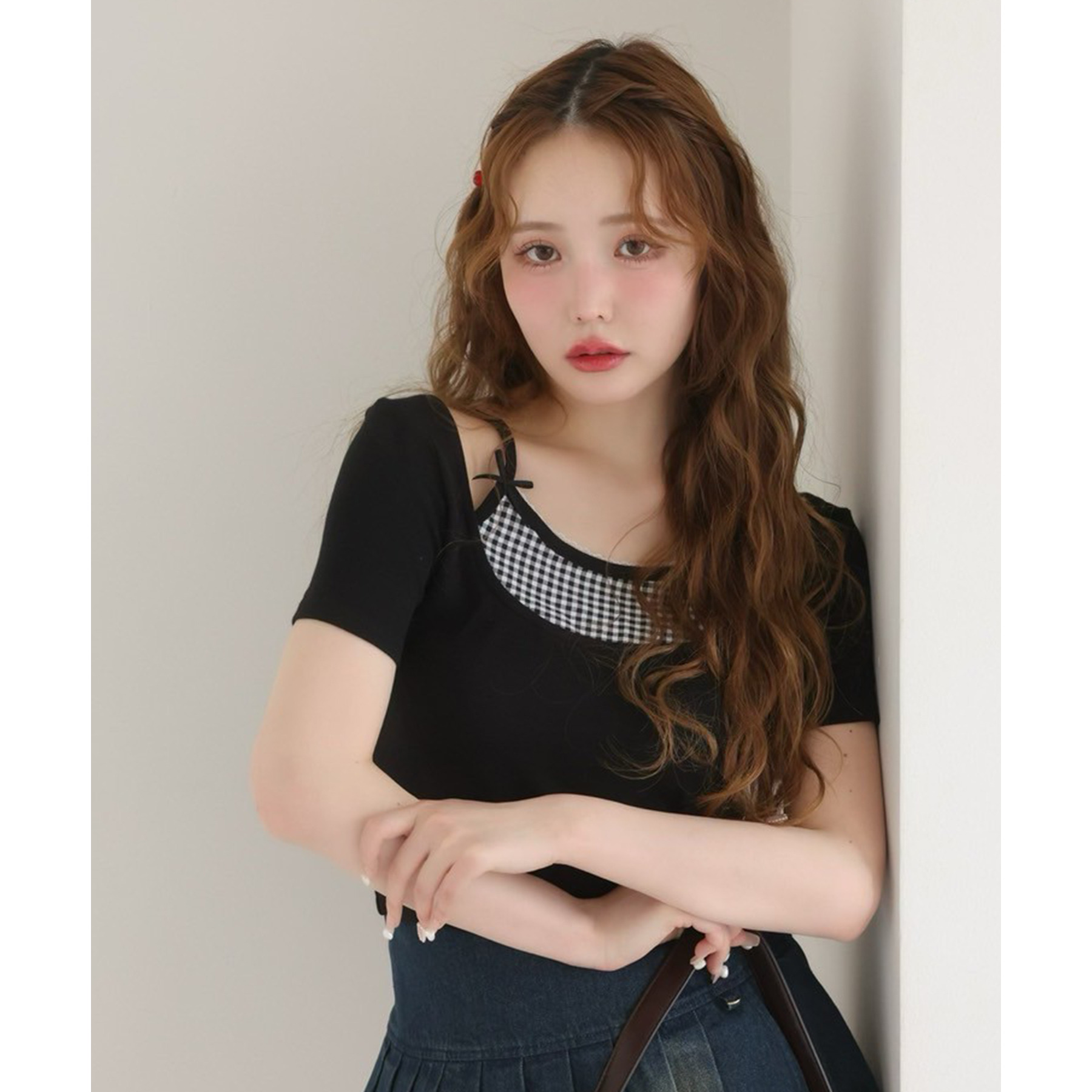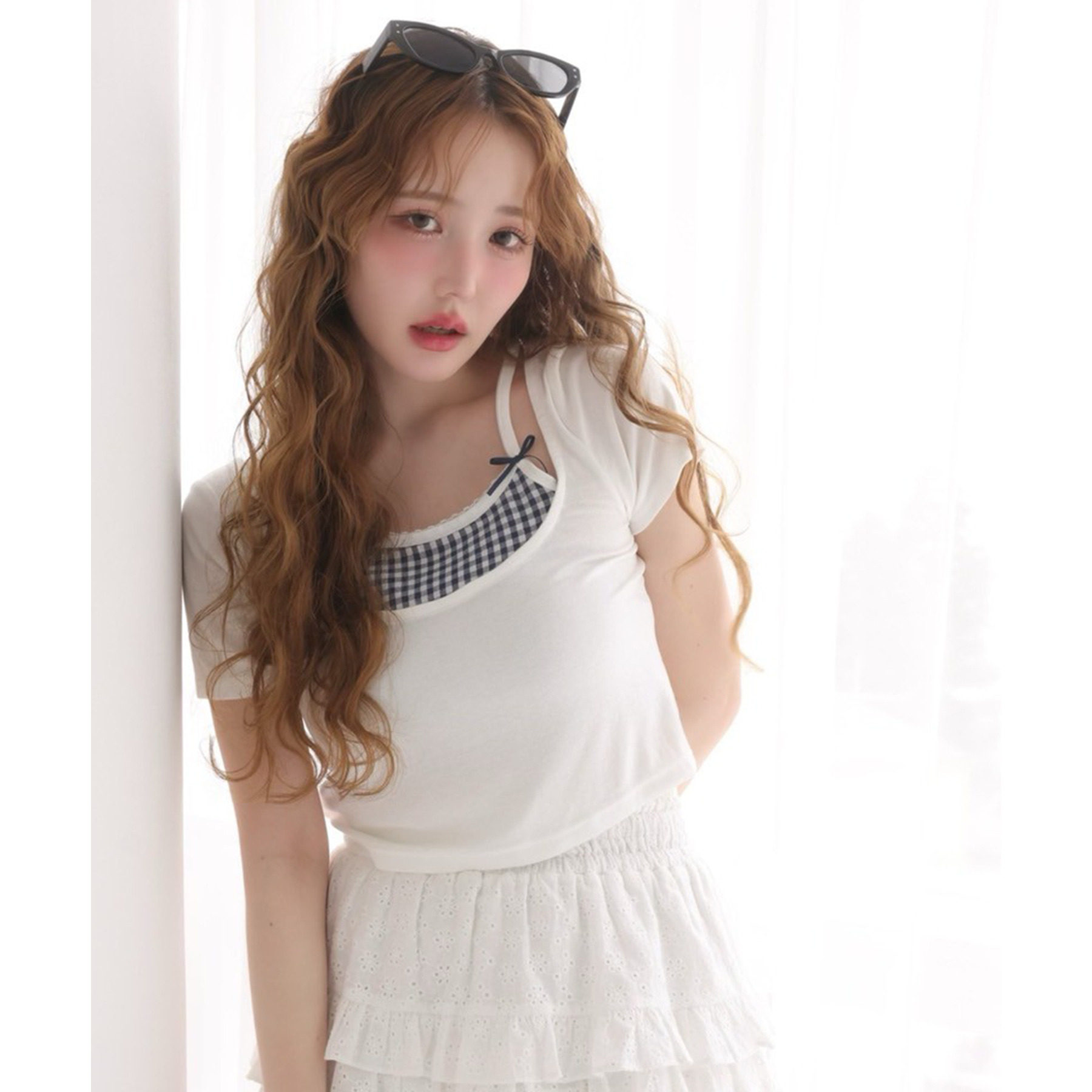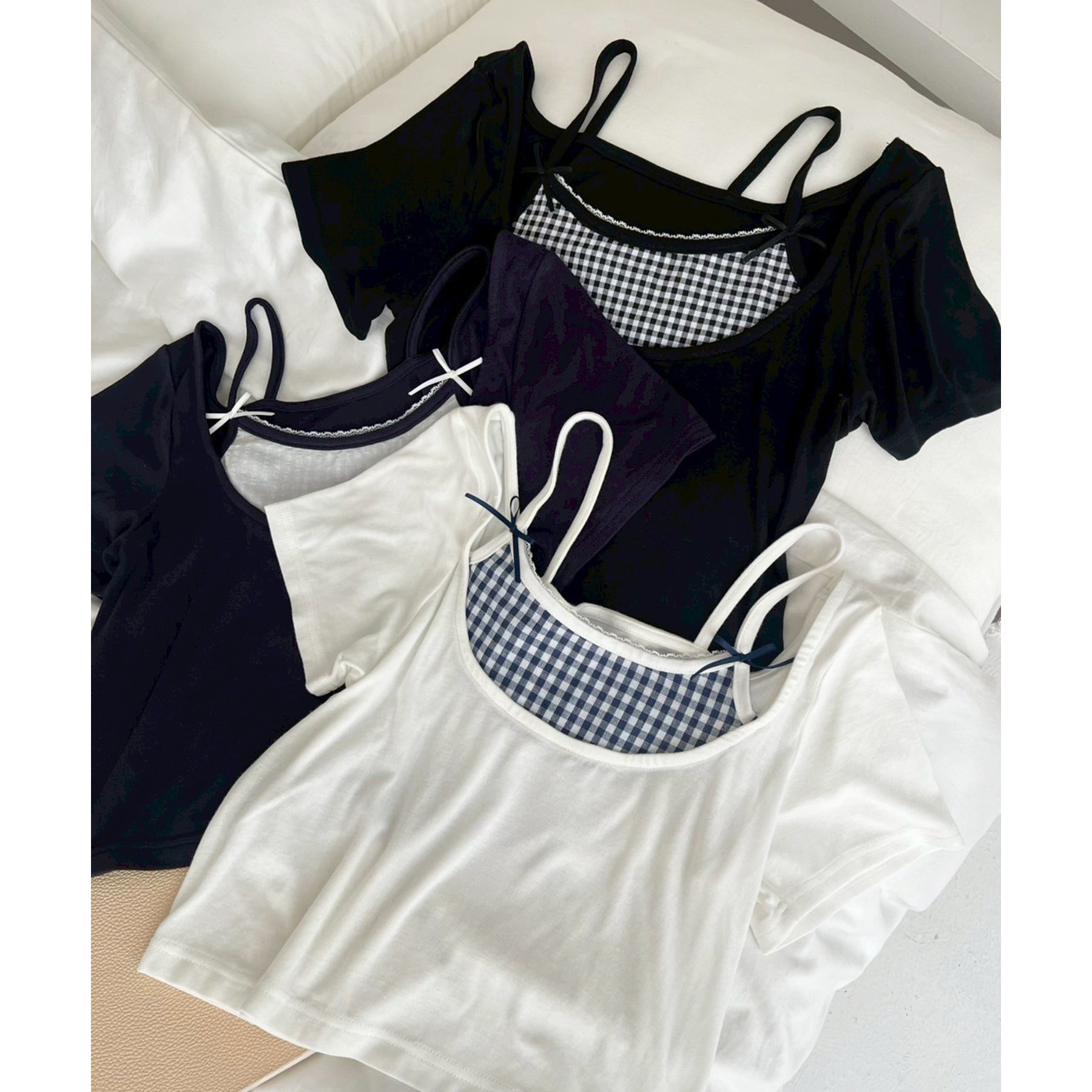 レイヤード風リボン付きトップス
