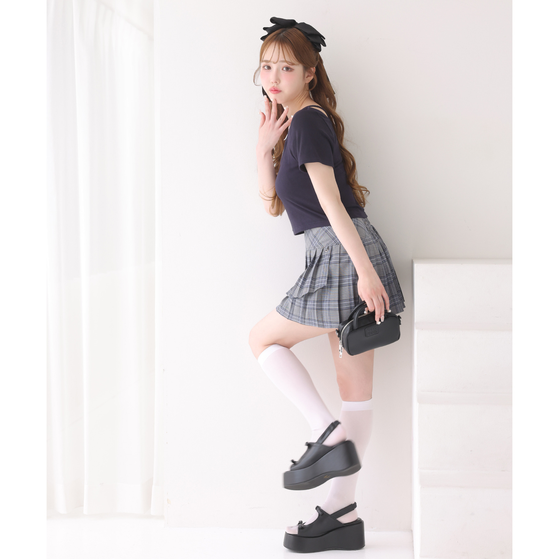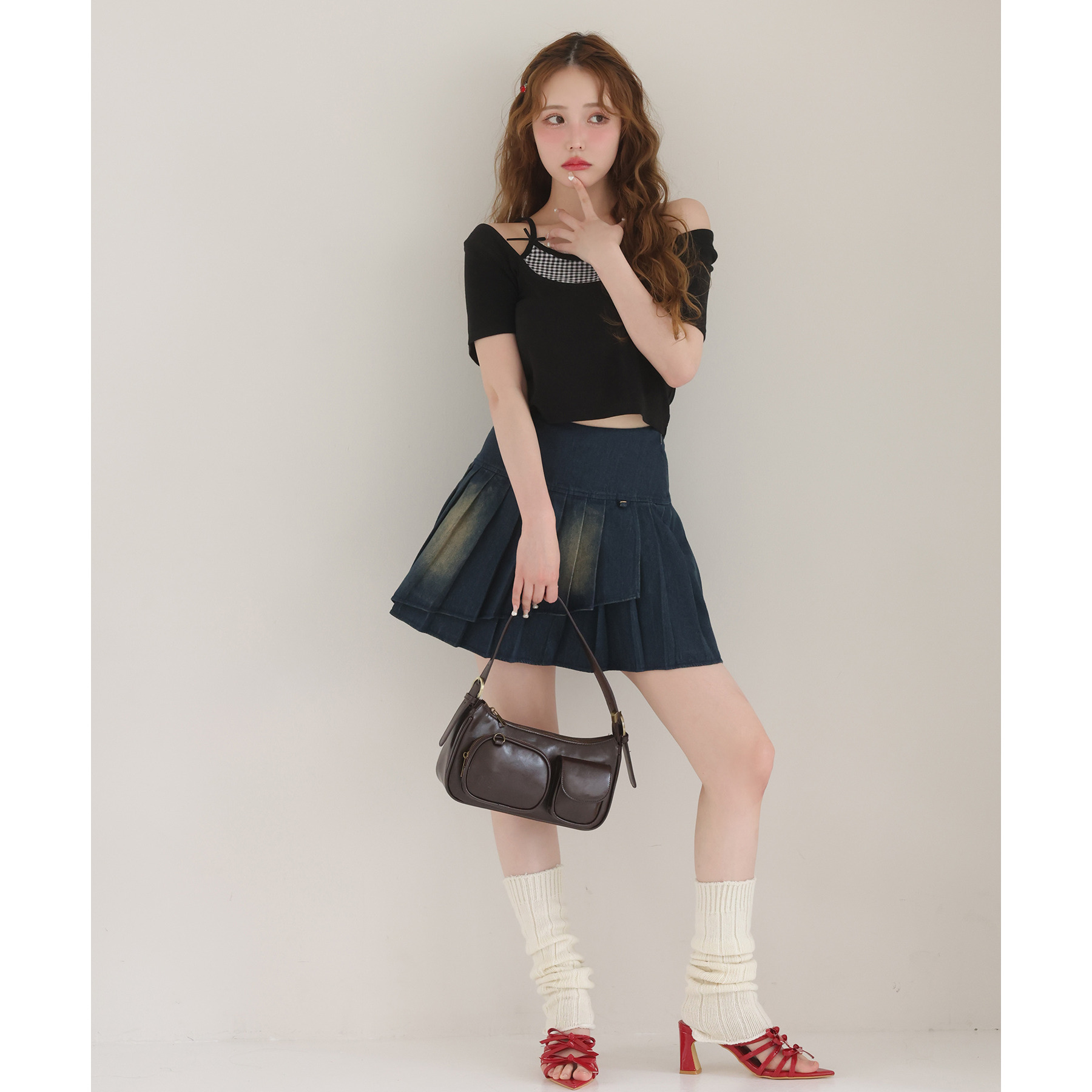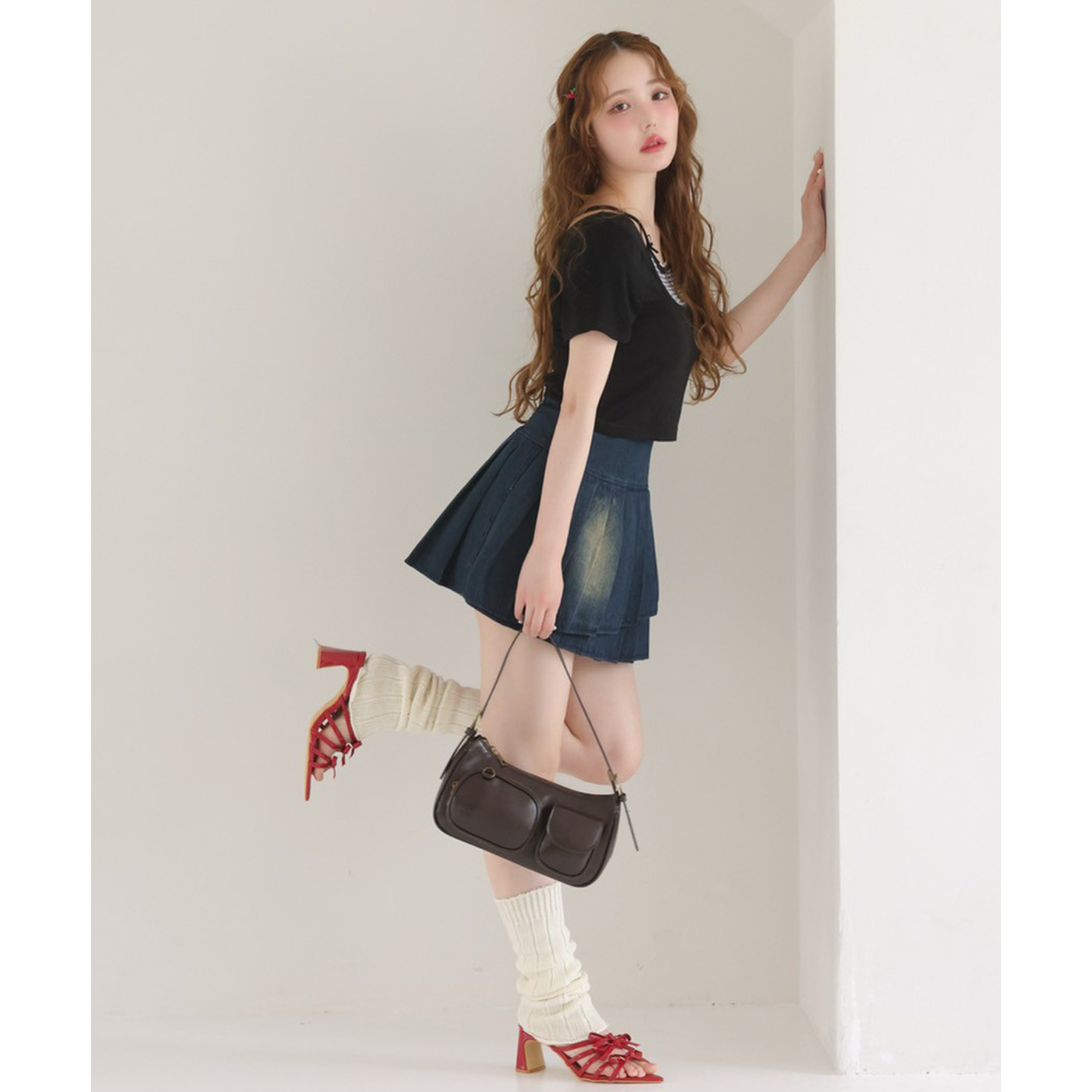 ミニスカートと合わせて、流行のバレエコアコーデにも◎