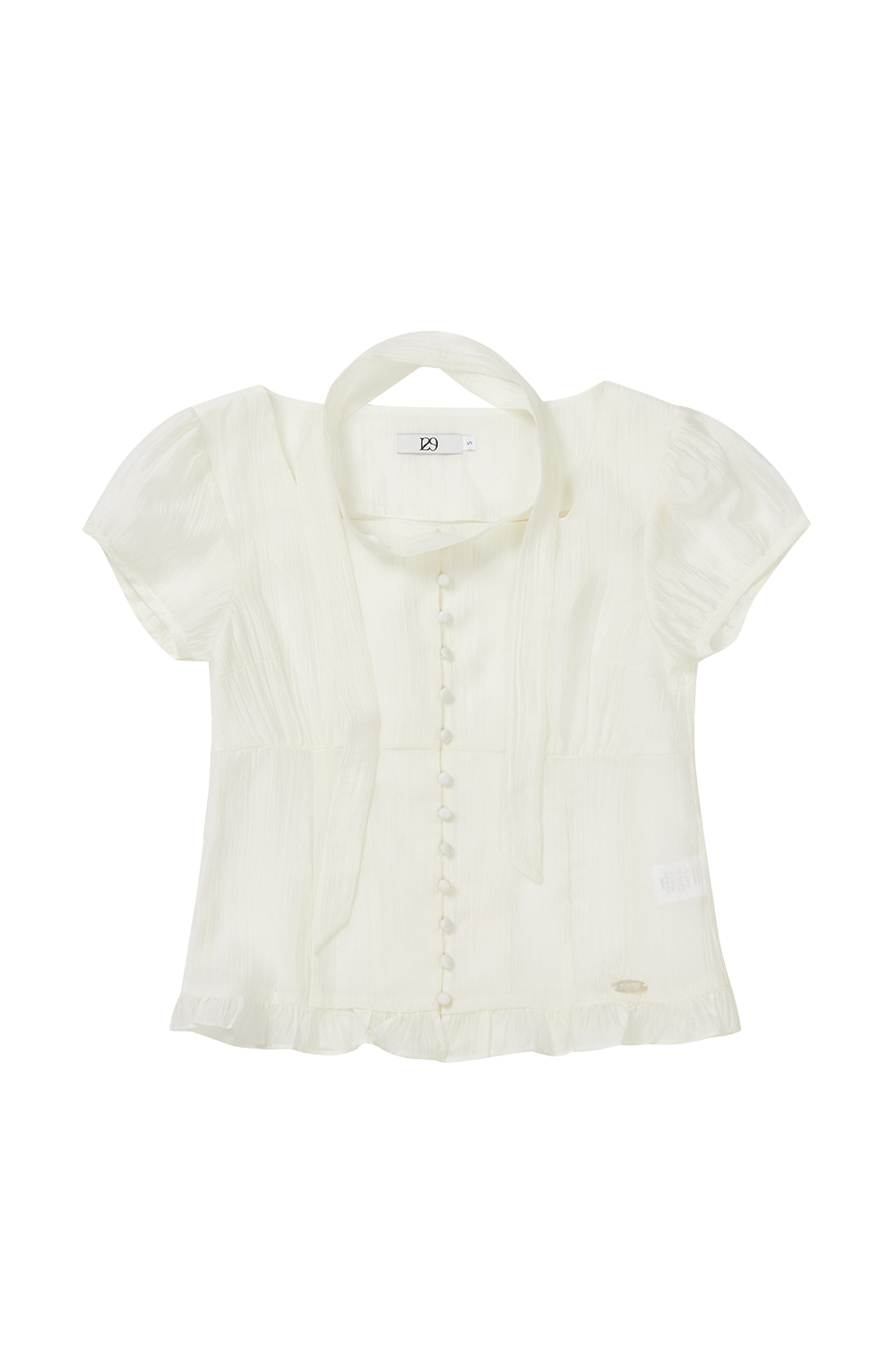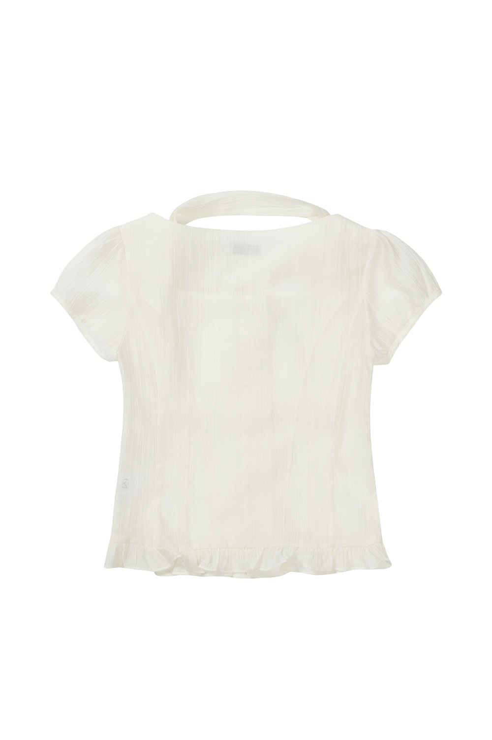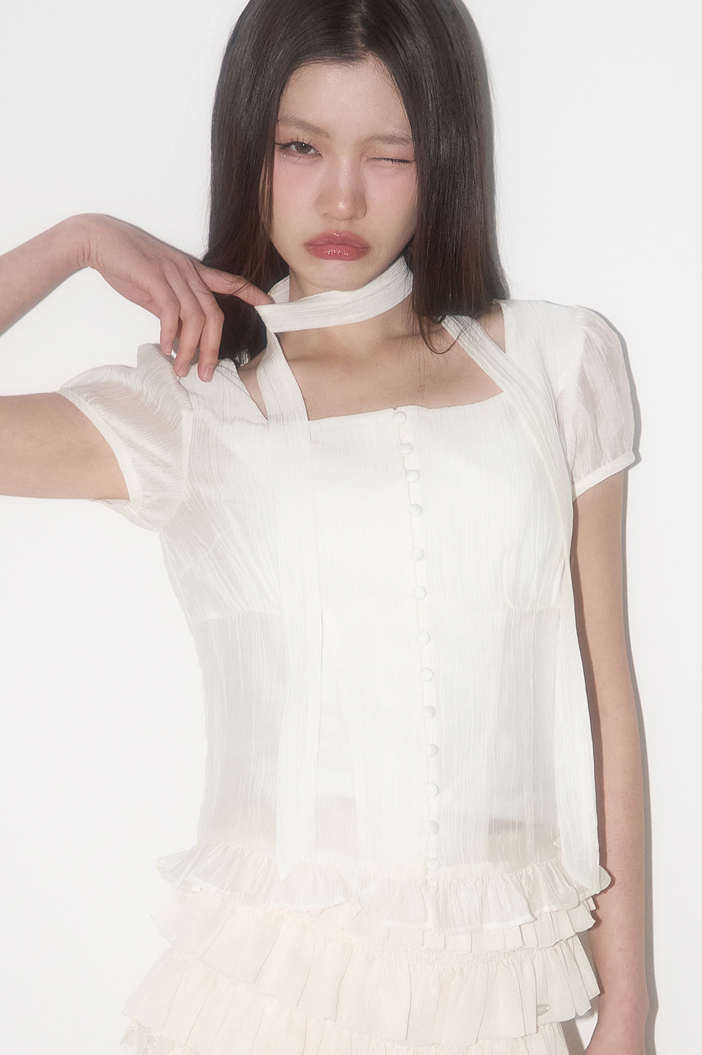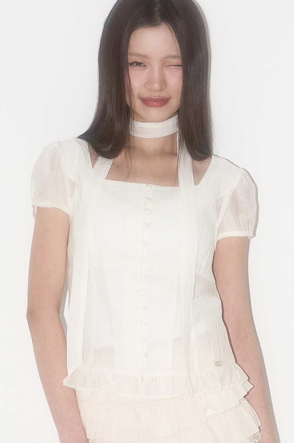 Ribbon Tie Square Neck Blouse Cream