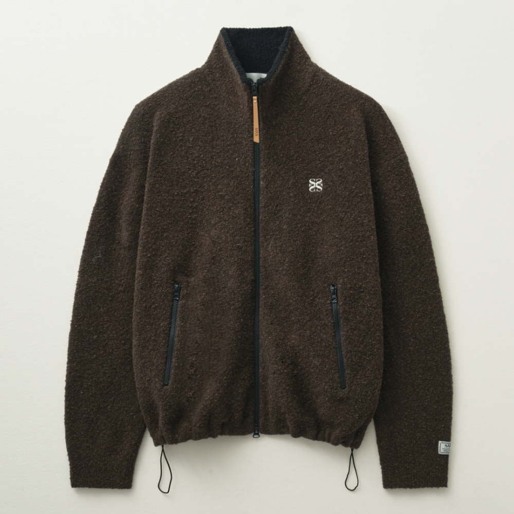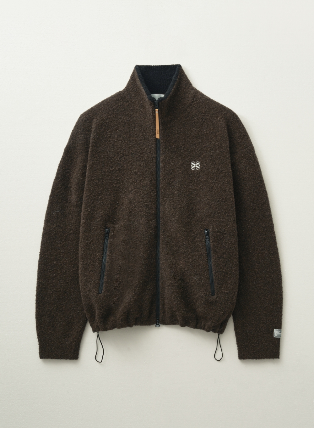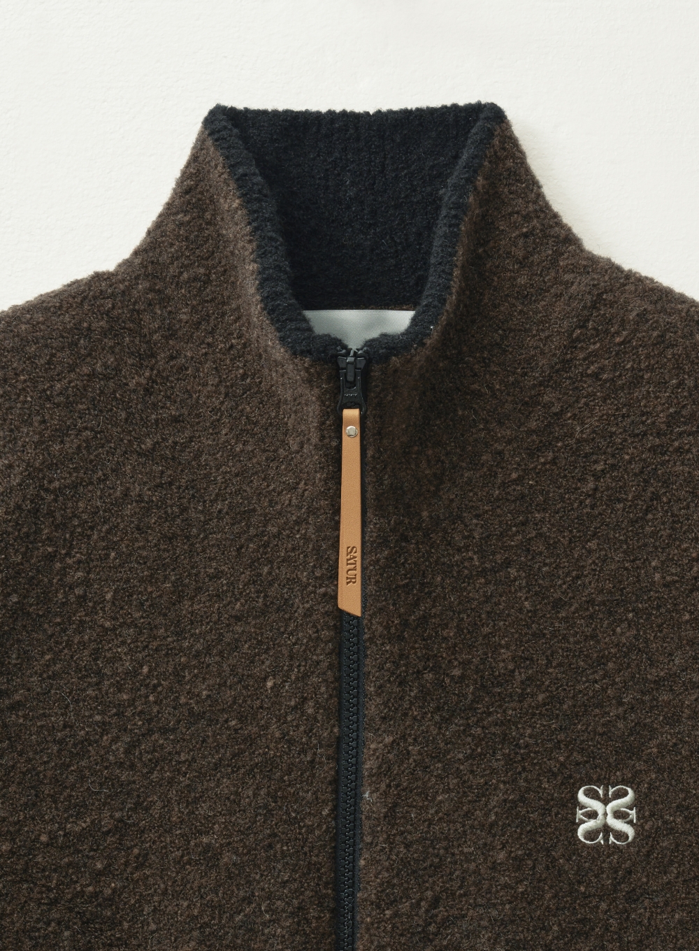 Fluffy Wool Fleece Knit Zip-up - Brown