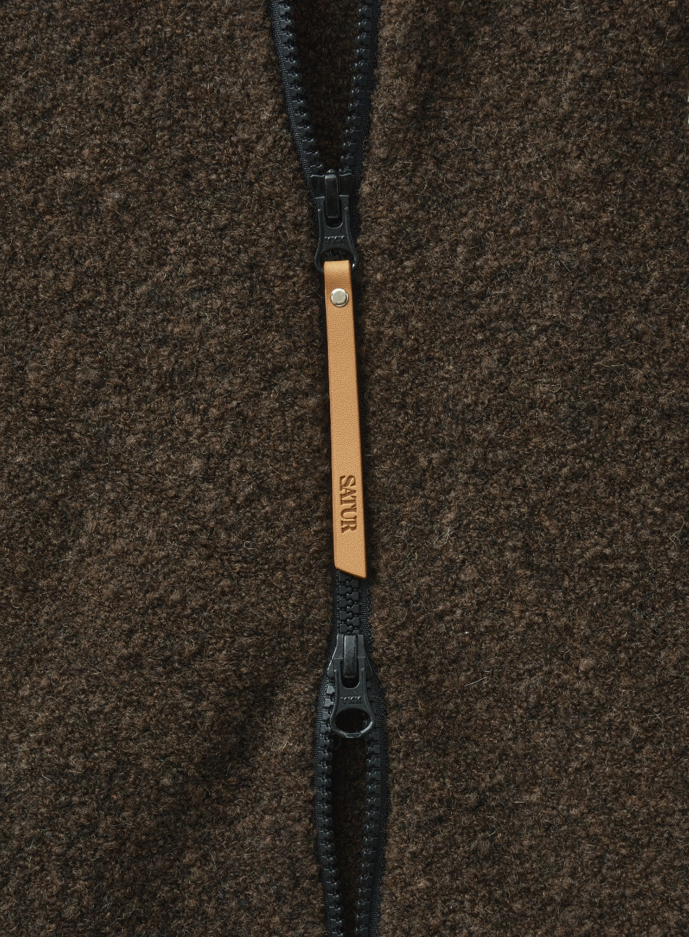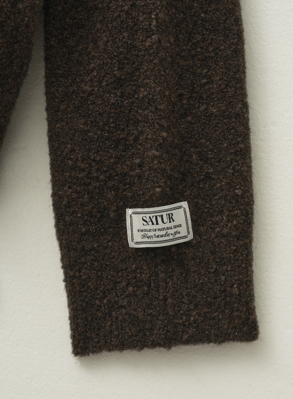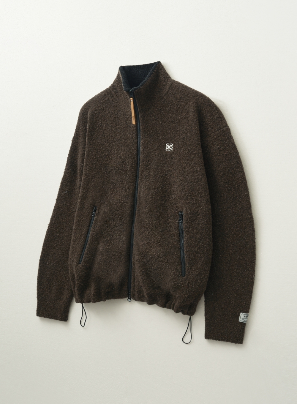 Fluffy Wool Fleece Knit Zip-up - Brown