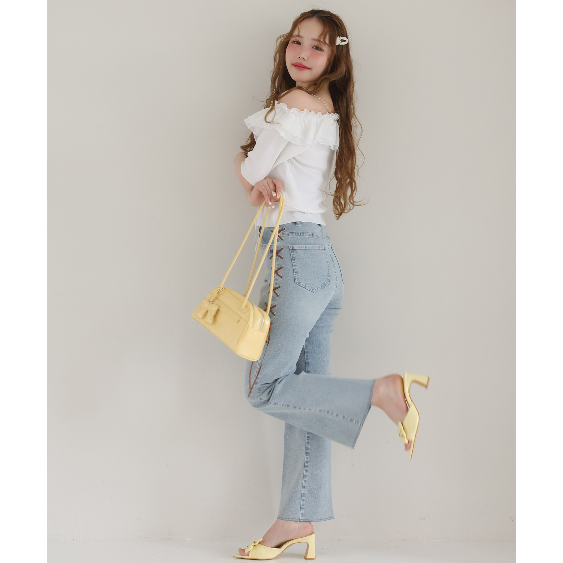 マーメイドスカートやフレアスカートと合わせて、レディライクなコーデに。