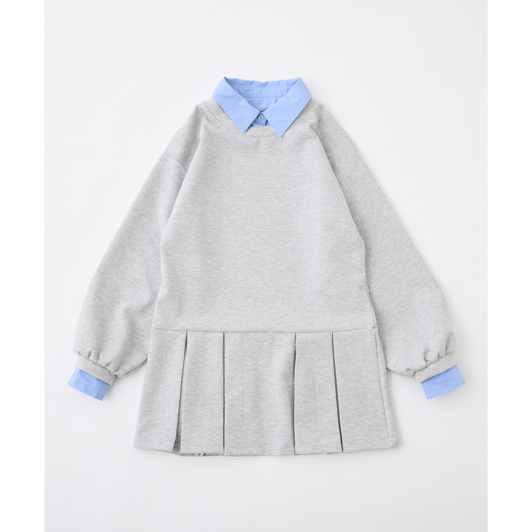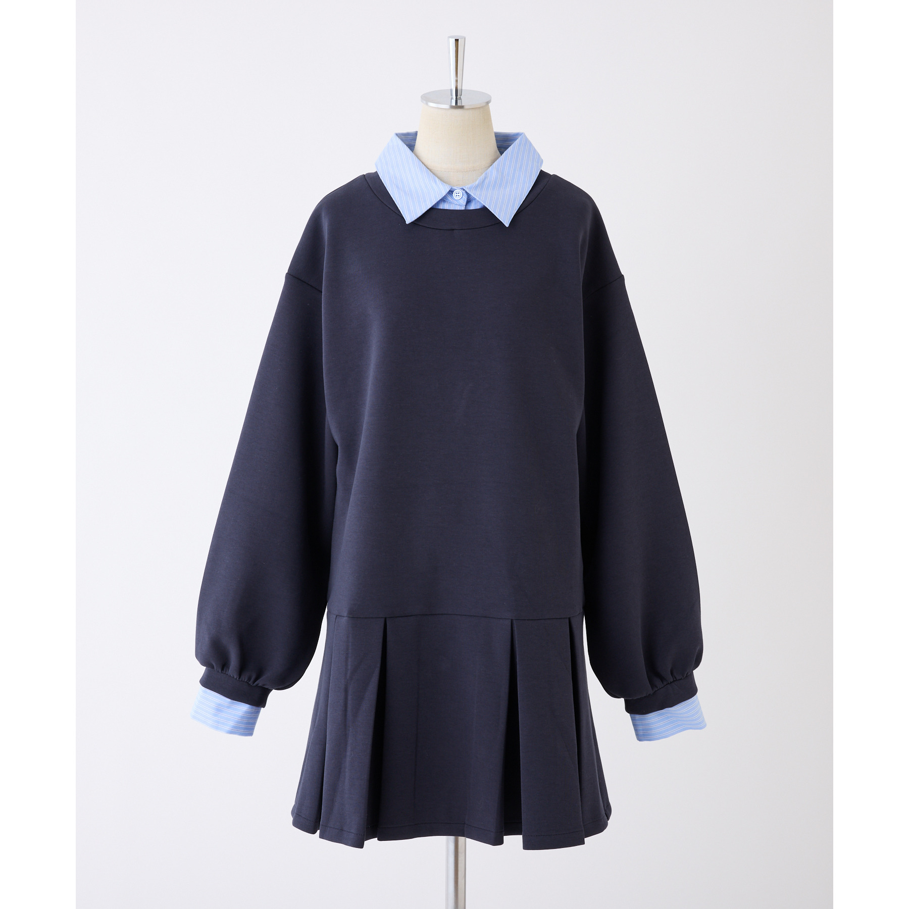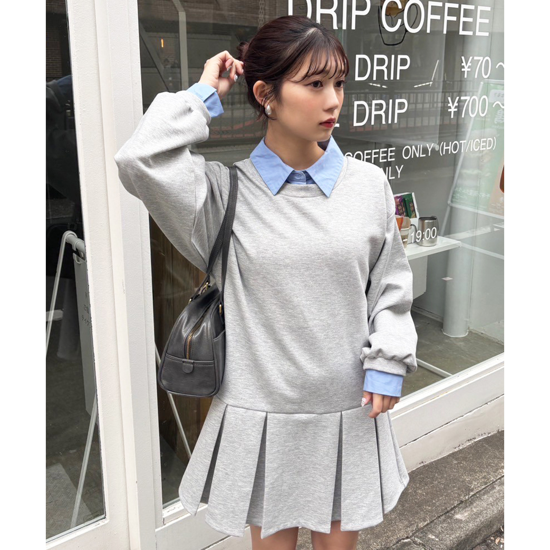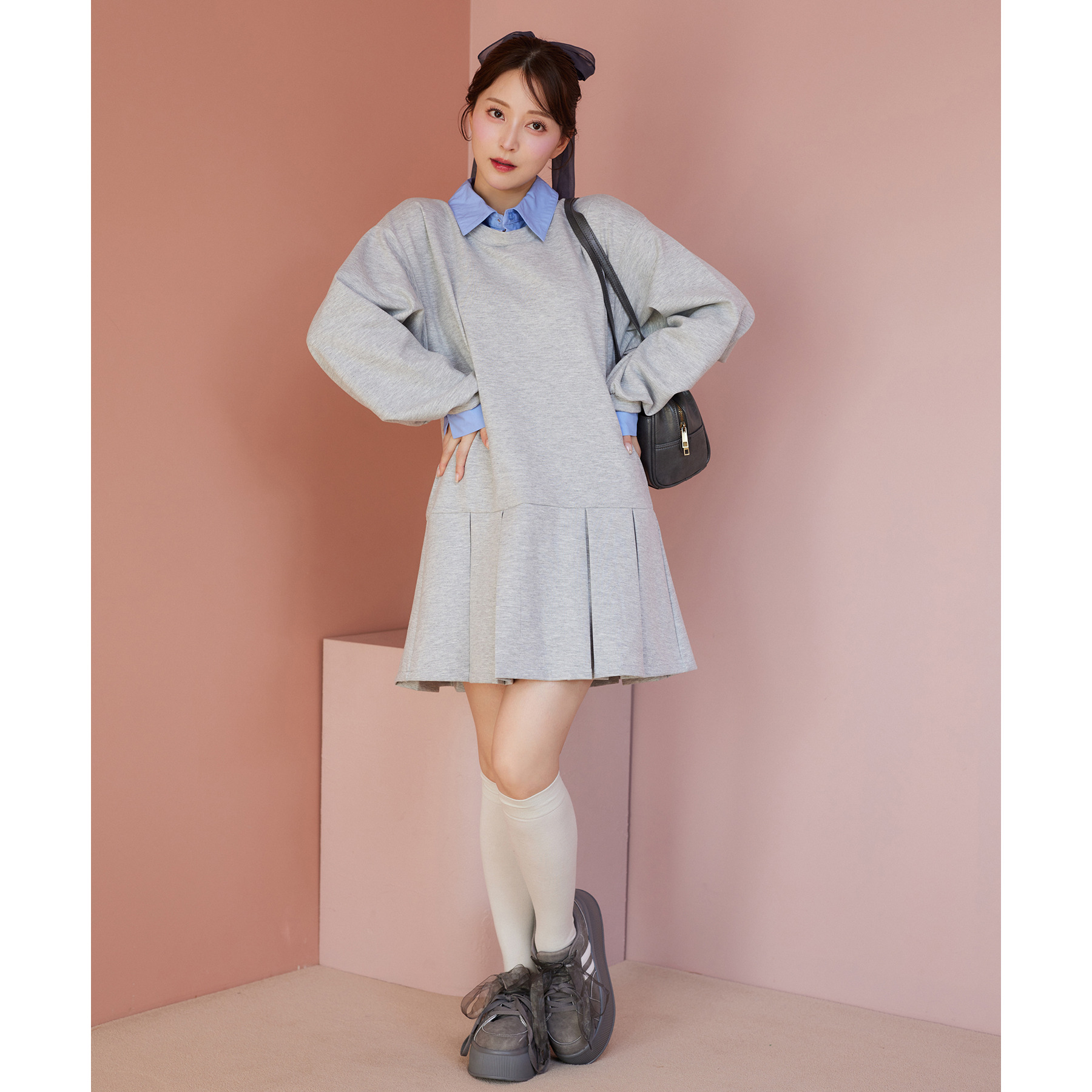 ビッグスウェットとシャツをレイヤードしたようなデザインのワンピース。