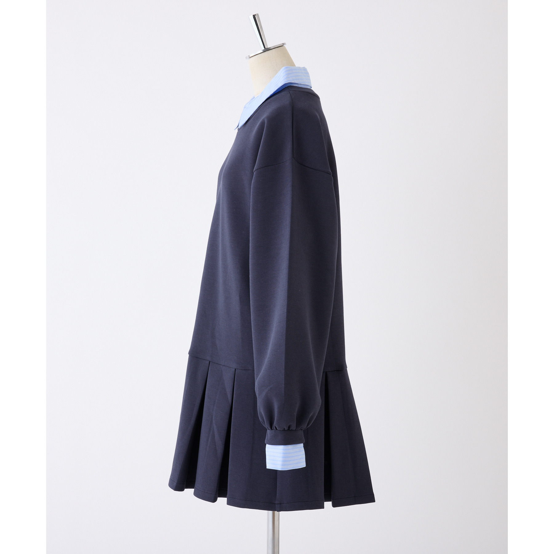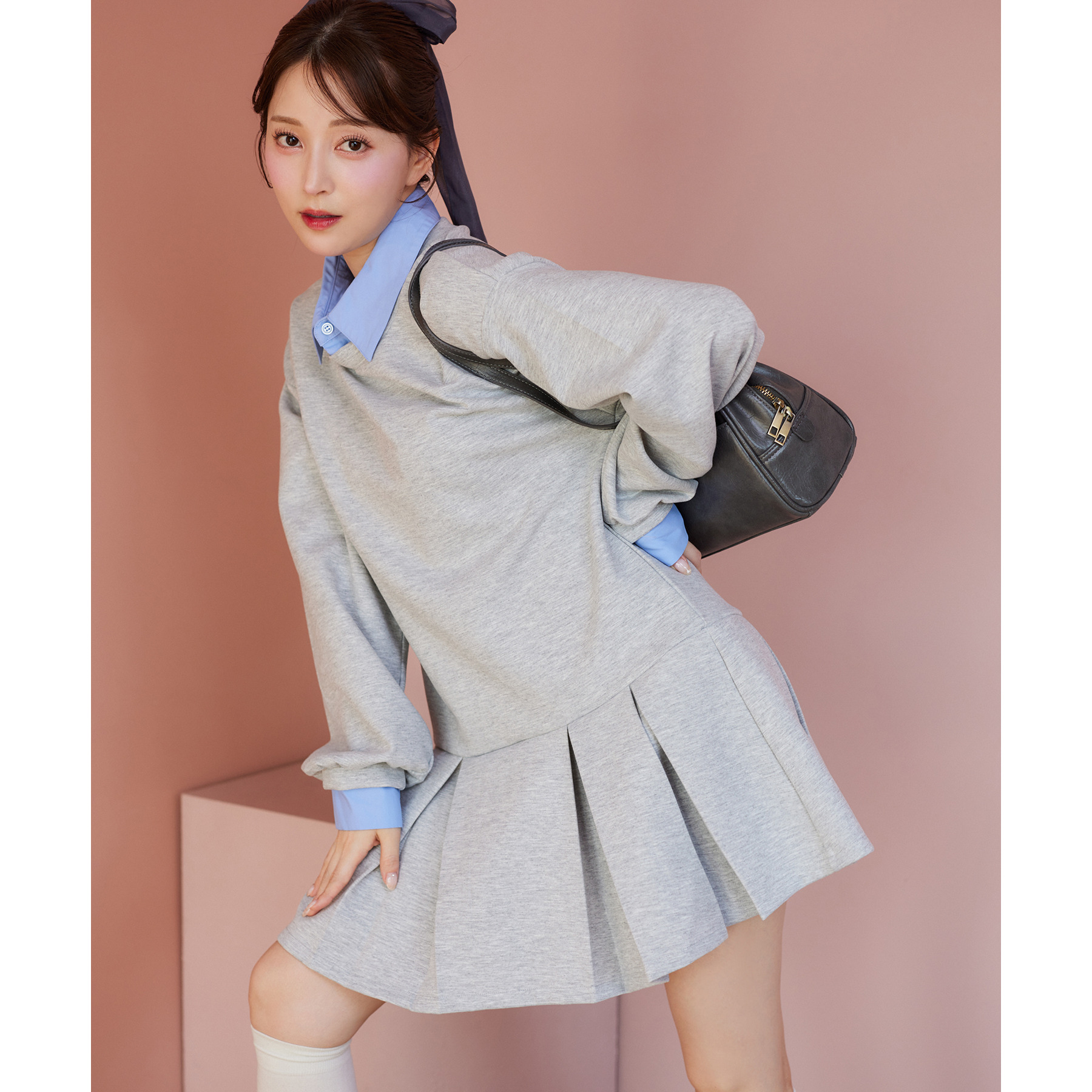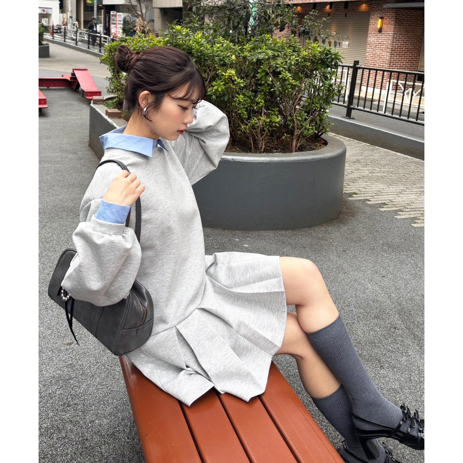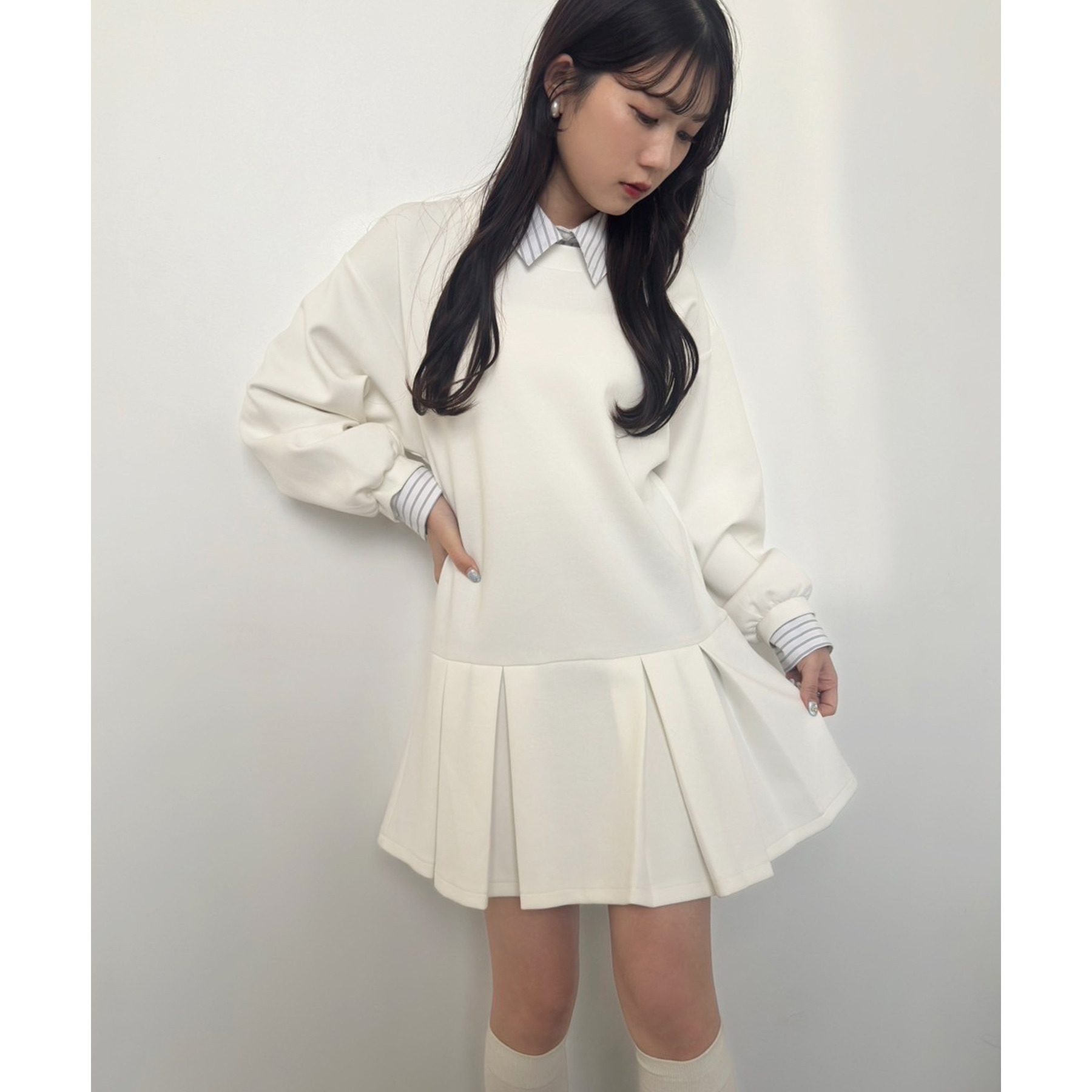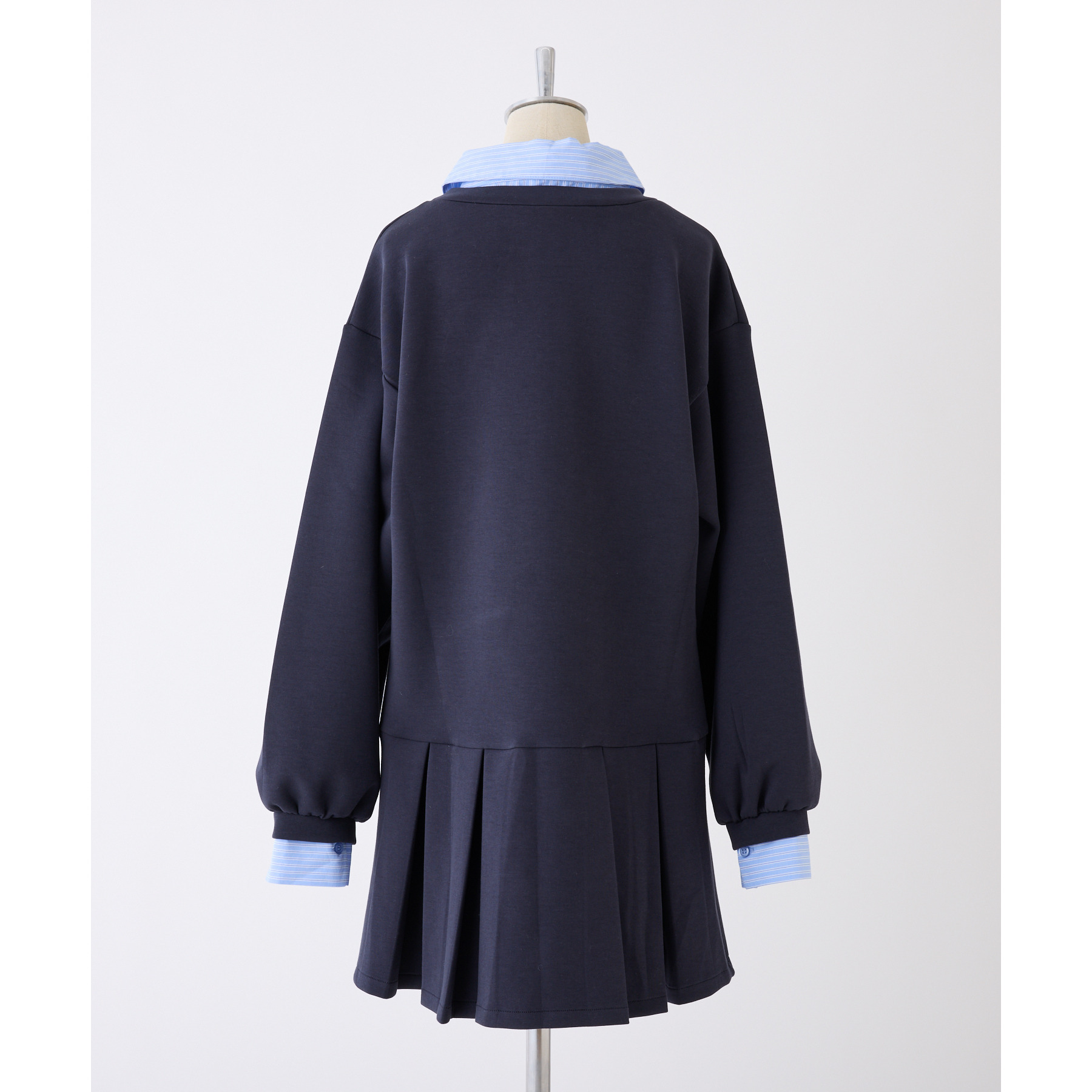 ビッグスウェットとシャツをレイヤードしたようなデザインのワンピース。