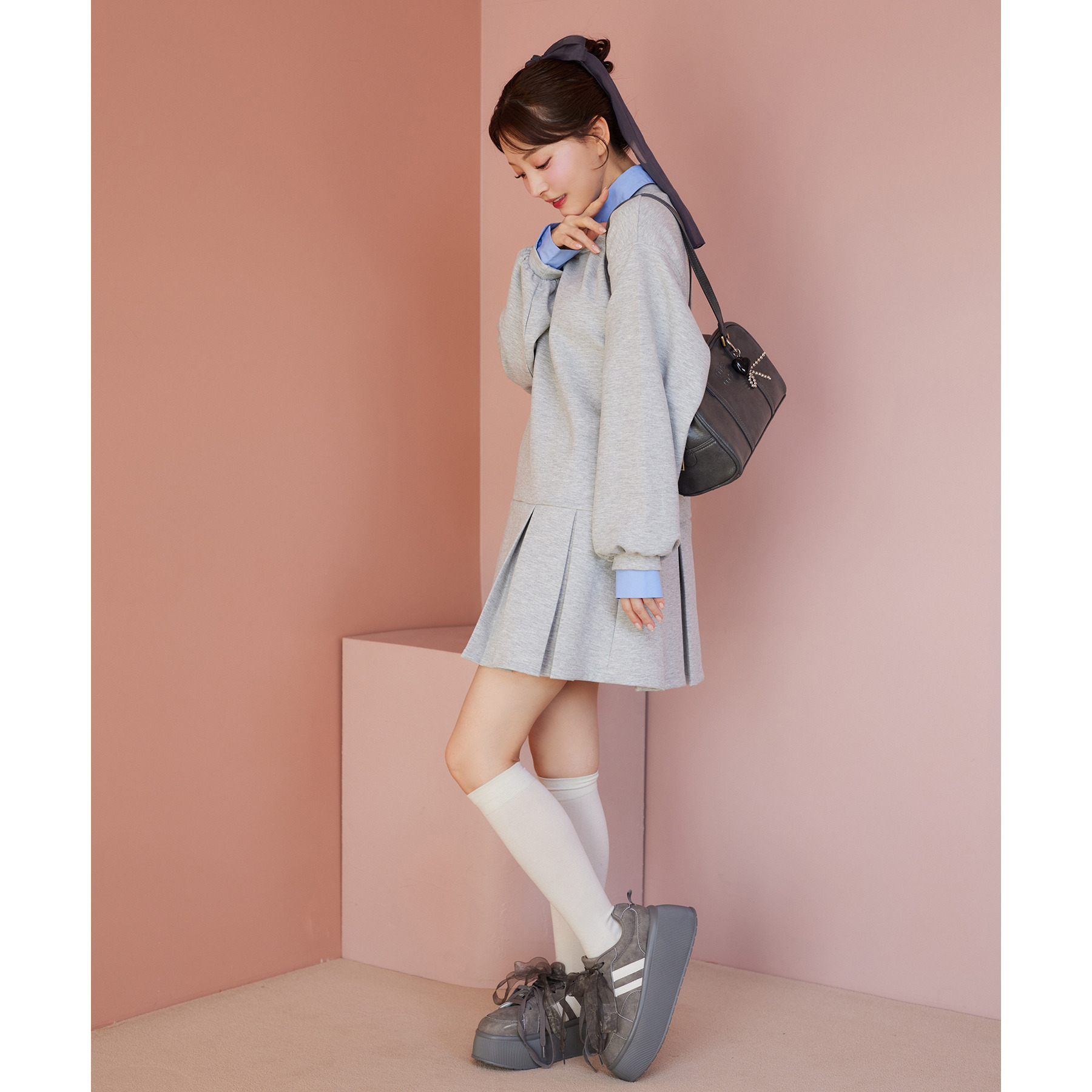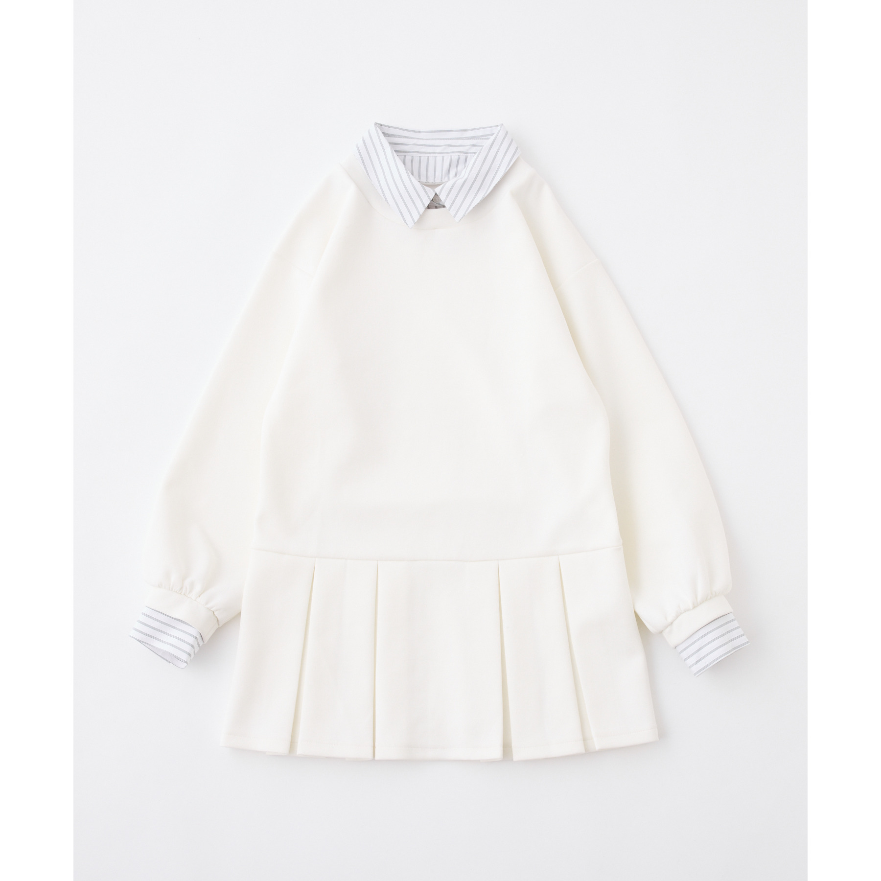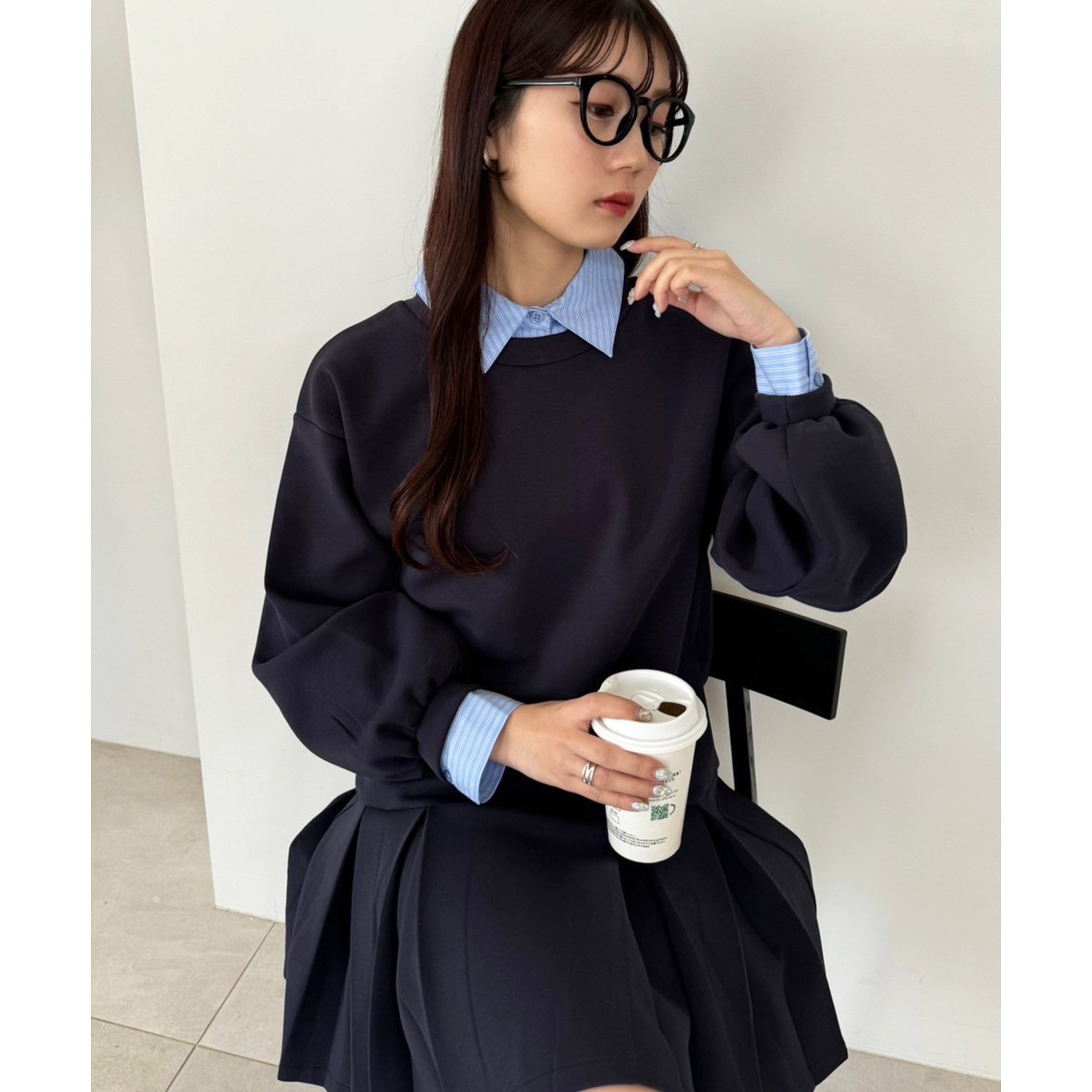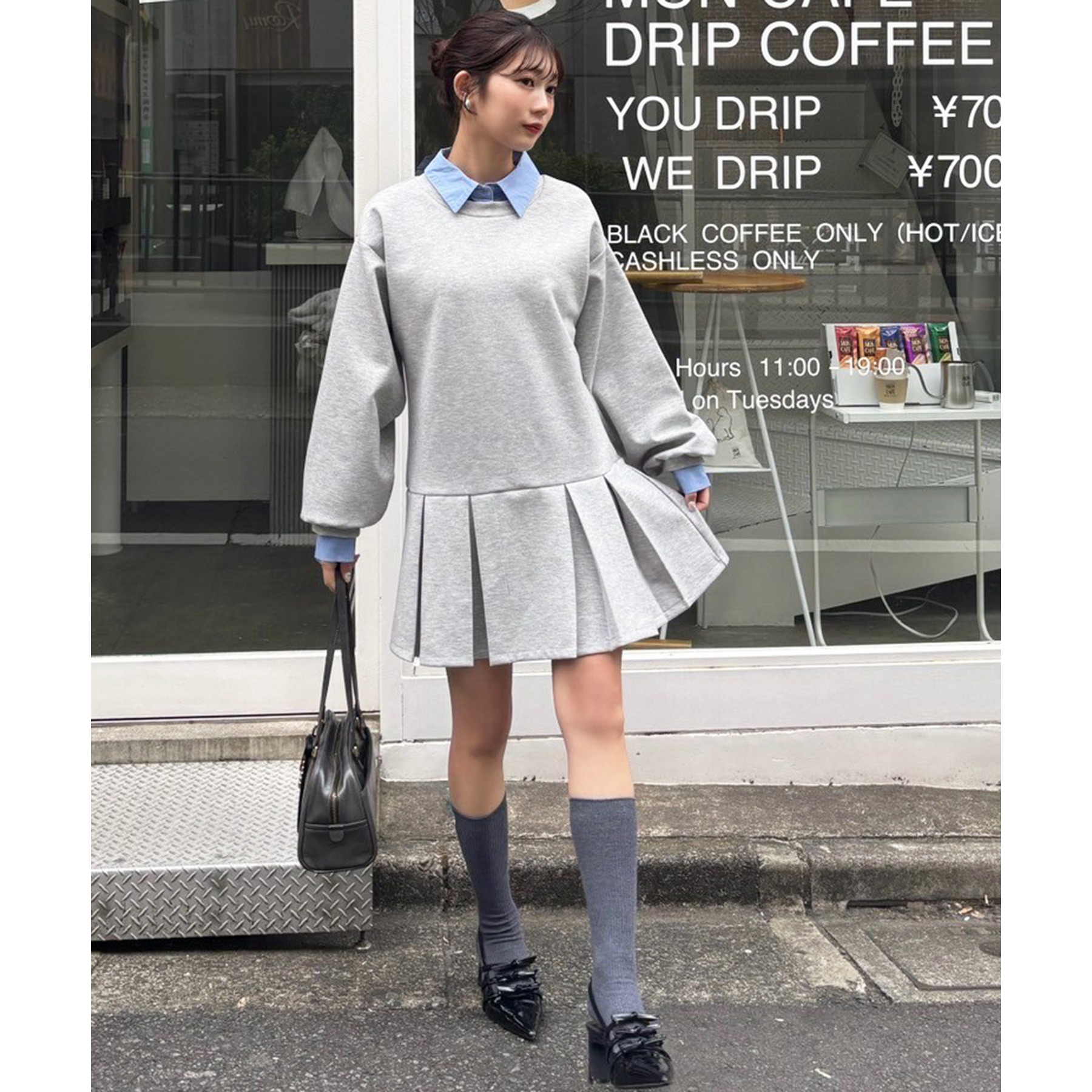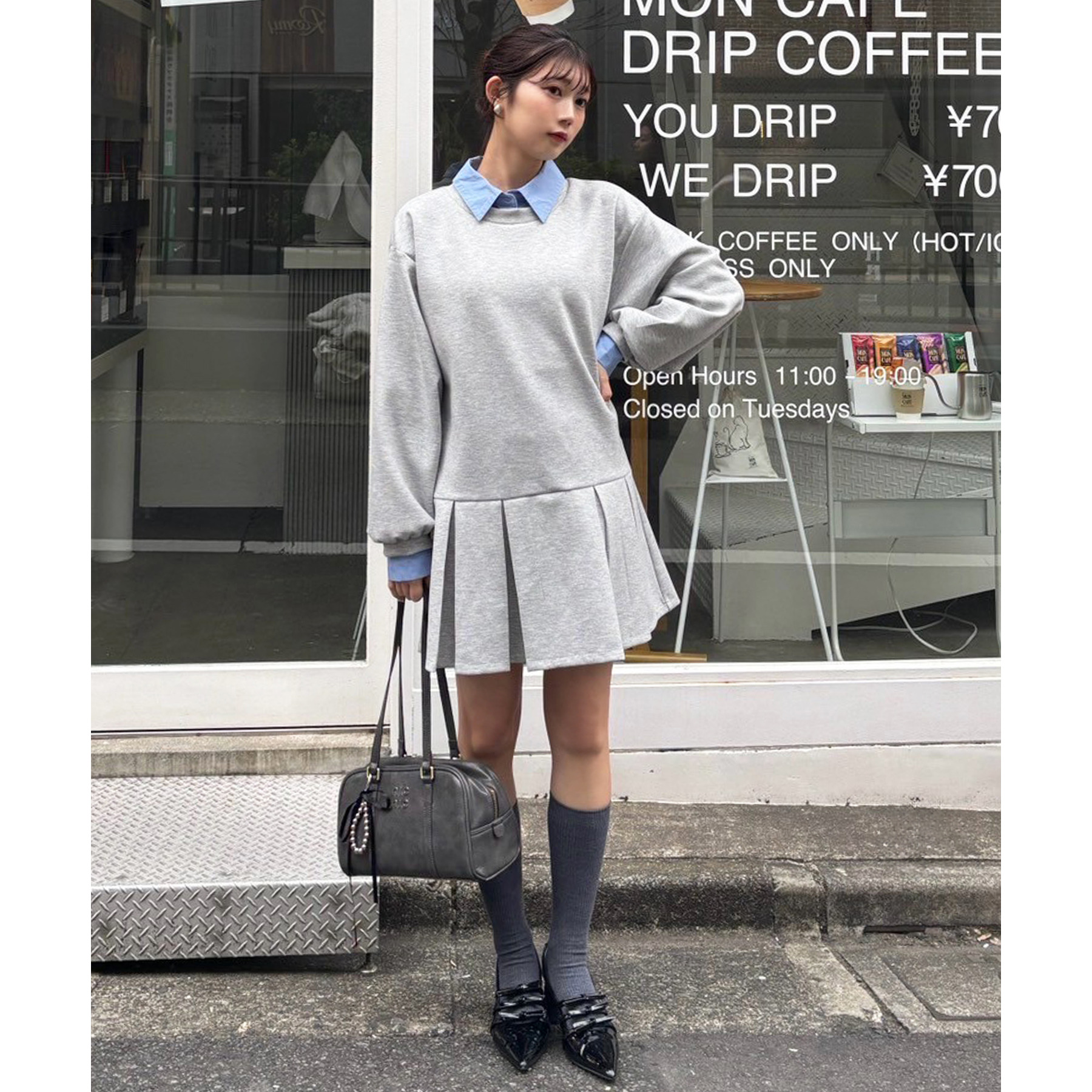 ビッグスウェットとシャツをレイヤードしたようなデザインのワンピース。